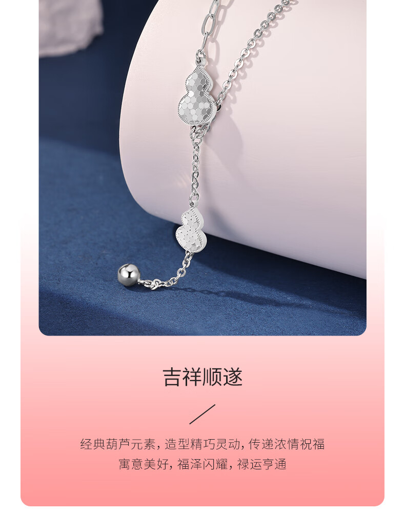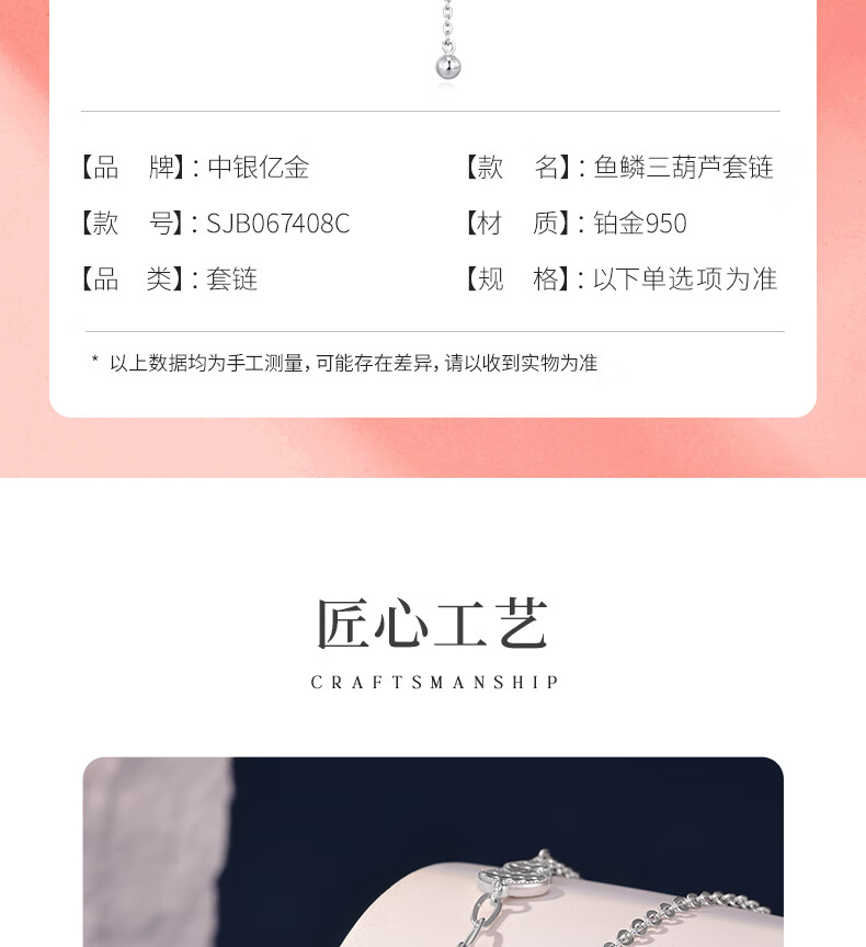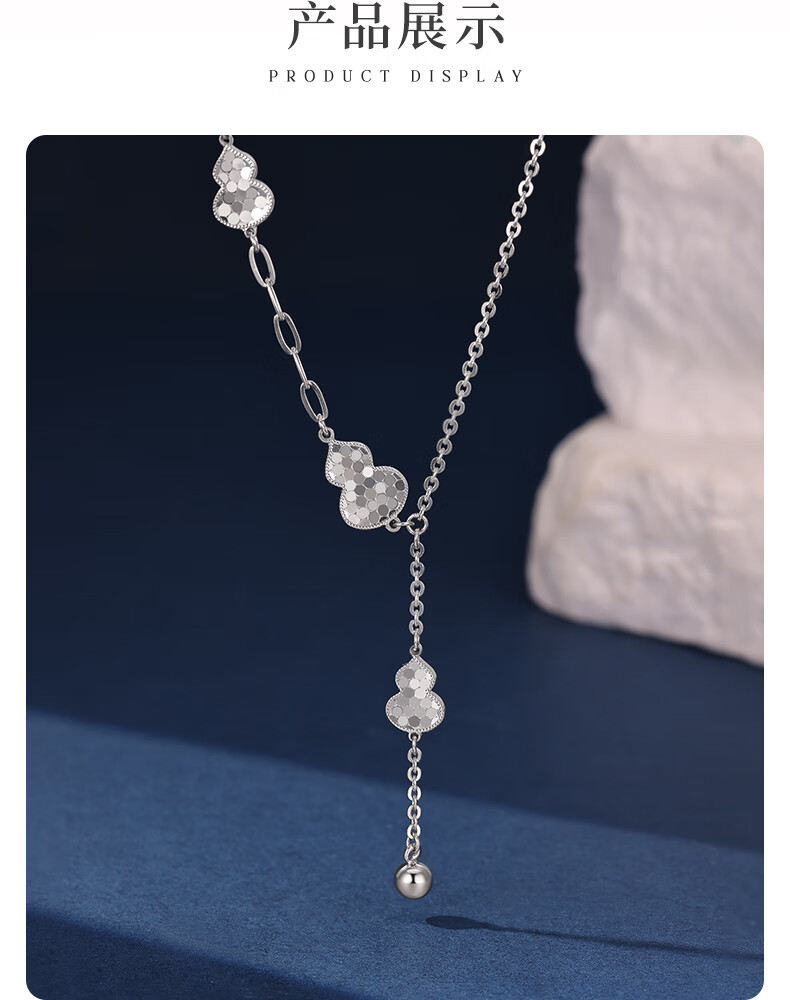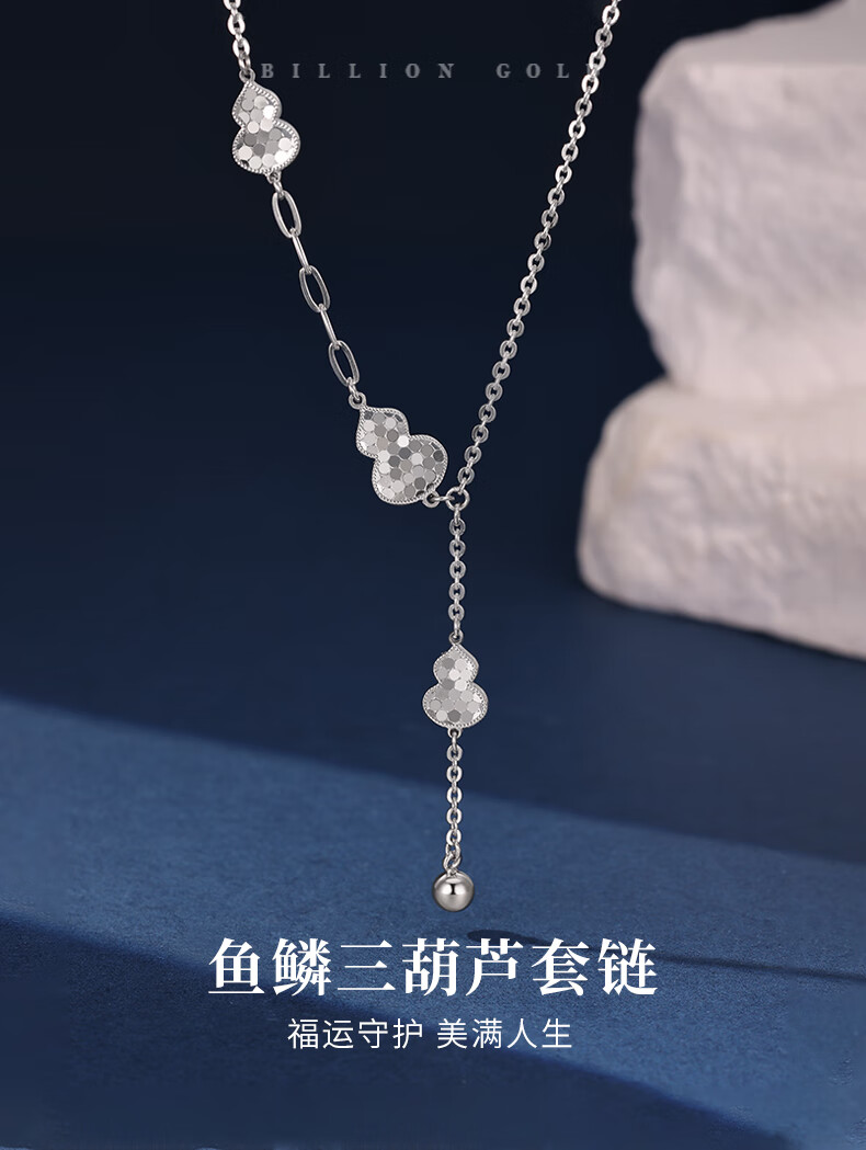 Bank of China Yijin pt950 gourd platinum fashion necklace plain chain versatile clavicle set chain birthday and Mid-Autumn Festival gift for girlfriend Fish scale three gourd set chain weighing about 5.4g