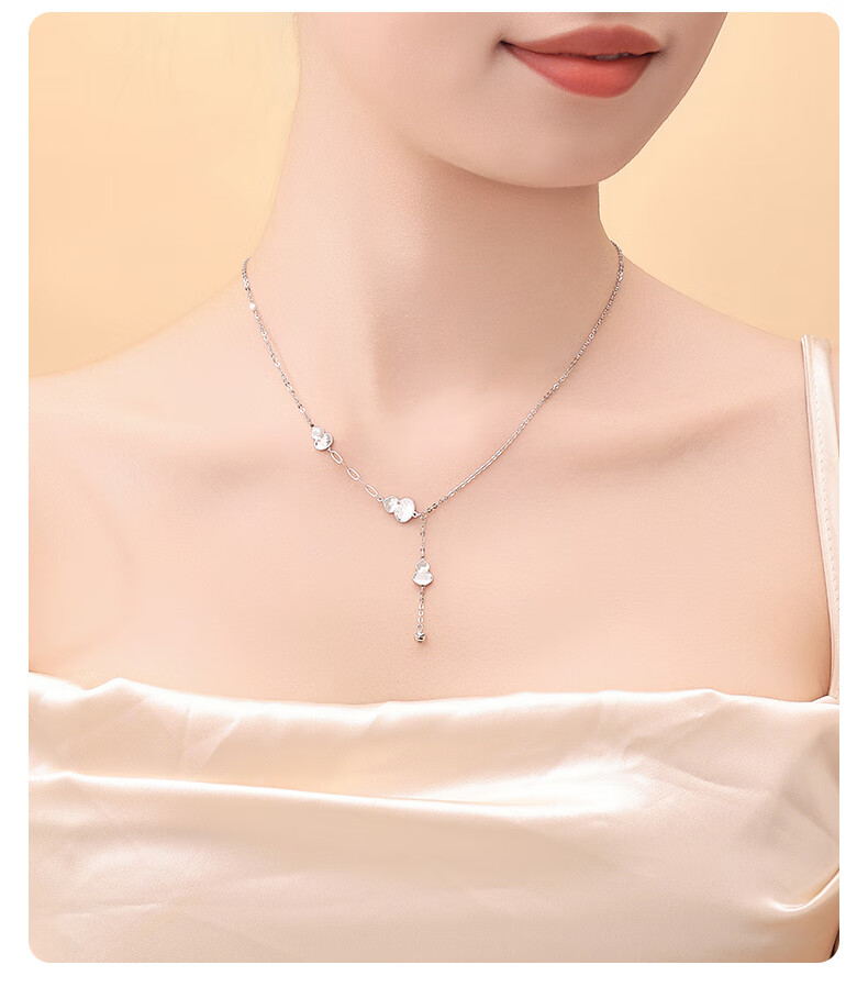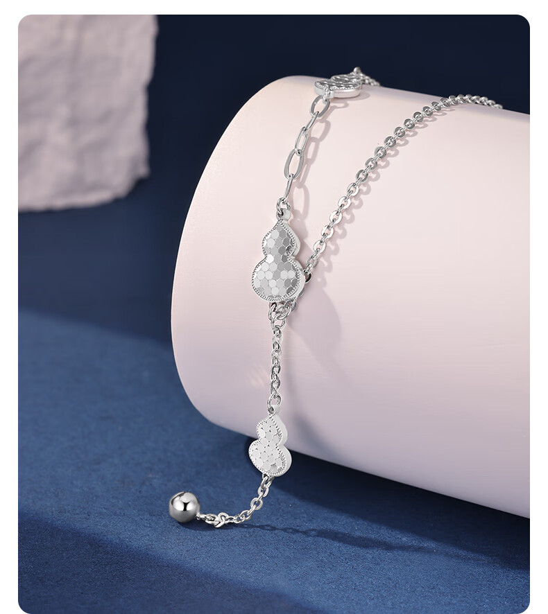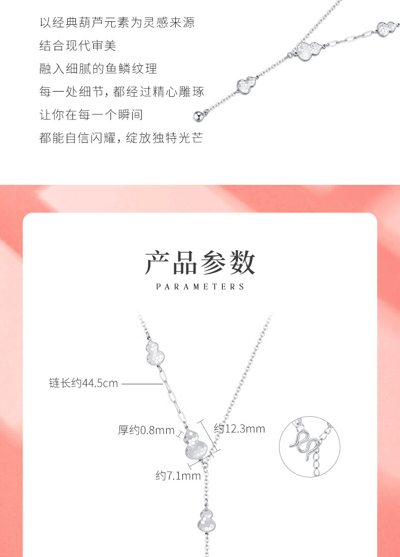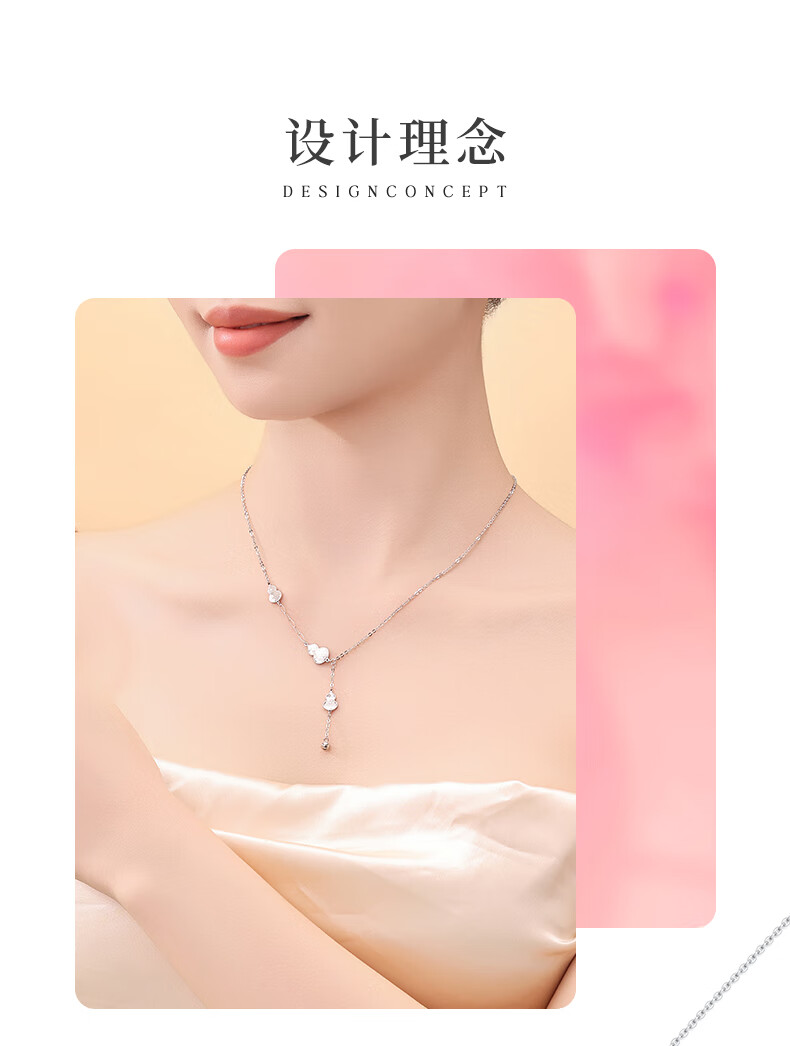 Bank of China Yijin pt950 gourd platinum fashion necklace plain chain versatile clavicle set chain birthday and Mid-Autumn Festival gift for girlfriend Fish scale three gourd set chain weighing about 5.4g