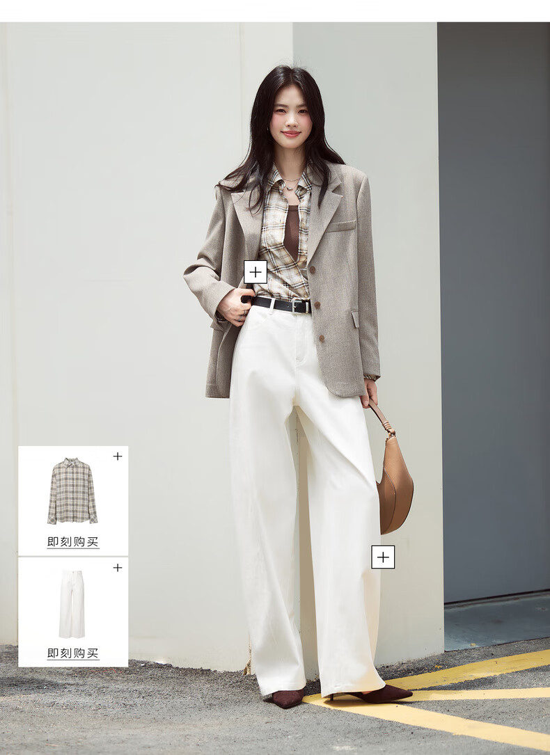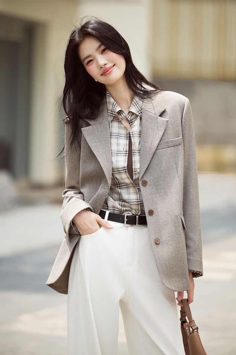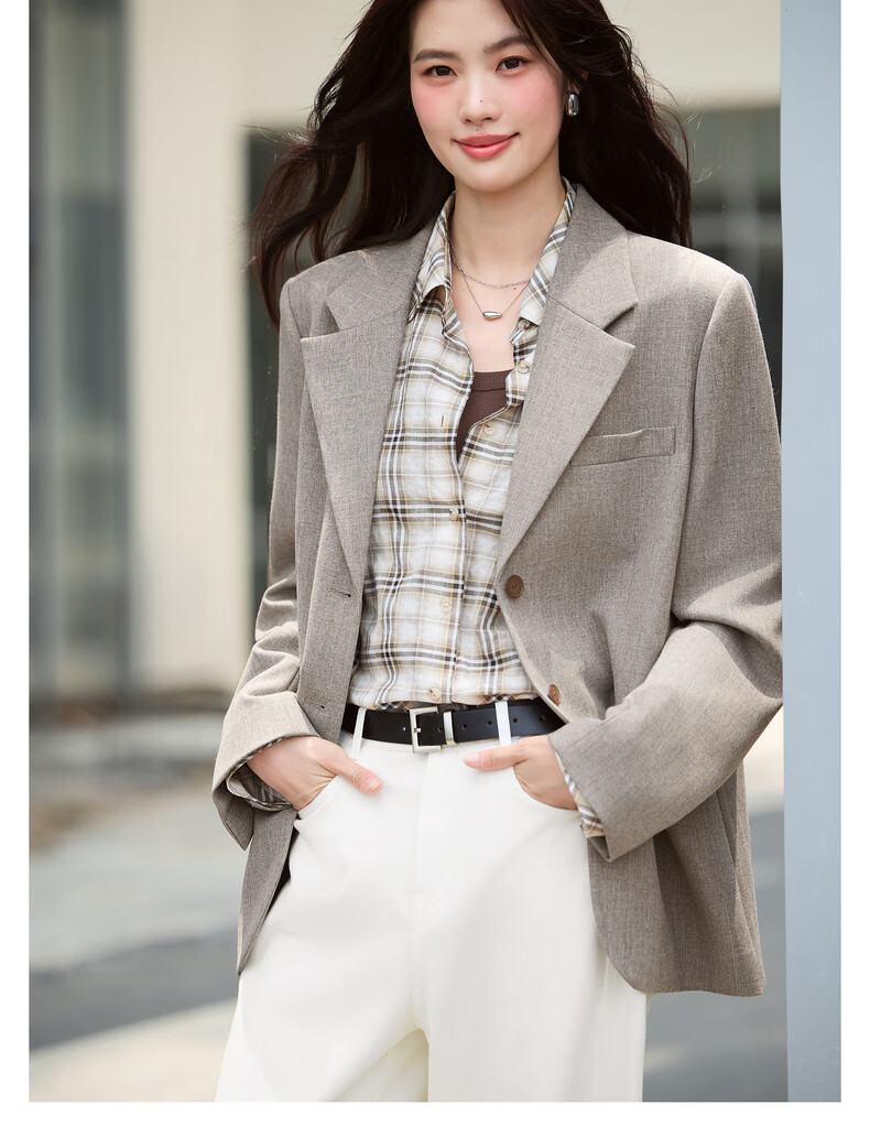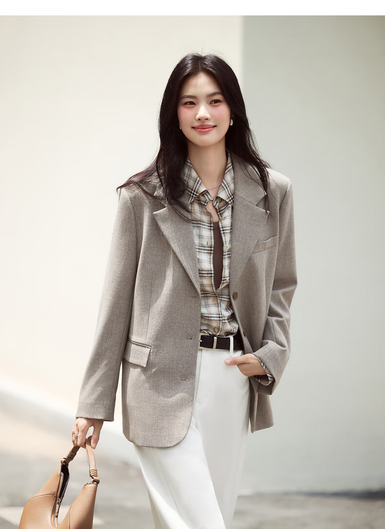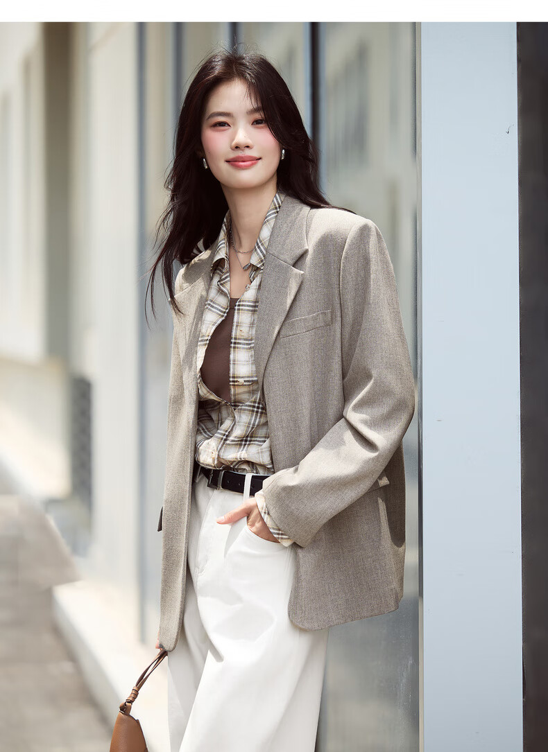 Eifini eifini contrasting color small wide shoulder single-breasted suit for women 2025 autumn new classic temperament casual commuter jacket gray green L