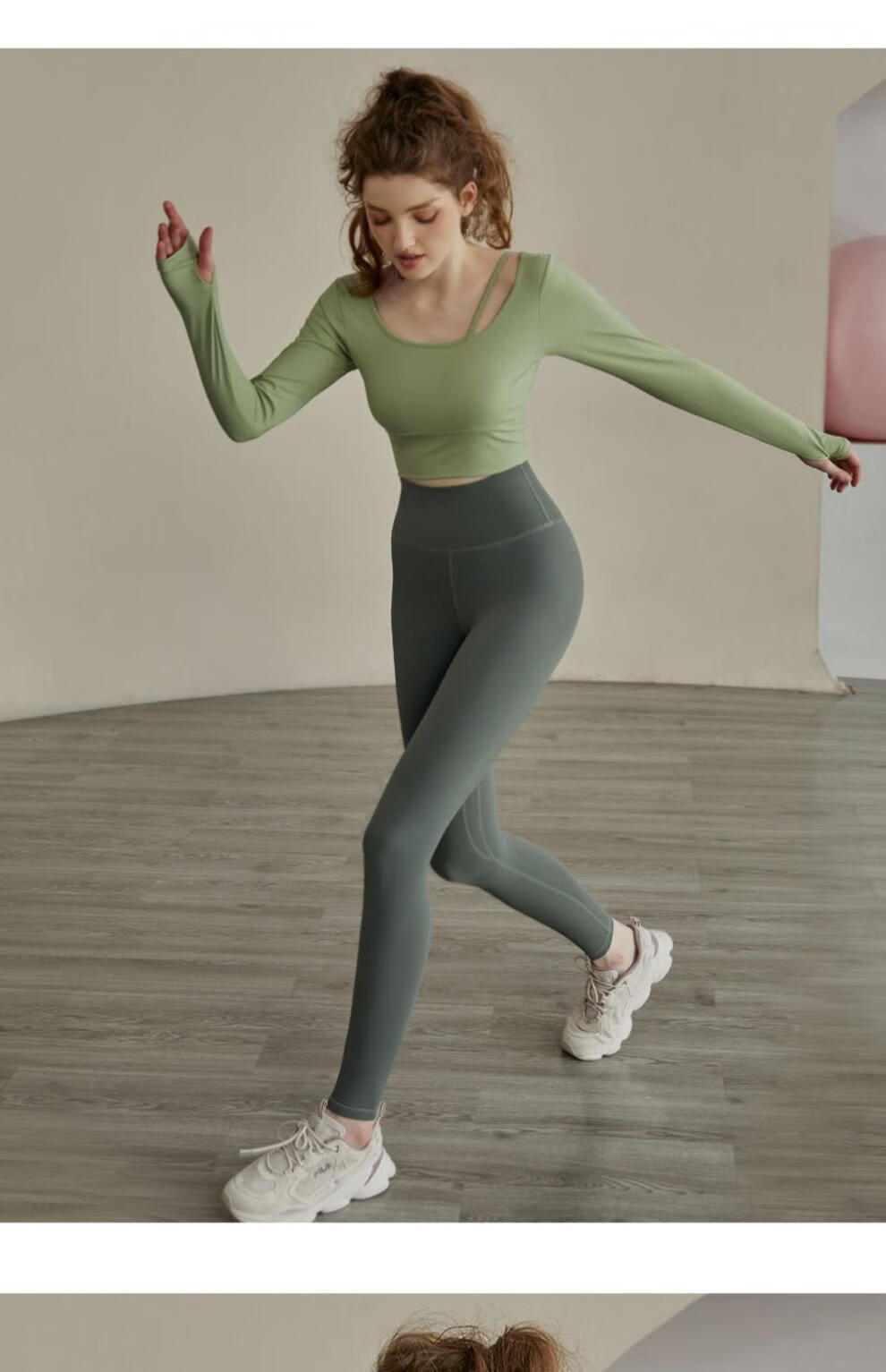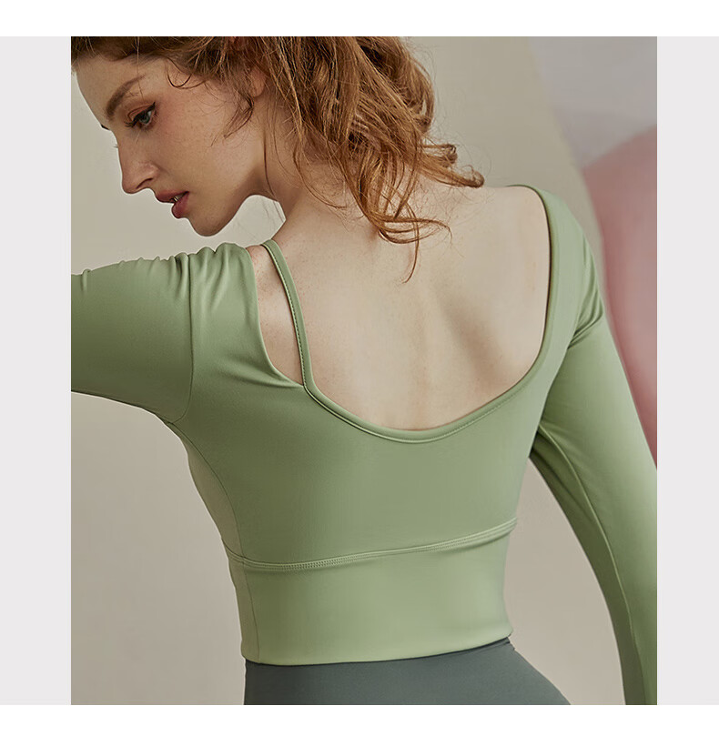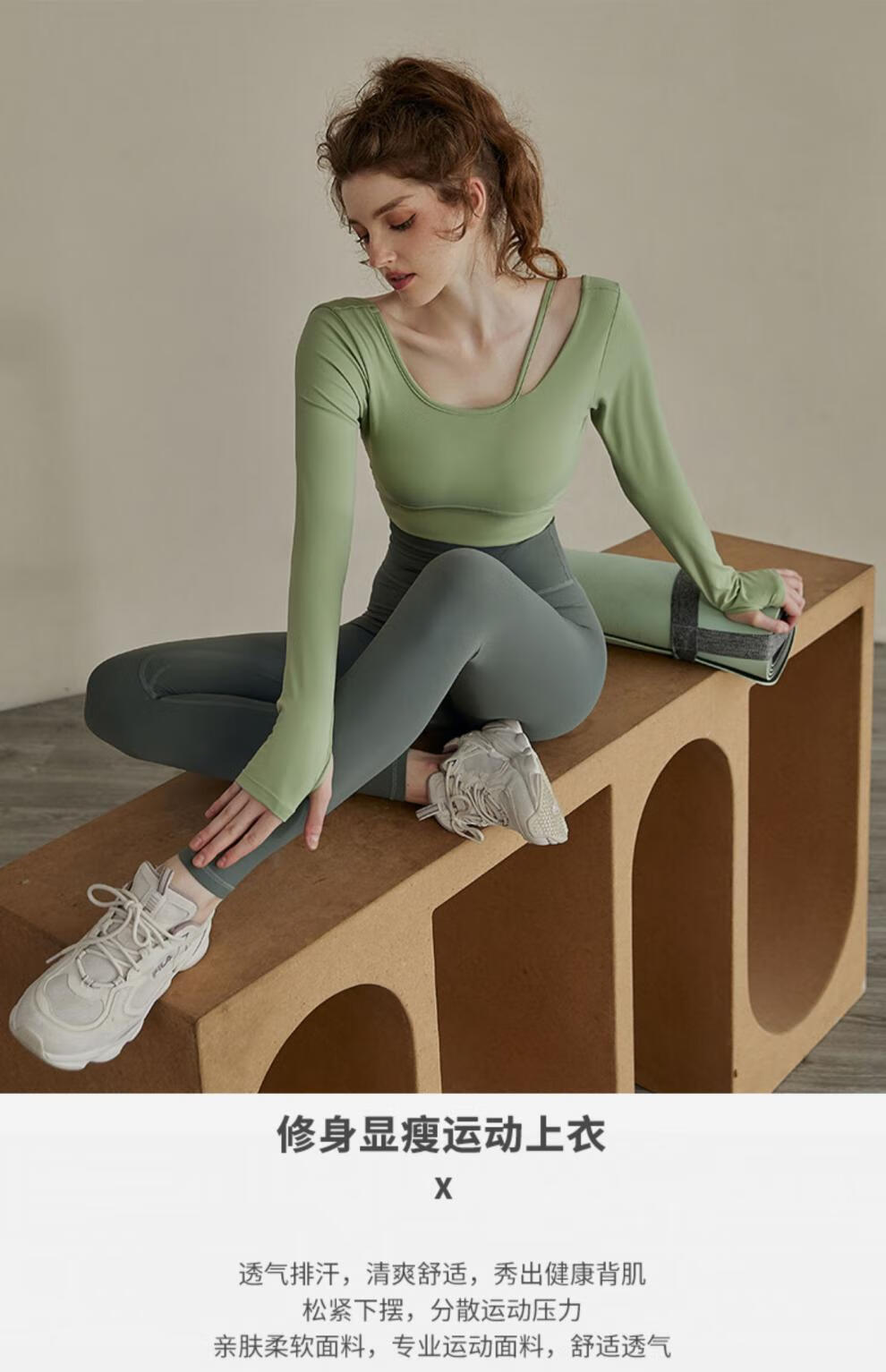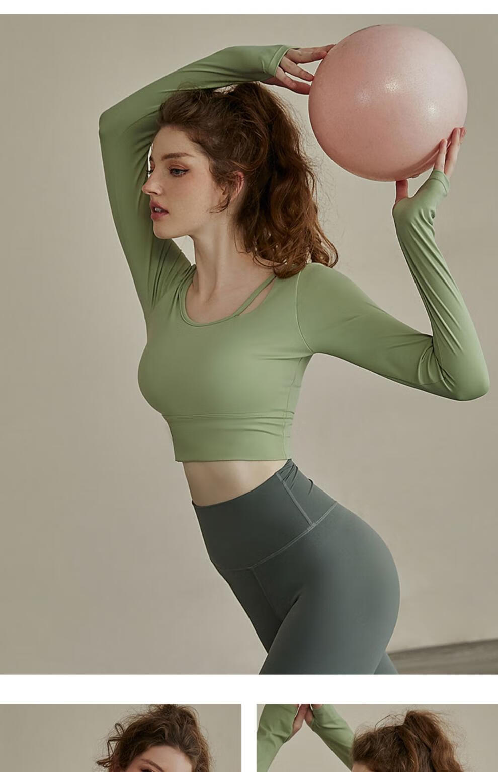 Duofanlian yoga clothing for women, spring and autumn long-sleeved suit, fitness running, Pilates training clothing, sports top, green top L