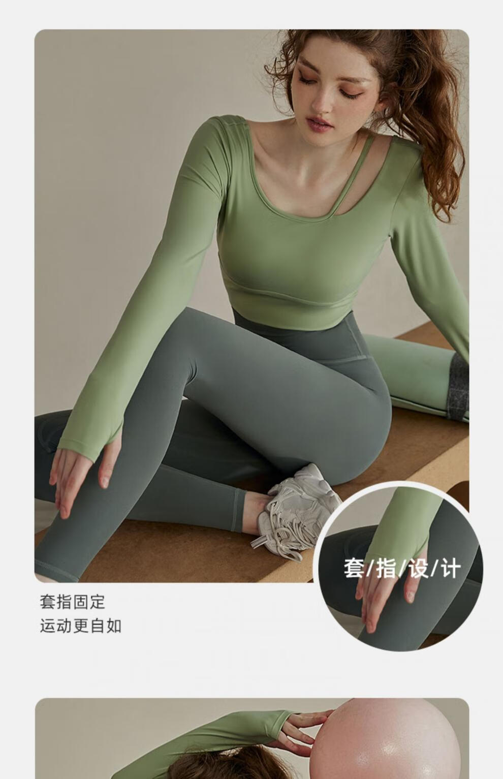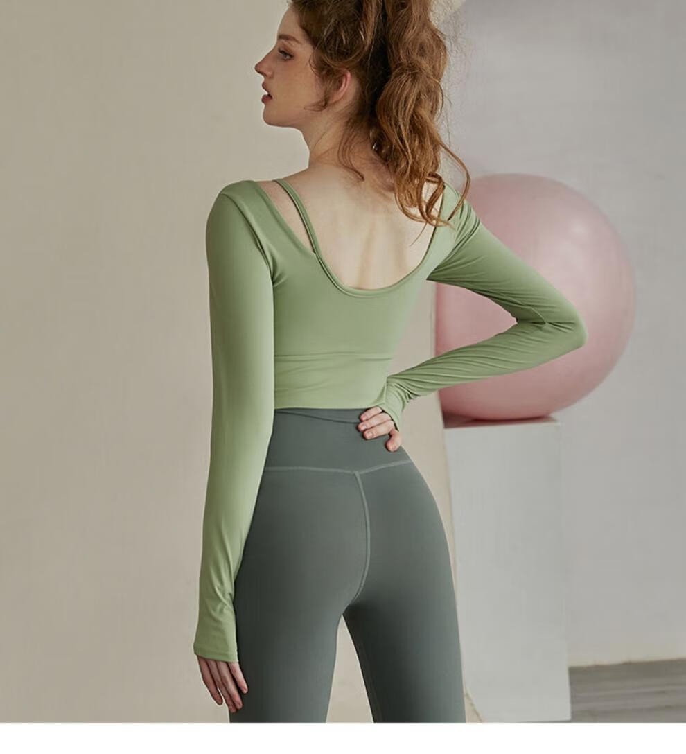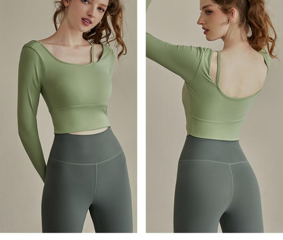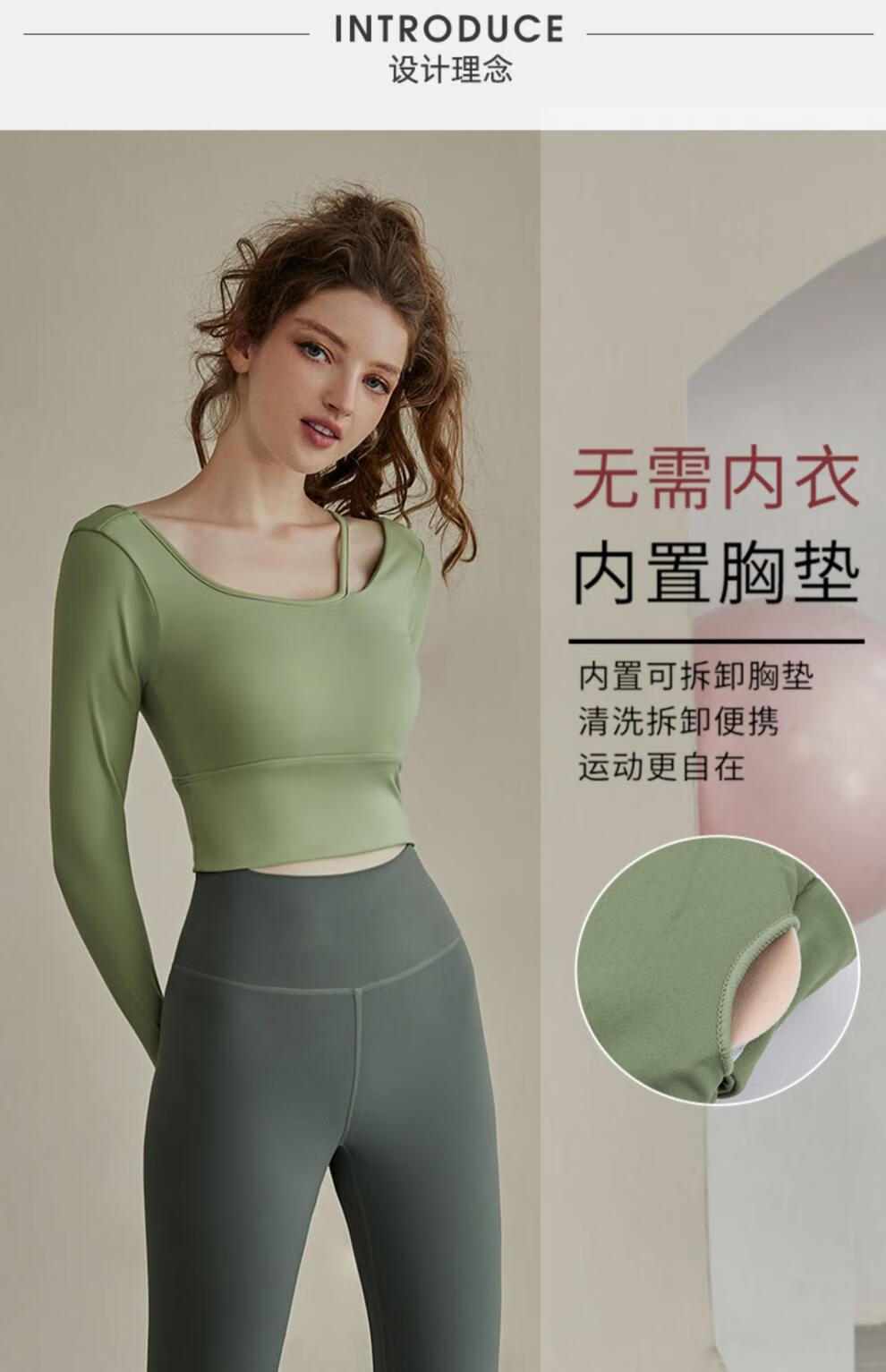 Duofanlian yoga clothing for women, spring and autumn long-sleeved suit, fitness running, Pilates training clothing, sports top, green top L