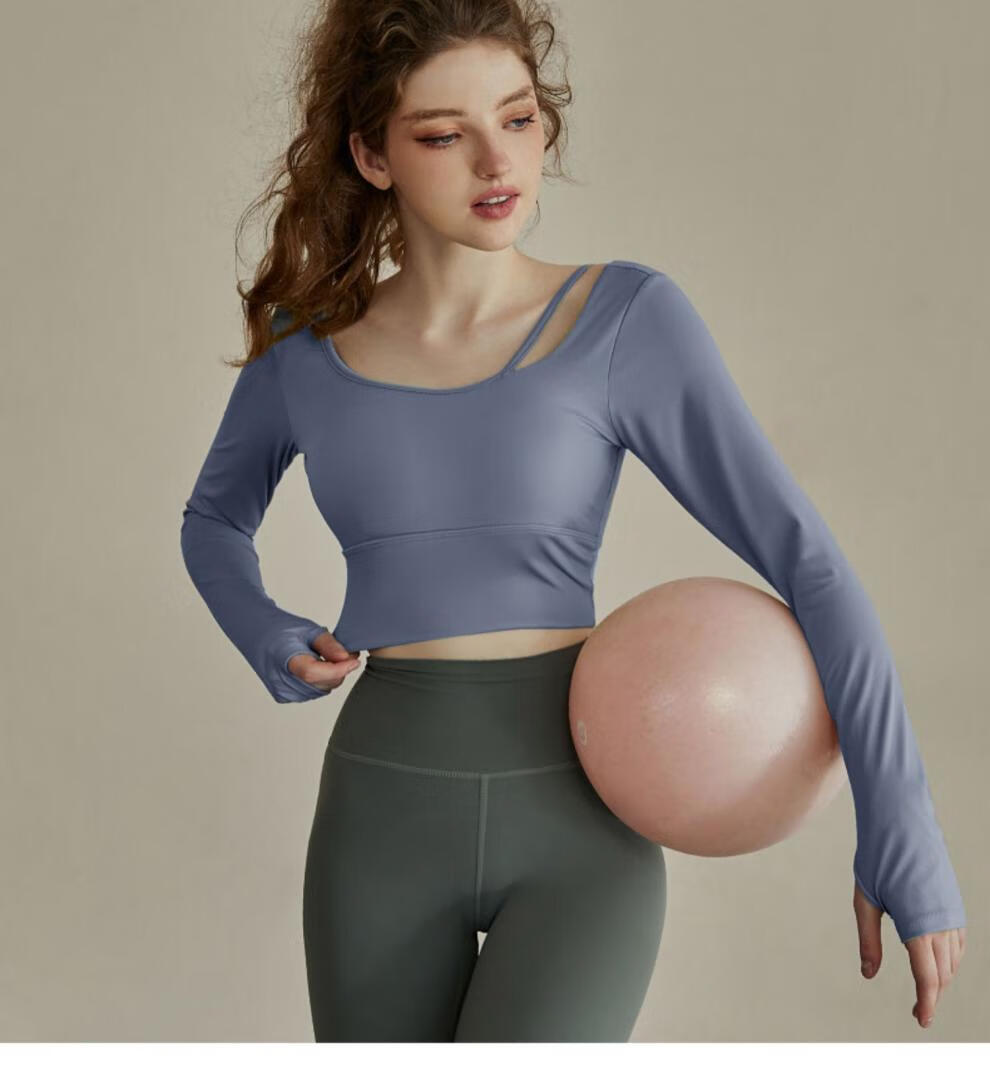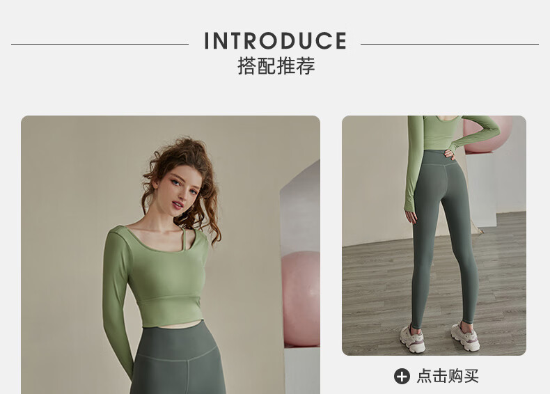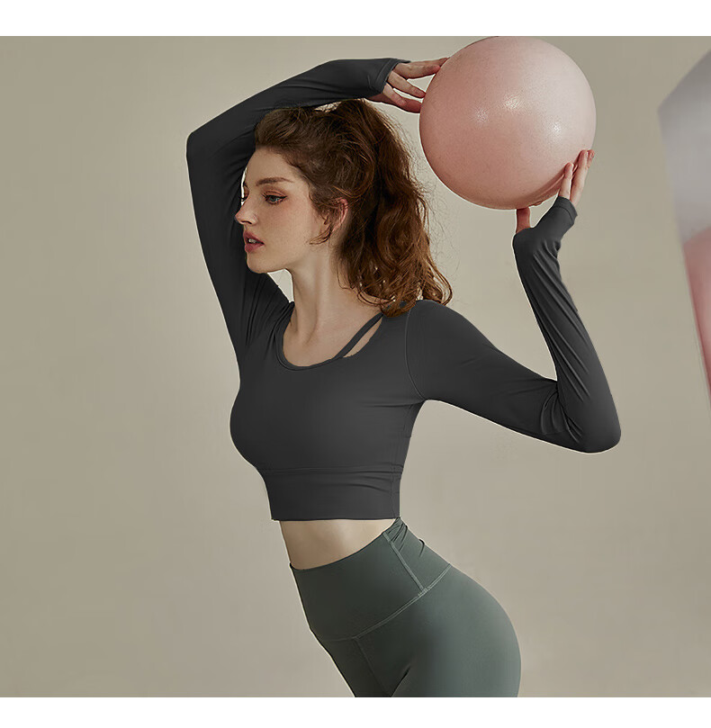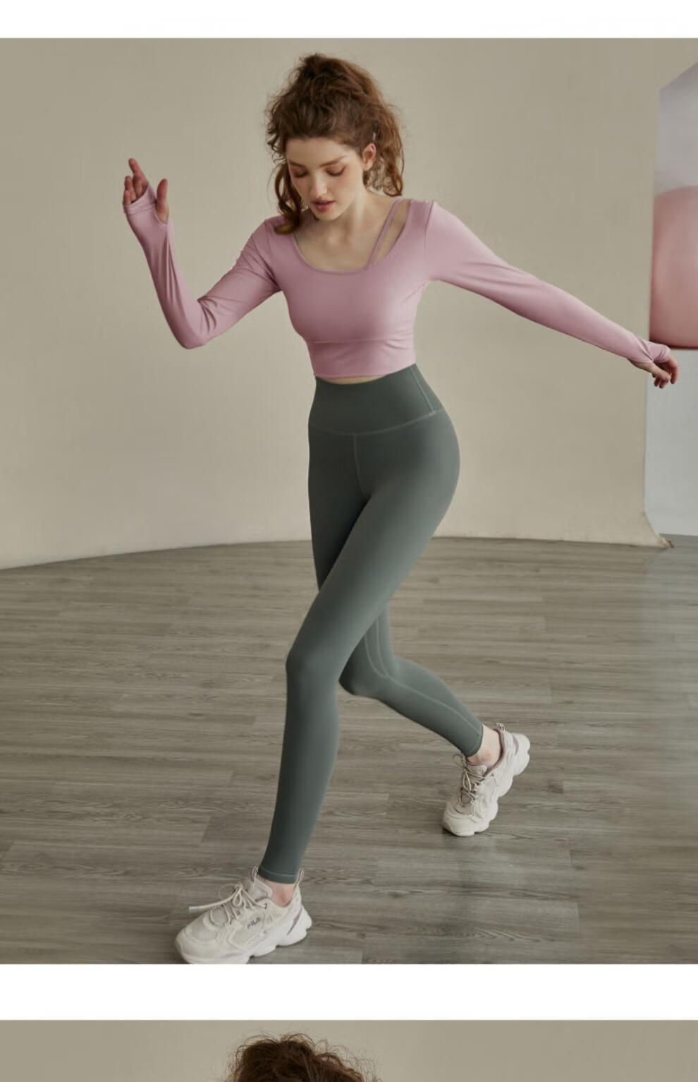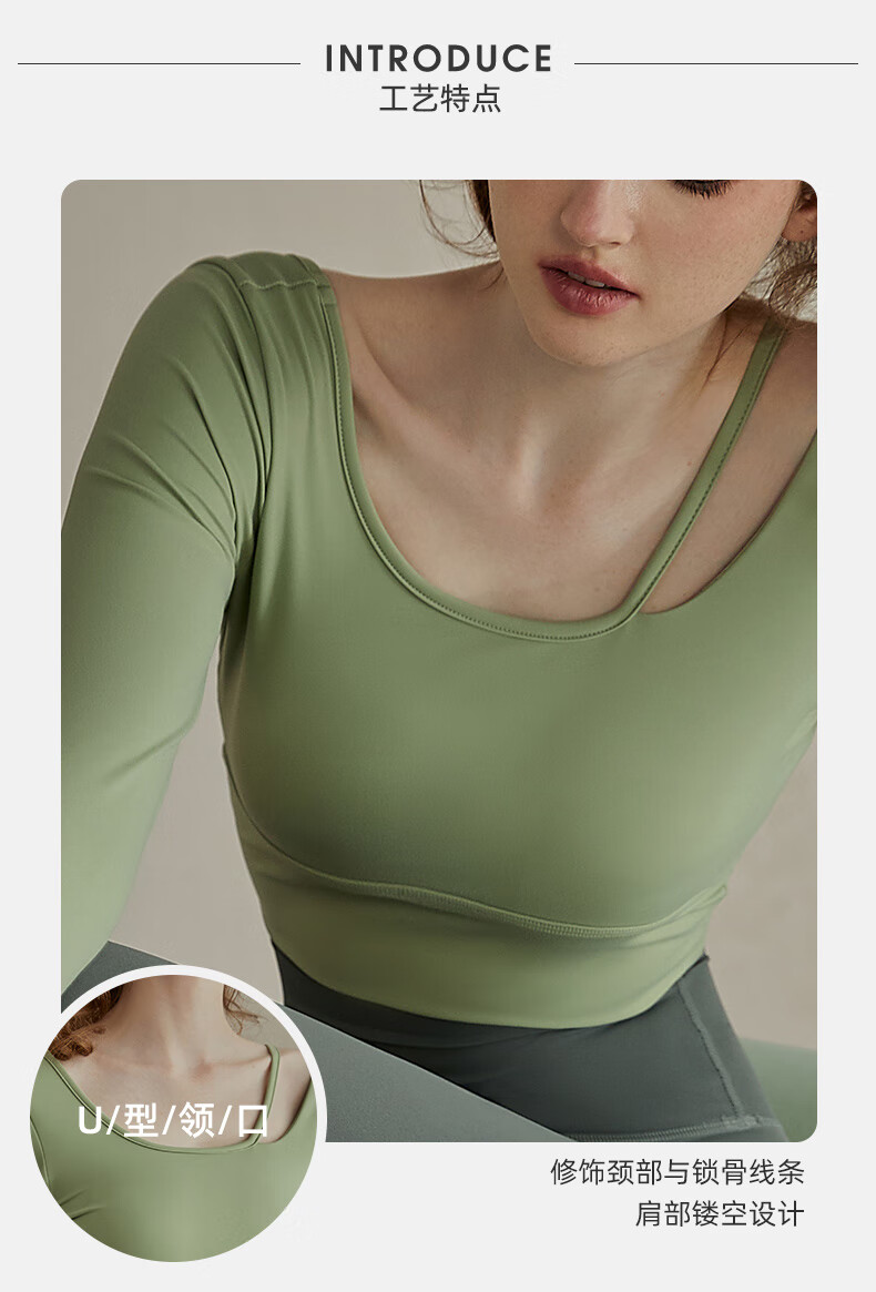 Duofanlian yoga clothing for women, spring and autumn long-sleeved suit, fitness running, Pilates training clothing, sports top, green top L