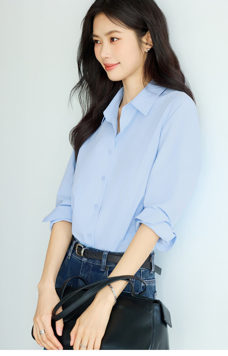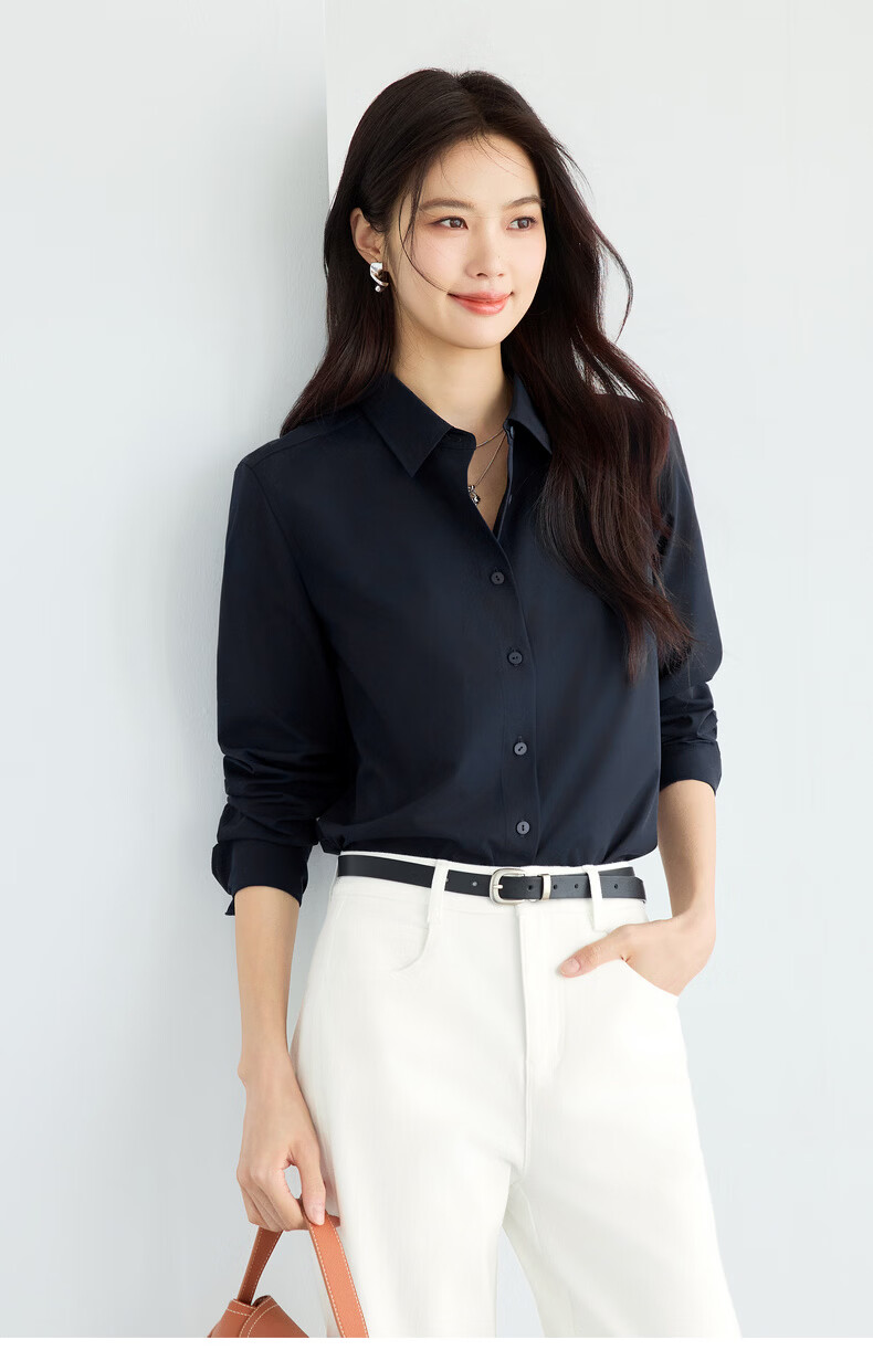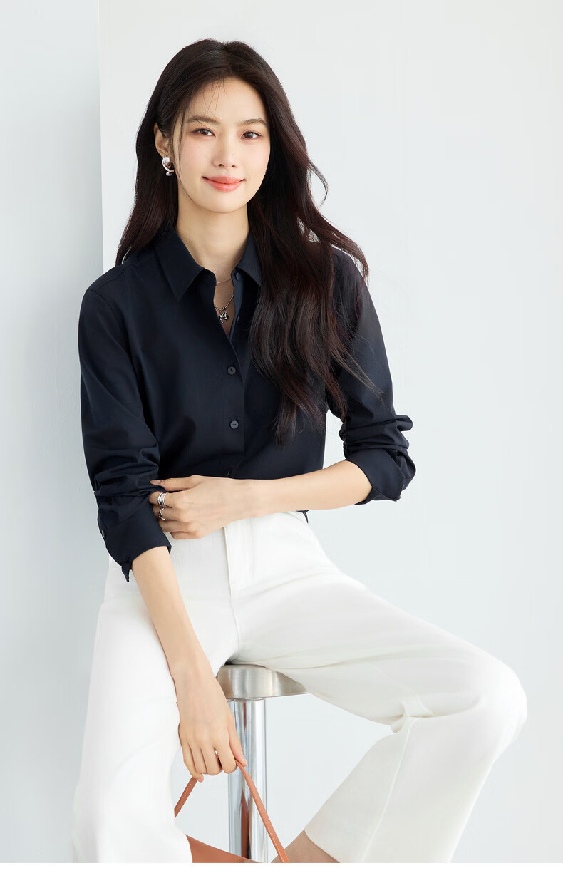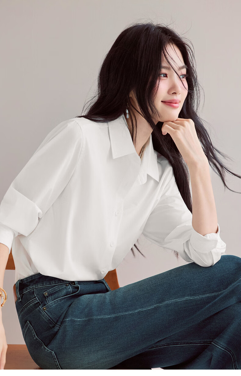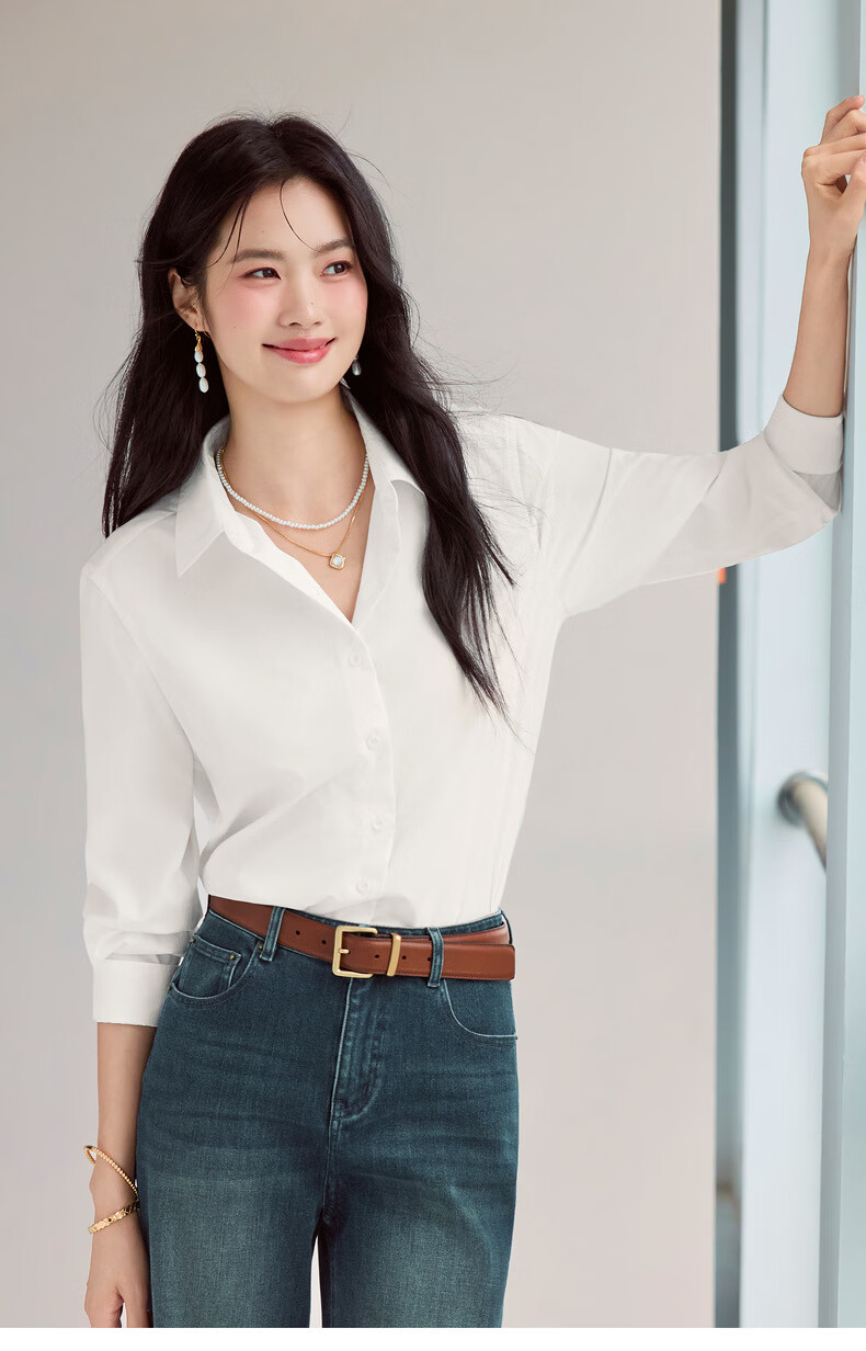 Eveli Jiang Xin's same style anti-wrinkle basic right shoulder version workplace commuting cotton shirt women's 2026 spring new small top white S 80-105Jin Jin equals 0.5 kg