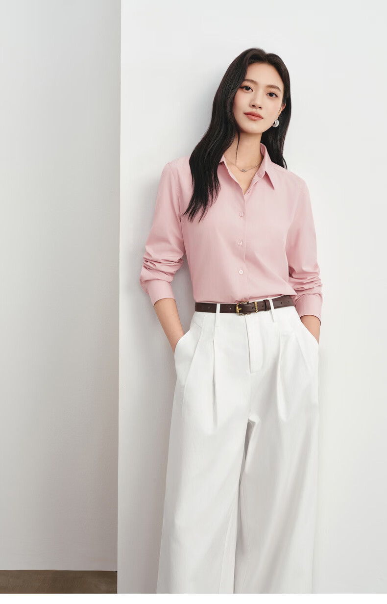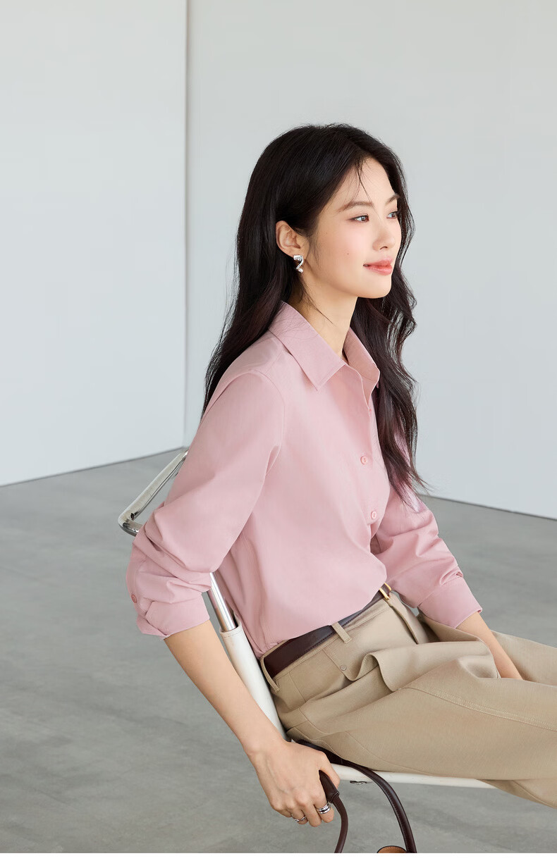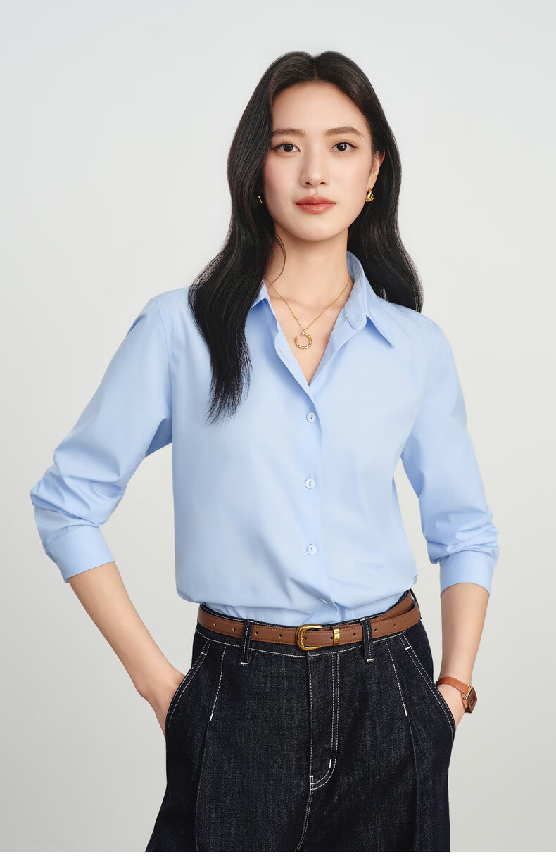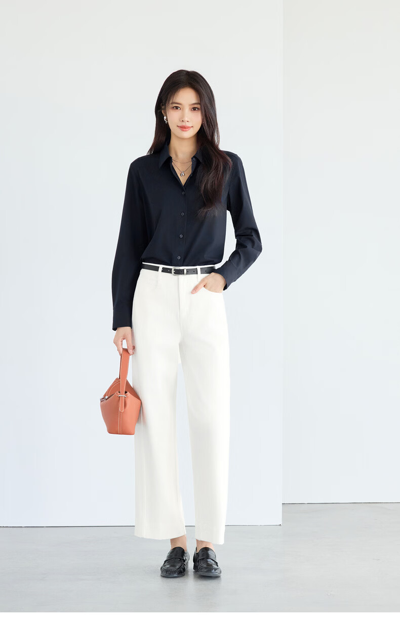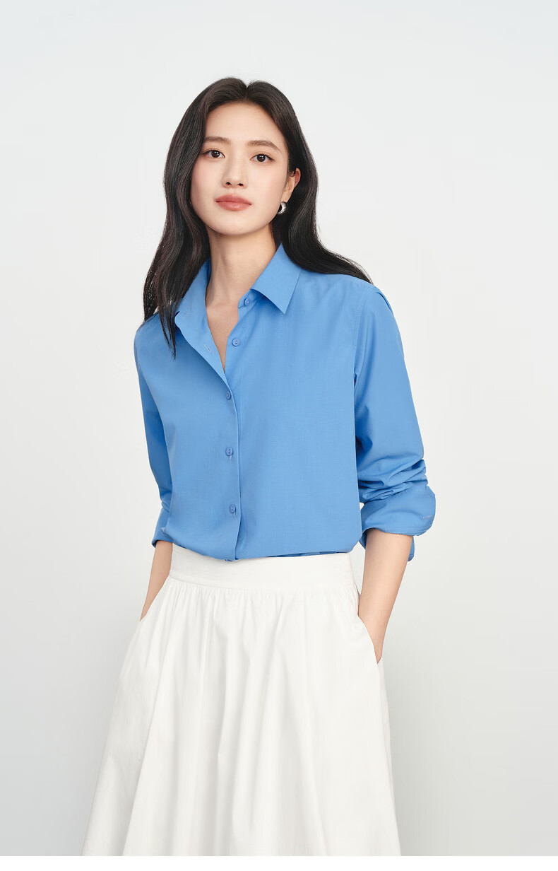 Eveli Jiang Xin's same style anti-wrinkle basic right shoulder version workplace commuting cotton shirt women's 2026 spring new small top white S 80-105Jin Jin equals 0.5 kg