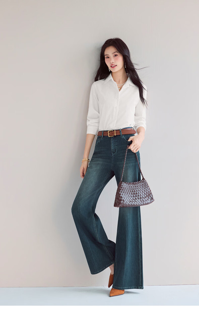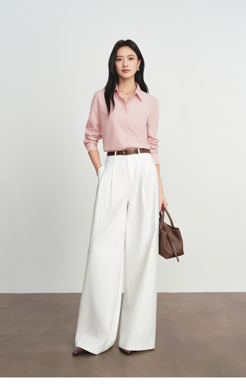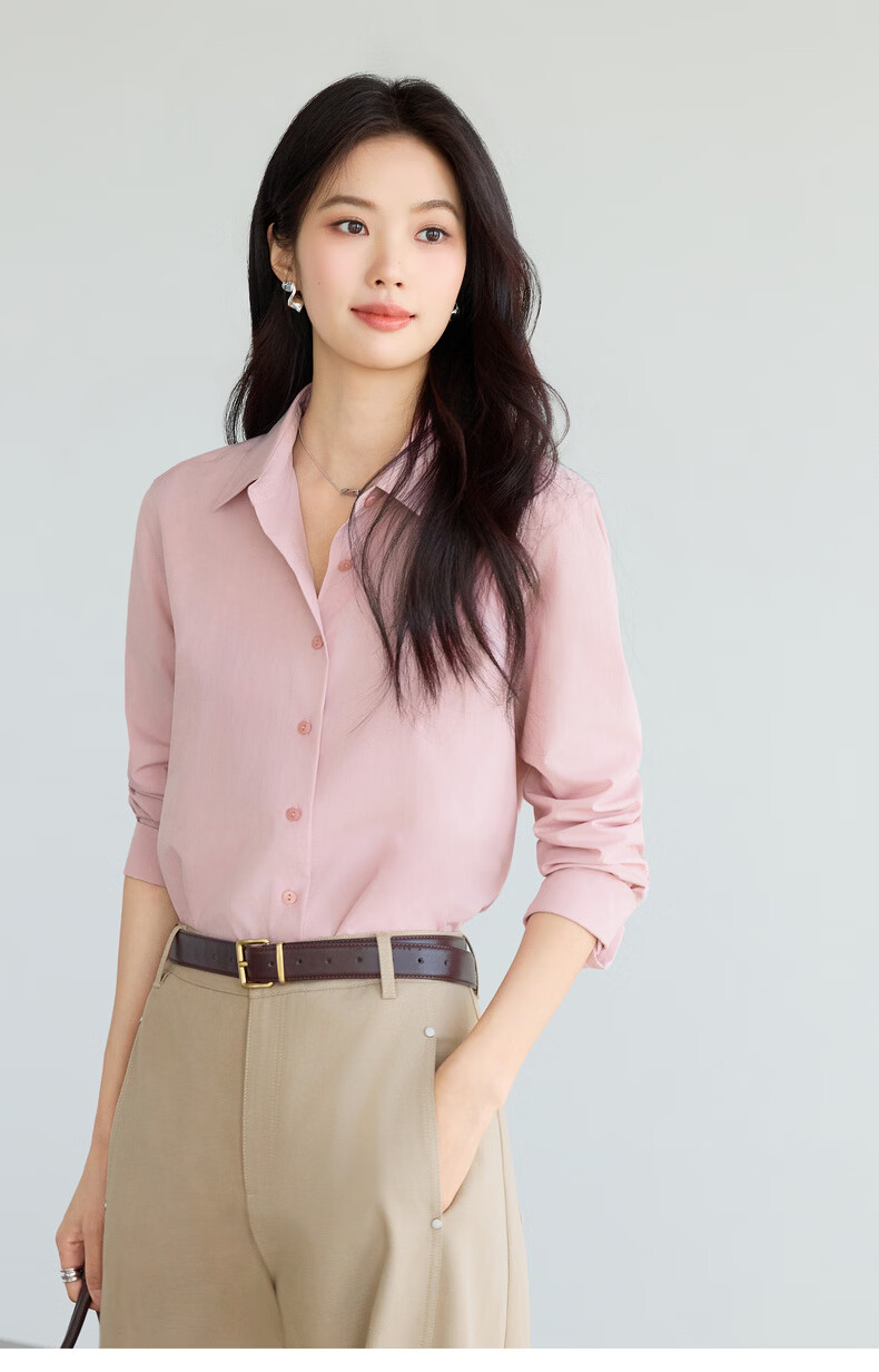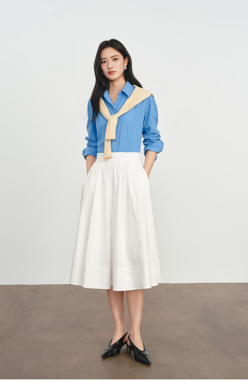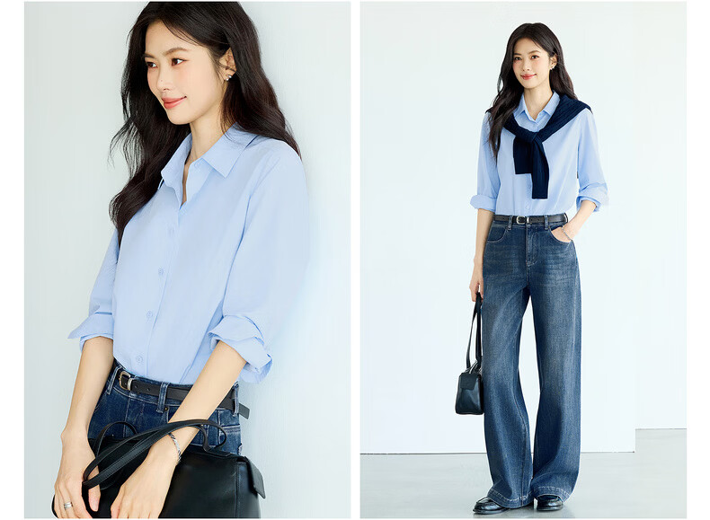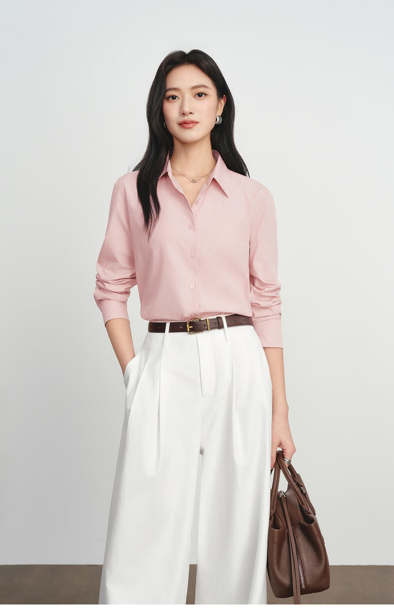 Eveli Jiang Xin's same style anti-wrinkle basic right shoulder version workplace commuting cotton shirt women's 2026 spring new small top white S 80-105Jin Jin equals 0.5 kg