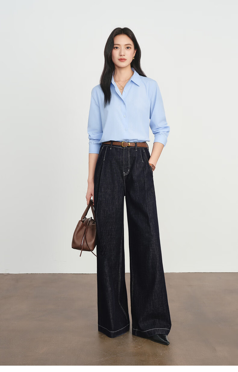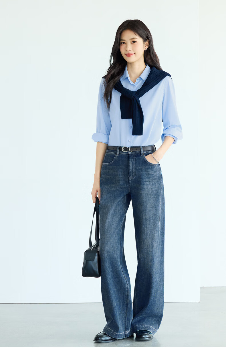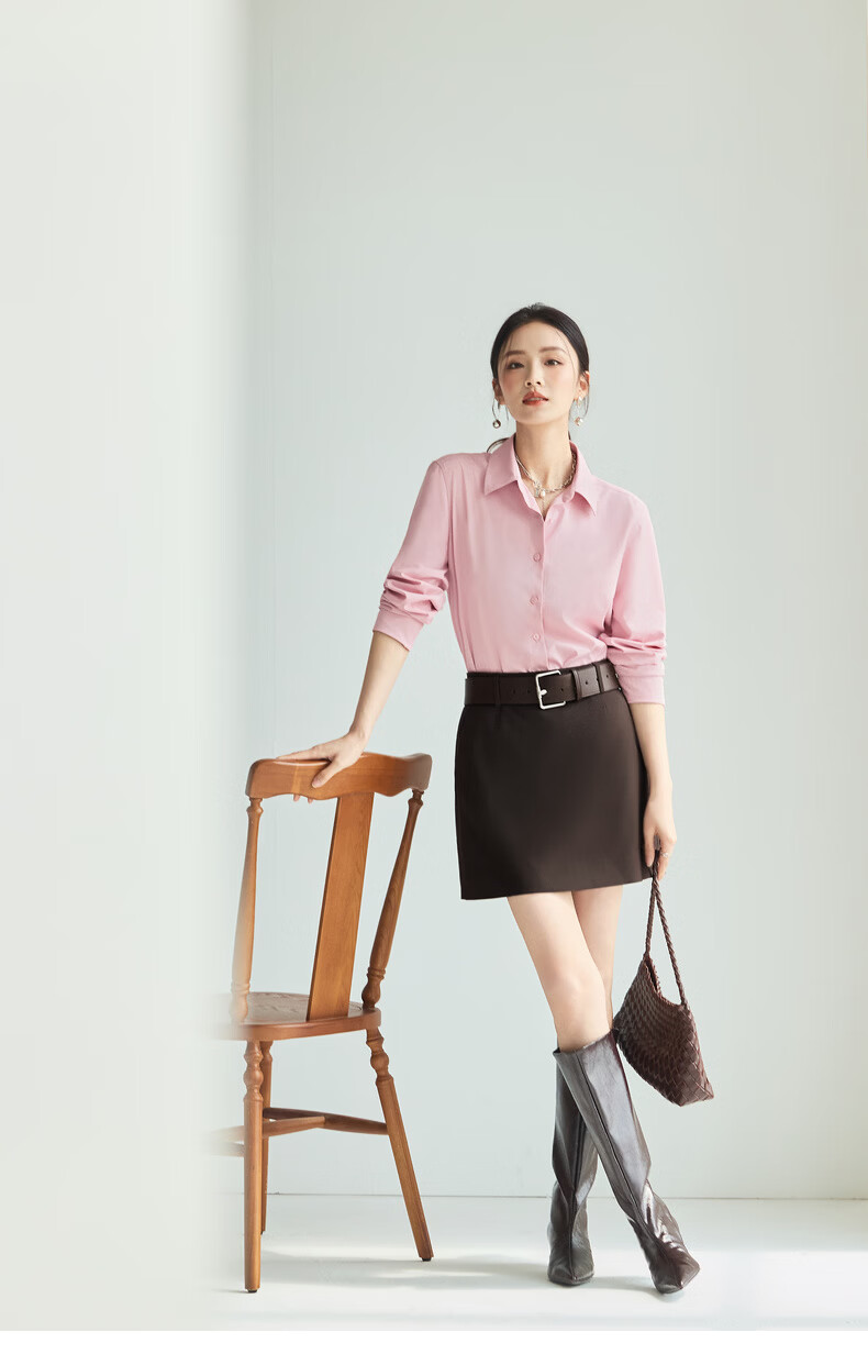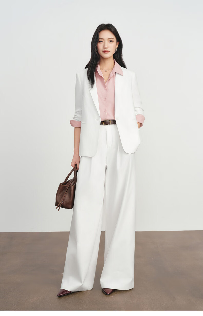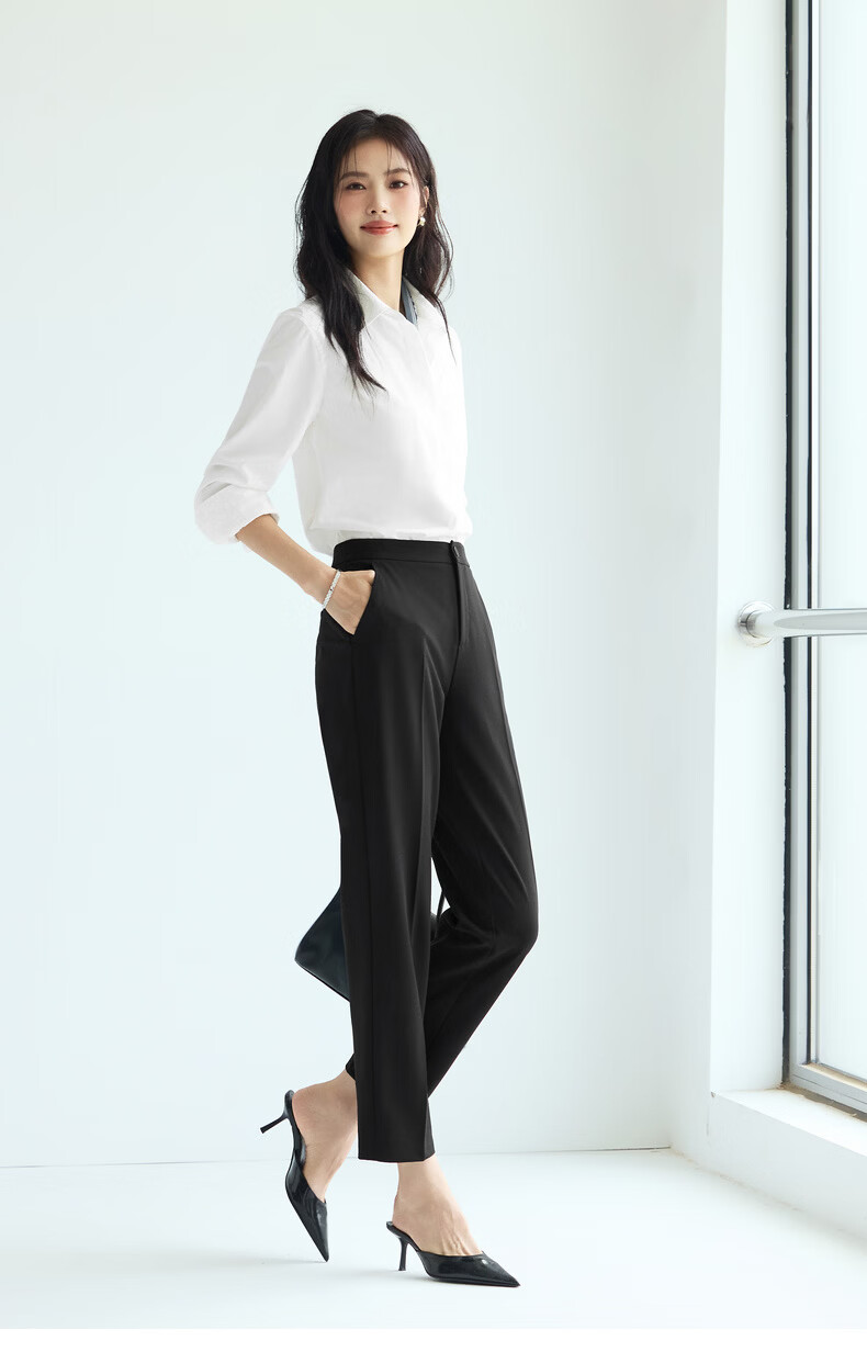 Eveli Jiang Xin's same style anti-wrinkle basic right shoulder version workplace commuting cotton shirt women's 2026 spring new small top white S 80-105Jin Jin equals 0.5 kg