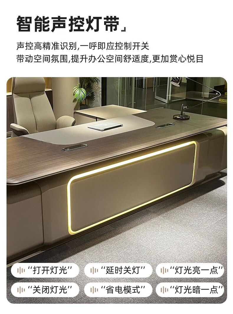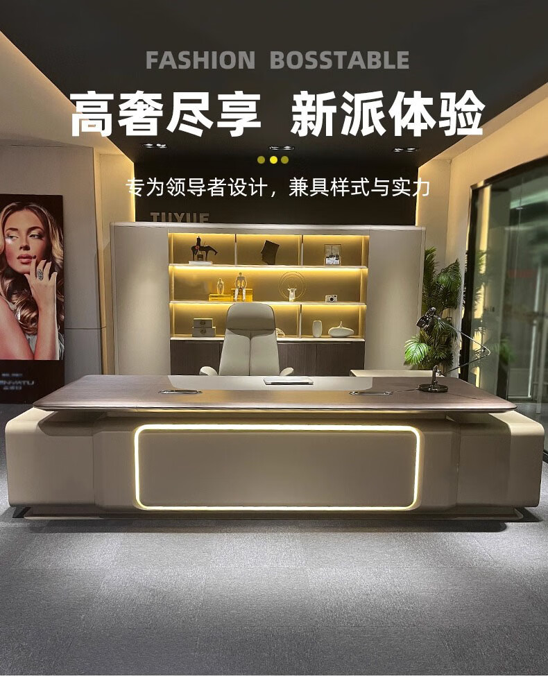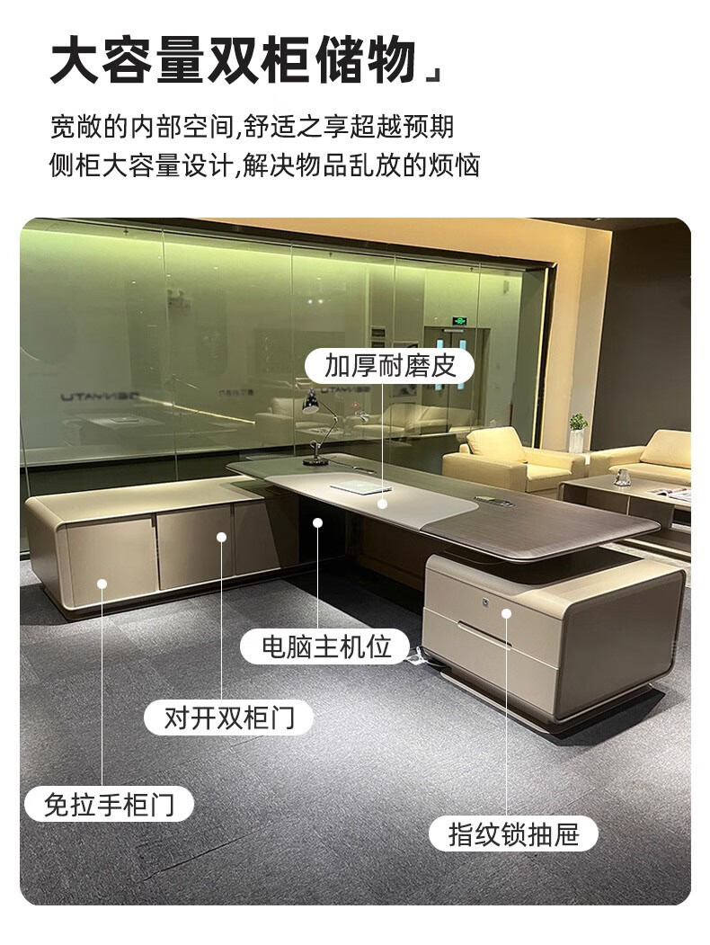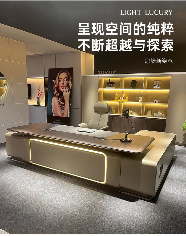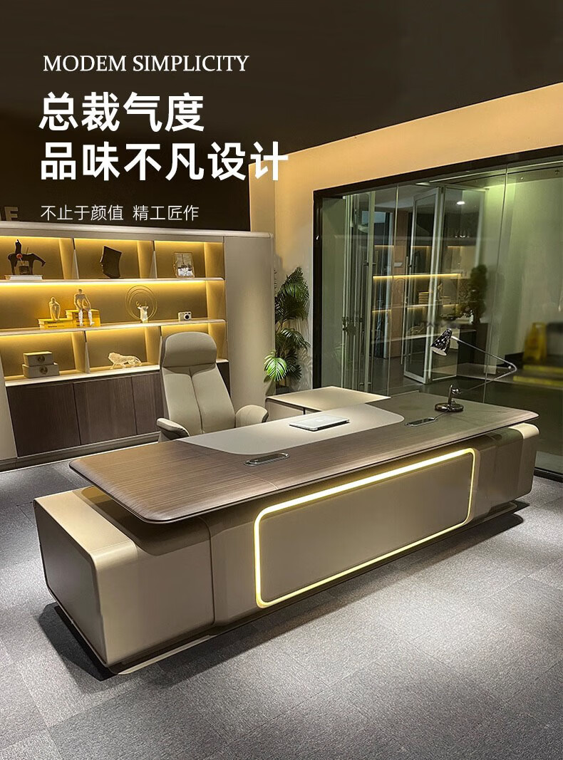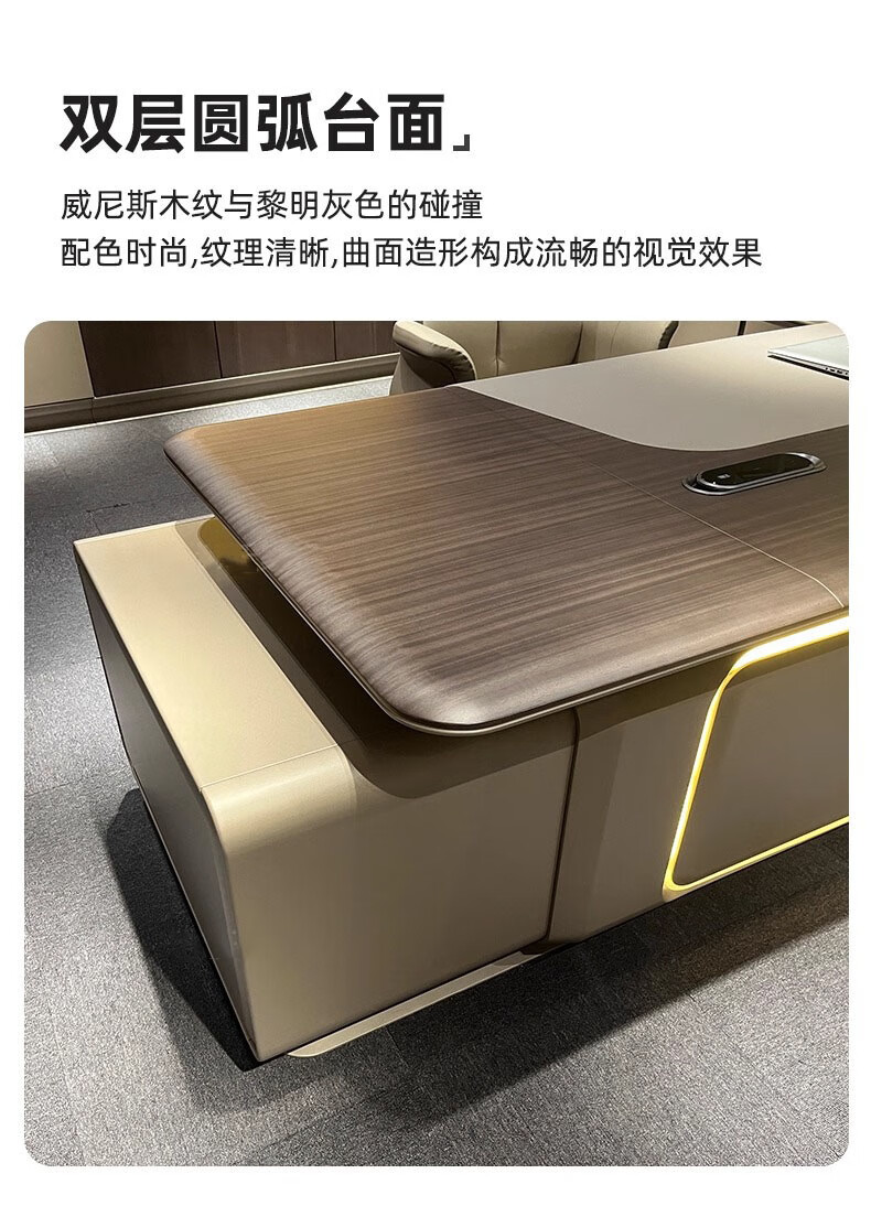 Hanjitangyu High-end Boss Desk Office Desk and Chair Combination Chairman's Office Business President Desk with Light Executive Desk Computer Desk 2.4 Meter President Desk Venetian Wood Grain + Dawn Gray