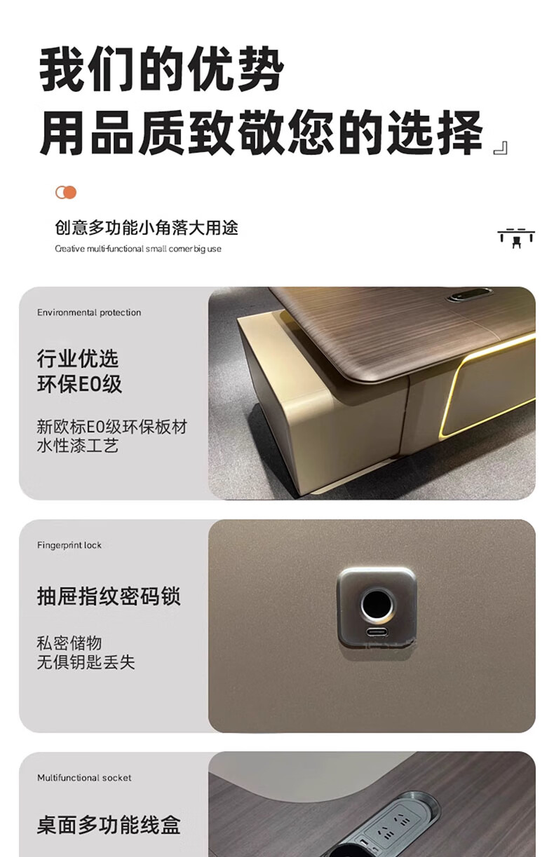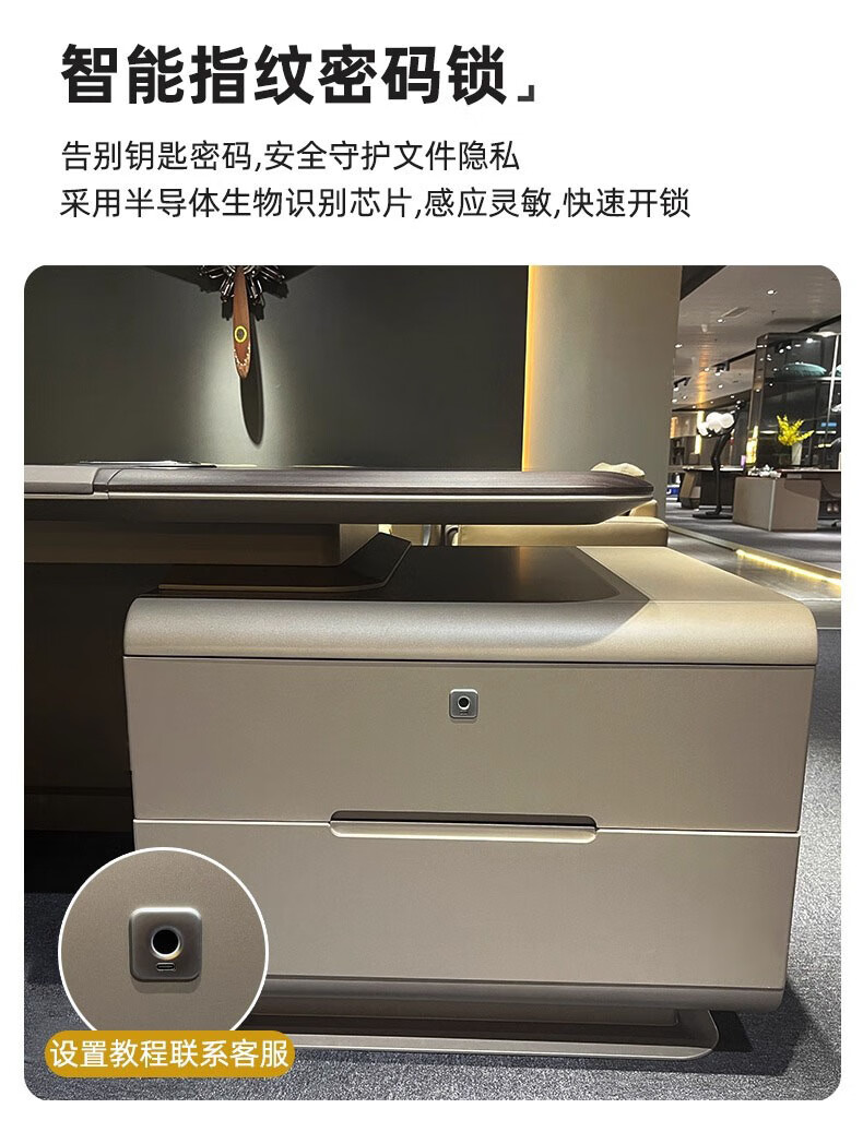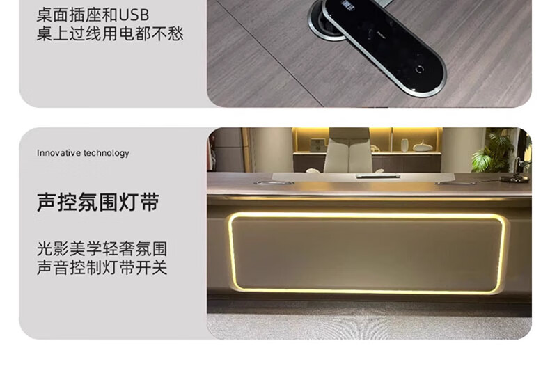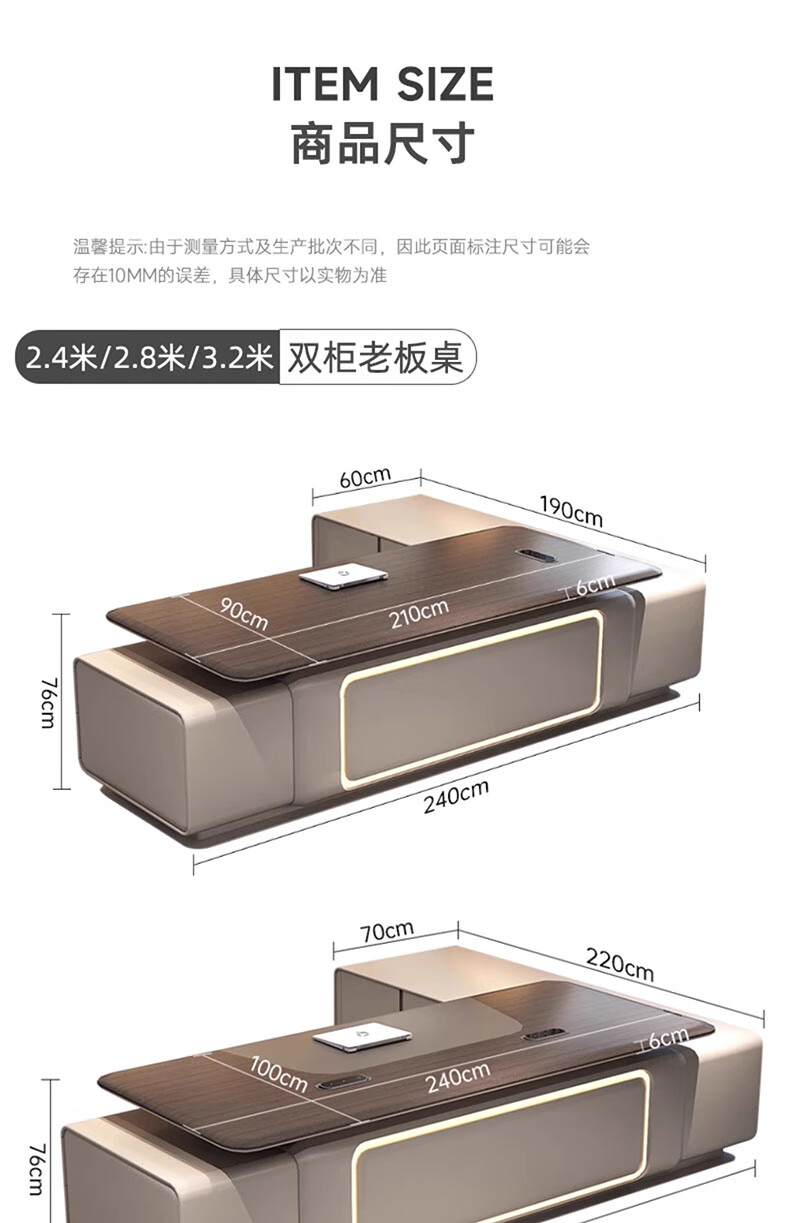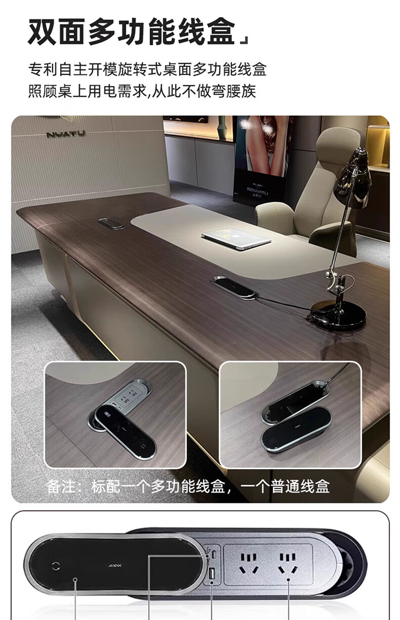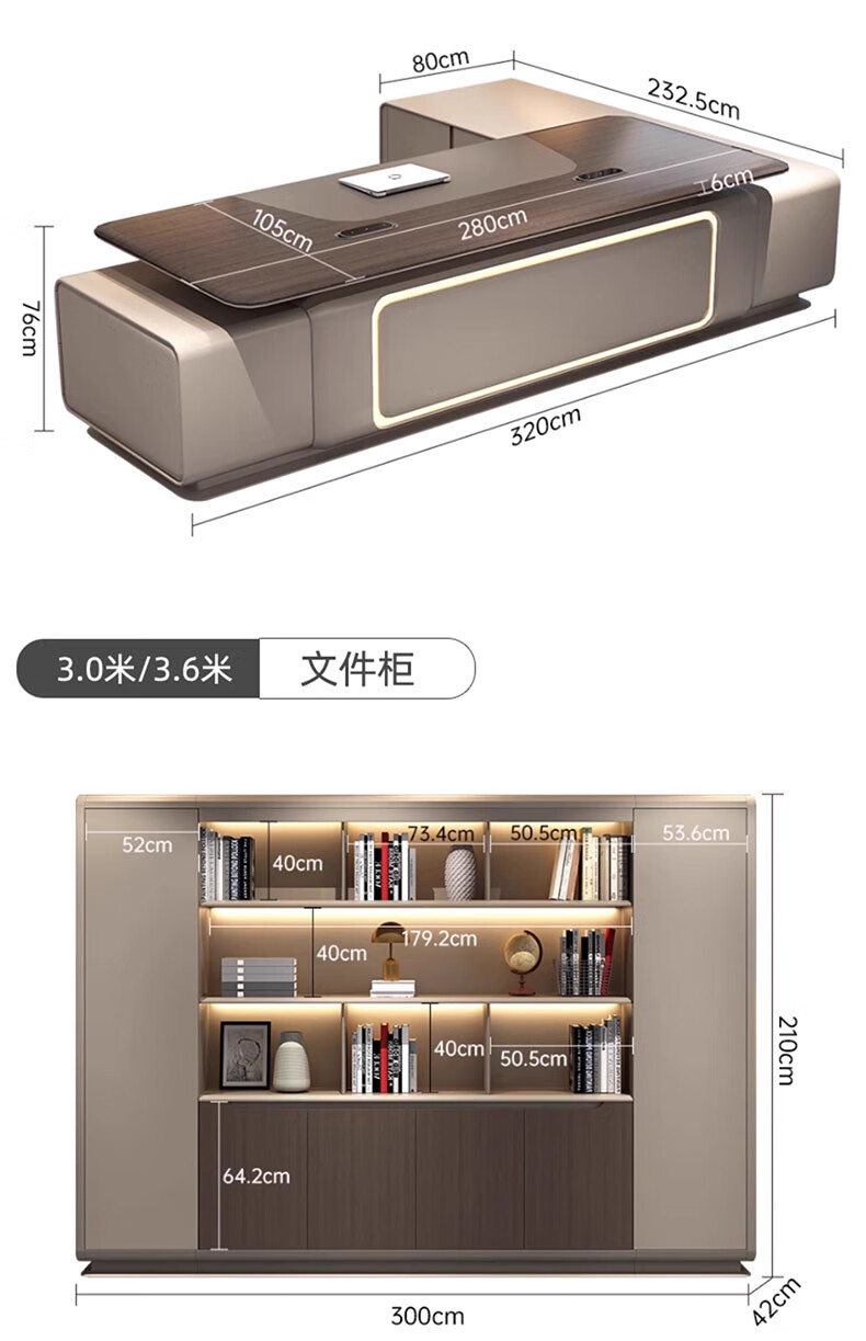 Hanjitangyu High-end Boss Desk Office Desk and Chair Combination Chairman's Office Business President Desk with Light Executive Desk Computer Desk 2.4 Meter President Desk Venetian Wood Grain + Dawn Gray