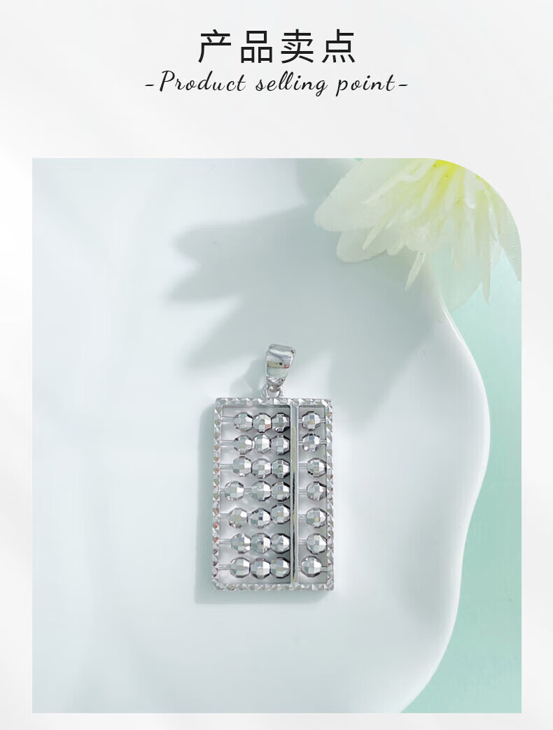 Lao Fengxiang platinum pendant pt950 laser abacus necklace gift for girlfriend and wife platinum jewelry white gold about 6.13g