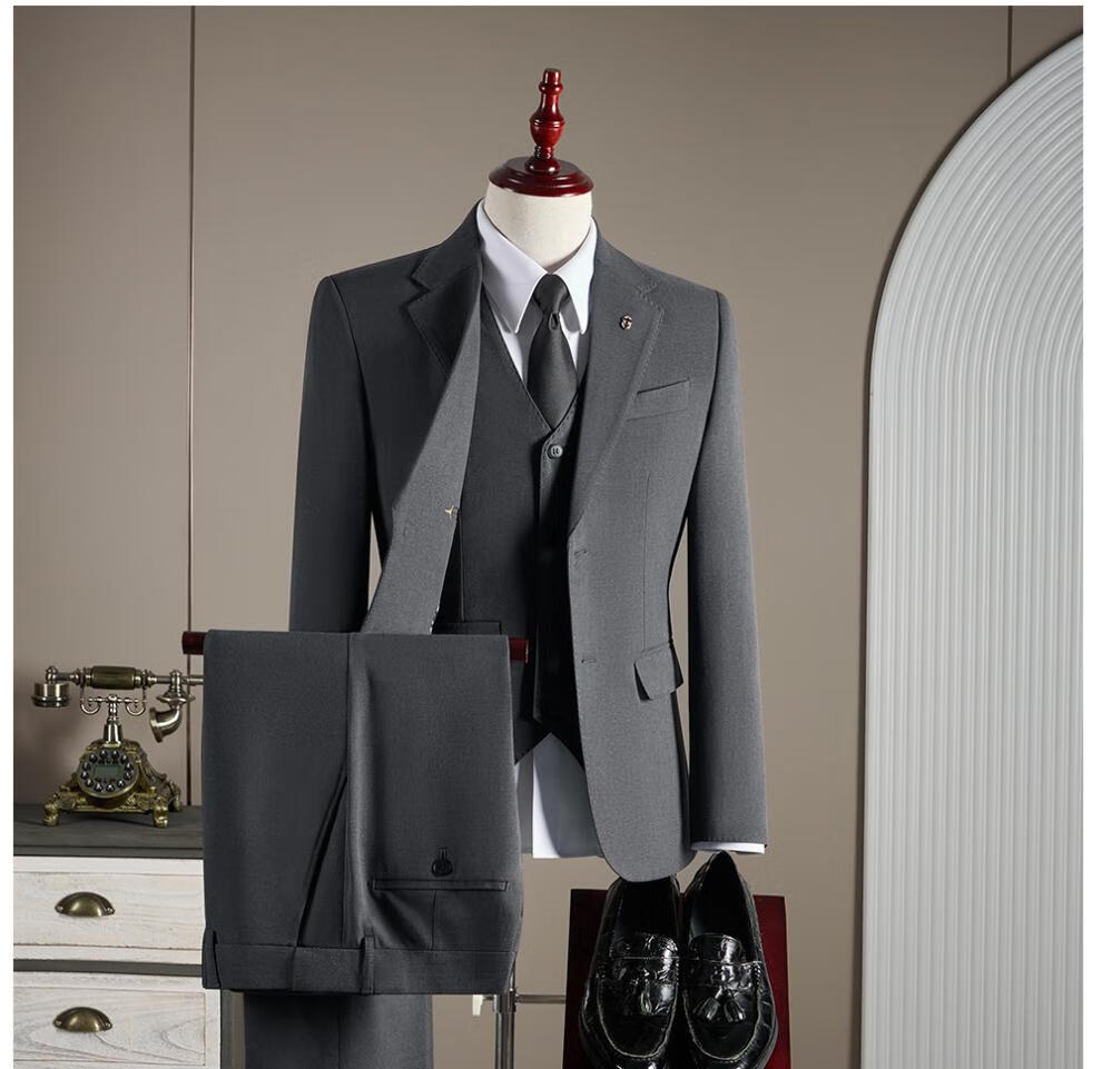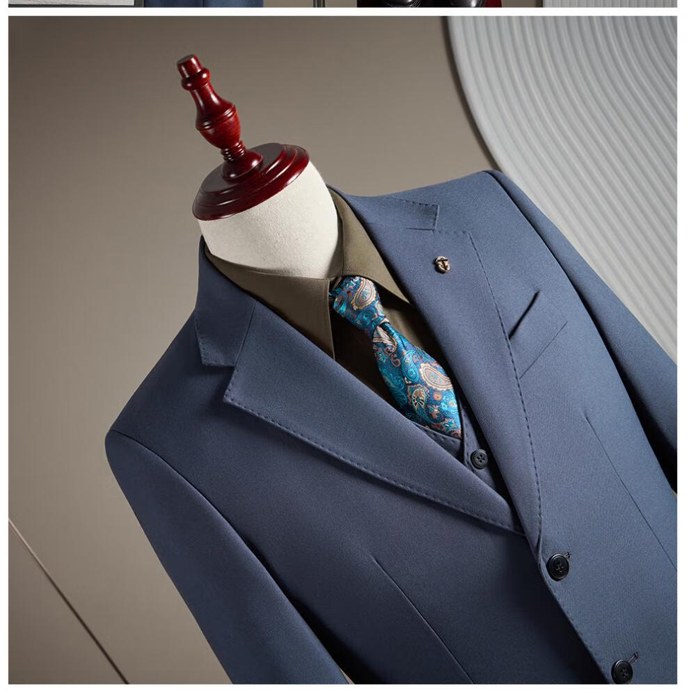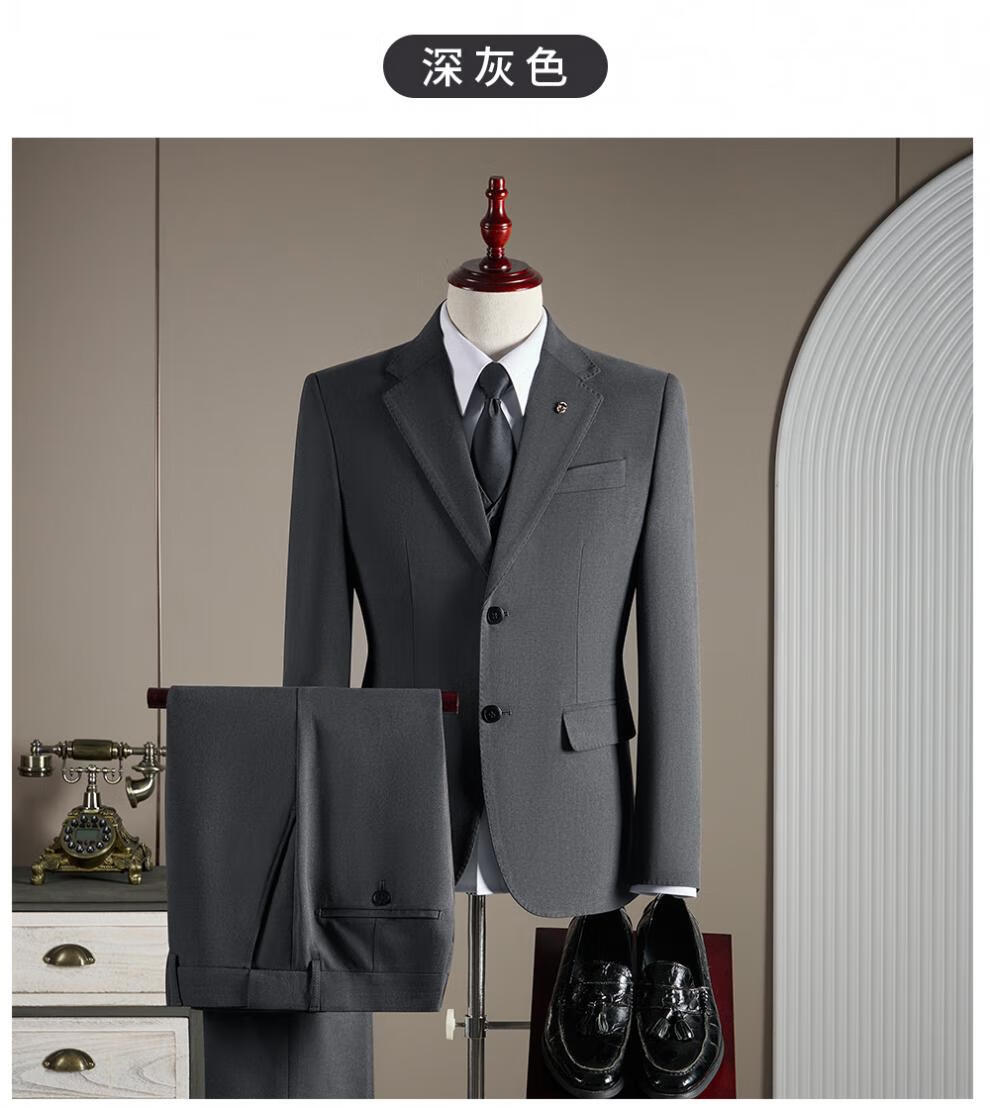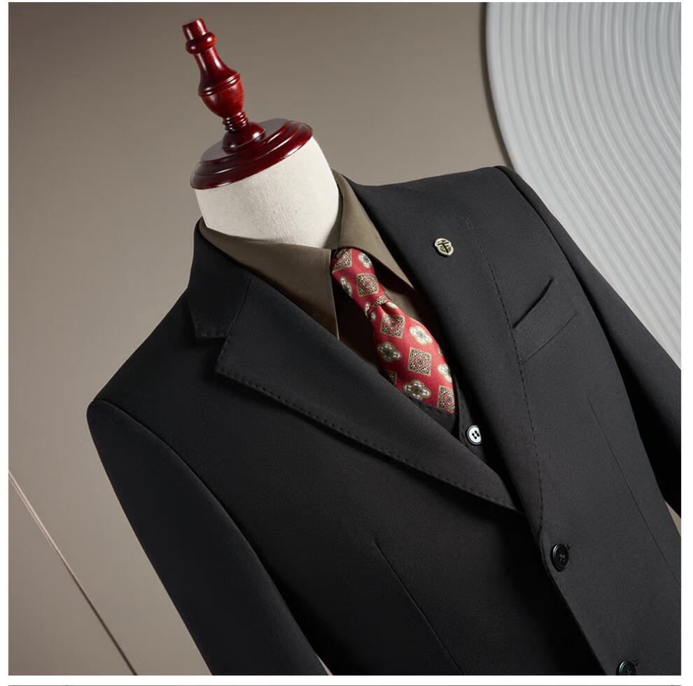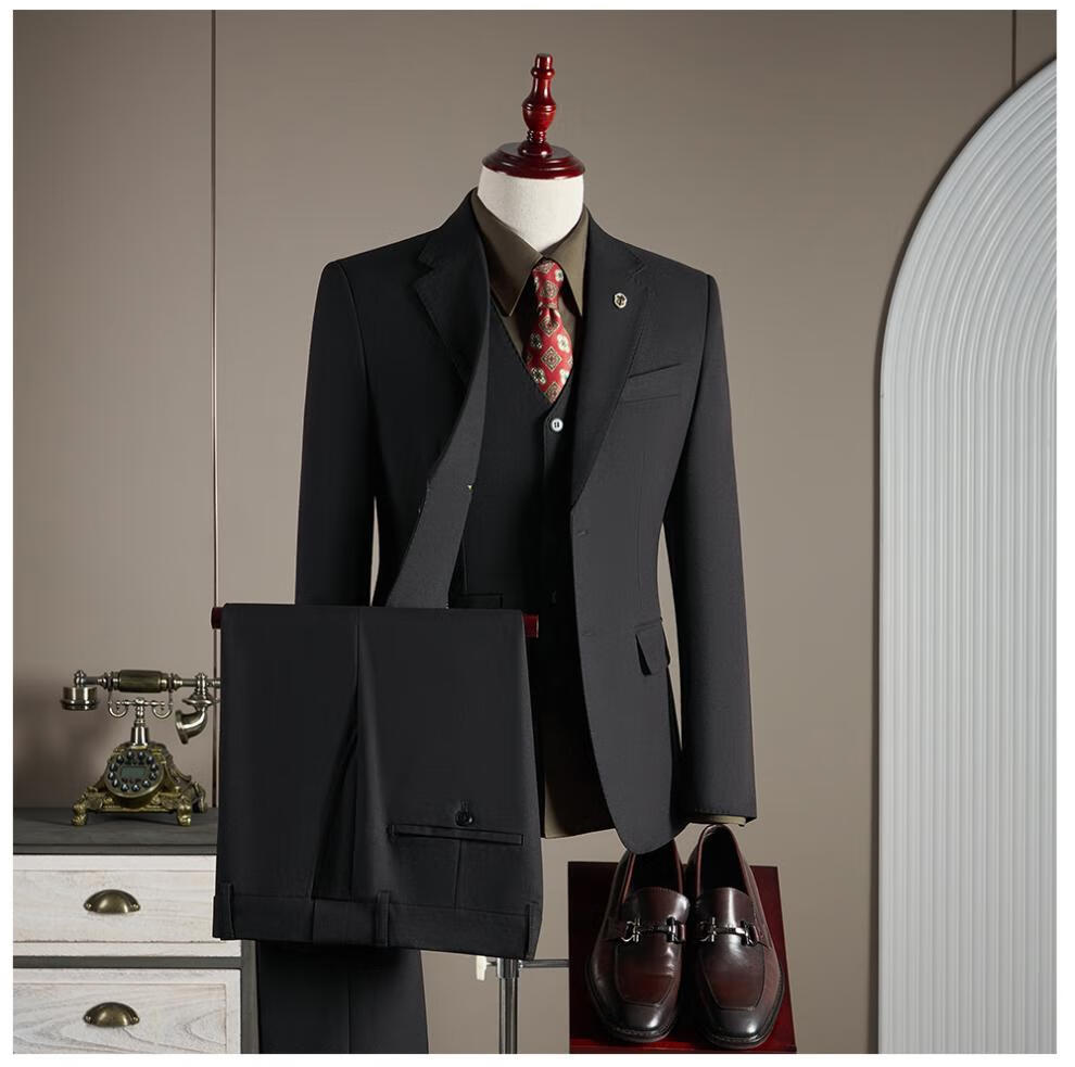 ROMON high-end wool suit men's no-iron groom's wedding dress British business formal small suit men's jacket black three-piece suit top + pants + vest 3XL 56 148-160Jin Jin equals 0.5 kg to wear