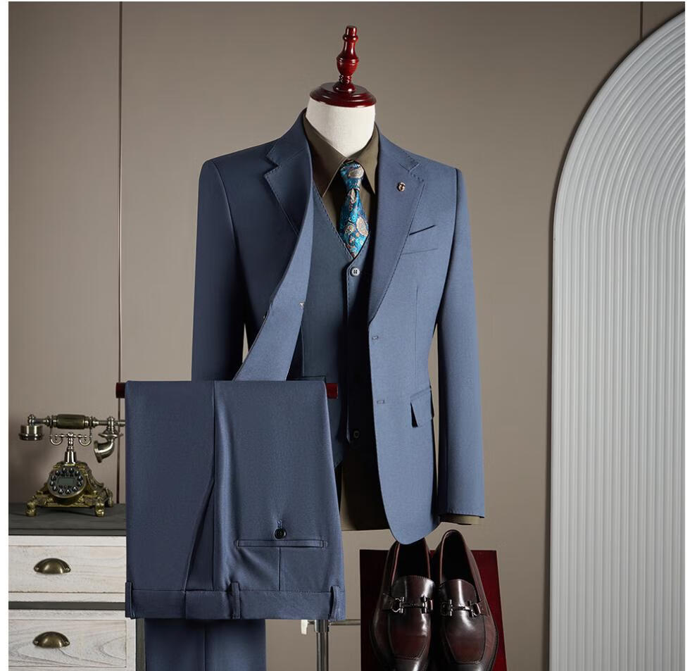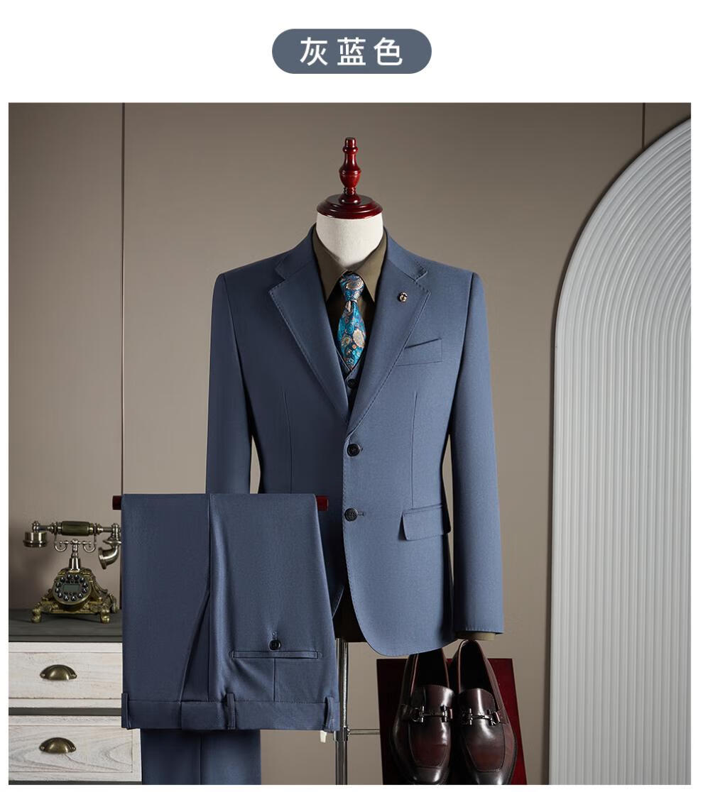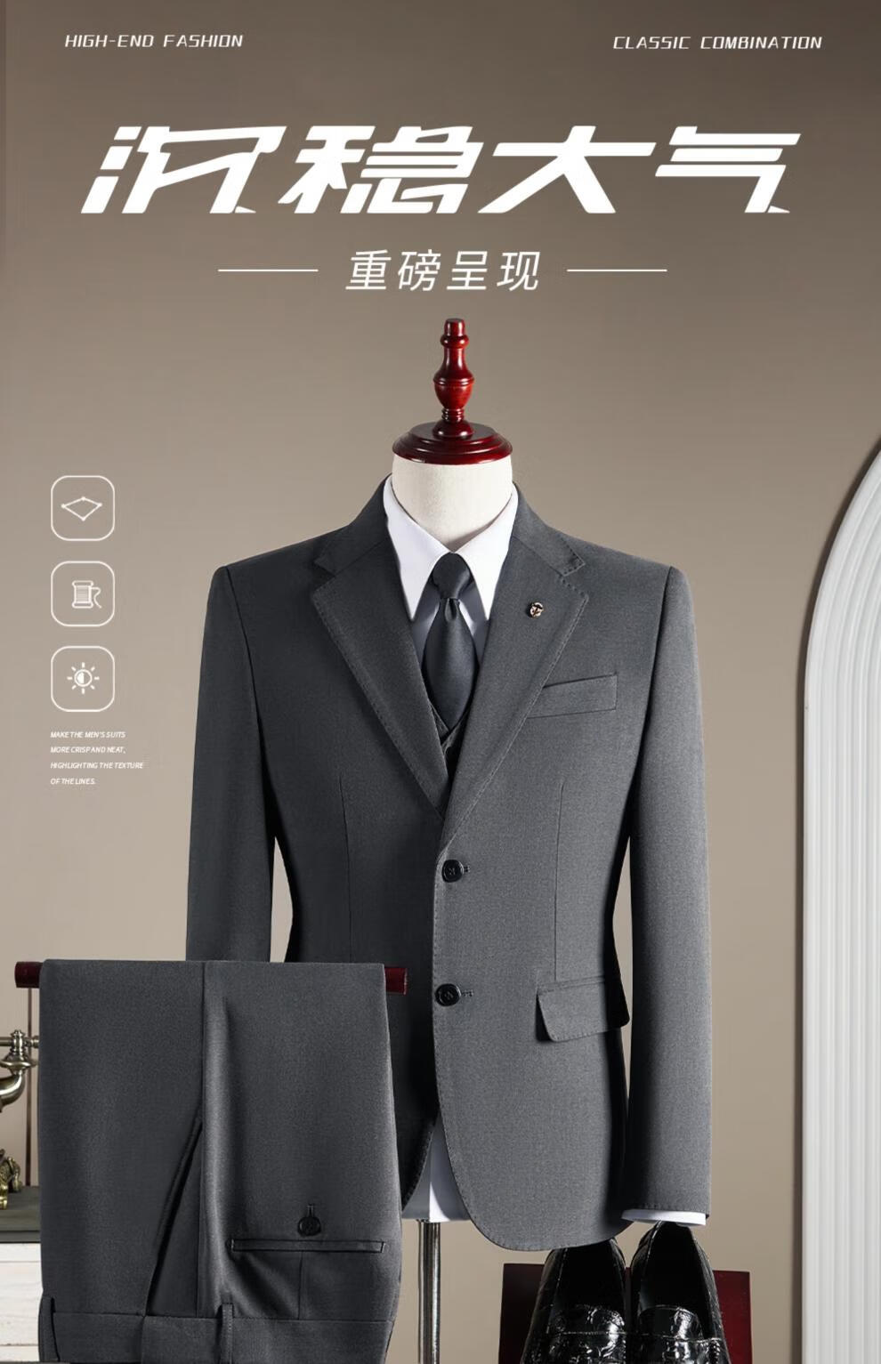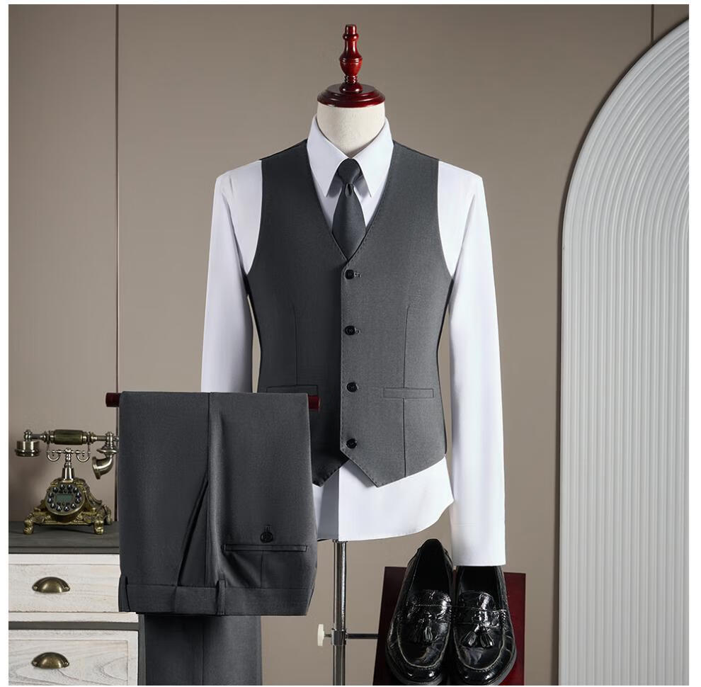 ROMON high-end wool suit men's no-iron groom's wedding dress British business formal small suit men's jacket black three-piece suit top + pants + vest 3XL 56 148-160Jin Jin equals 0.5 kg to wear