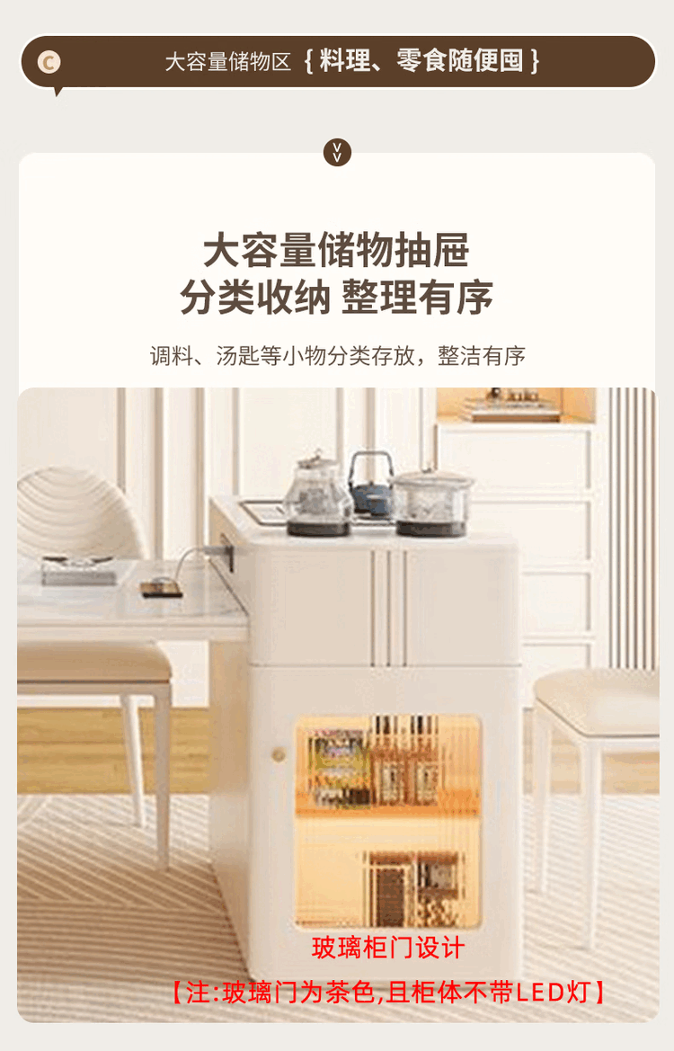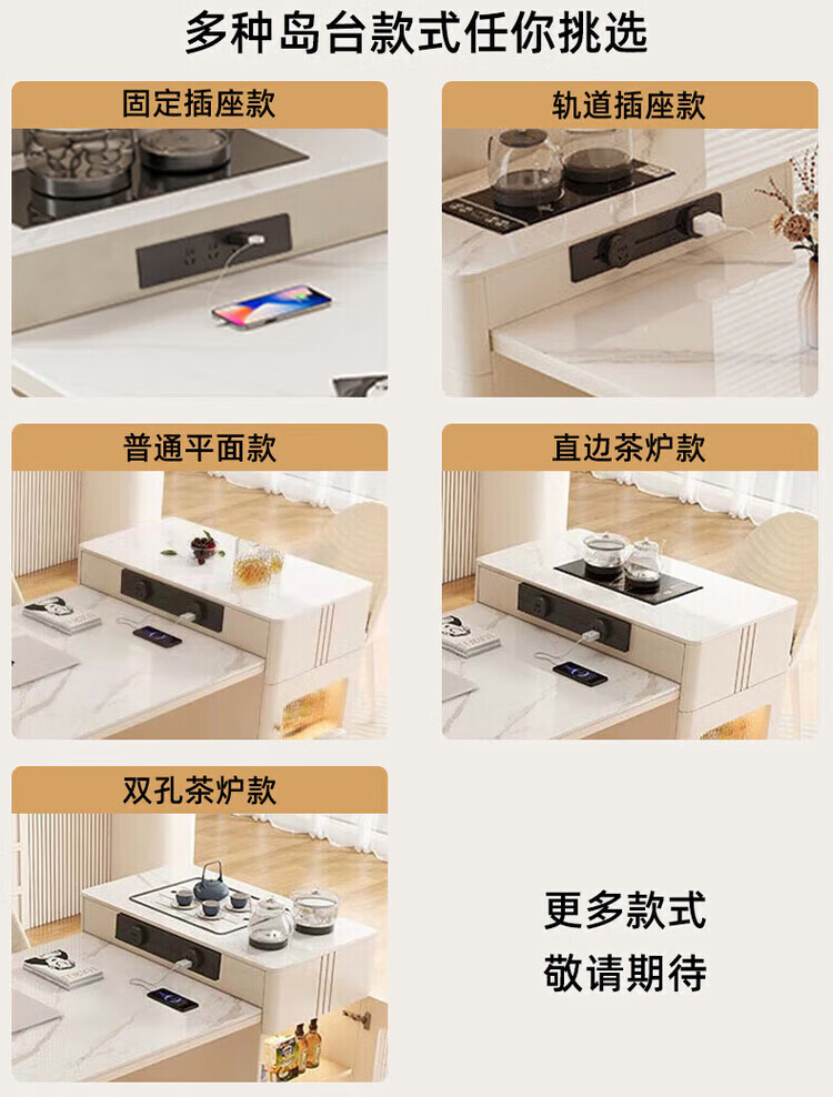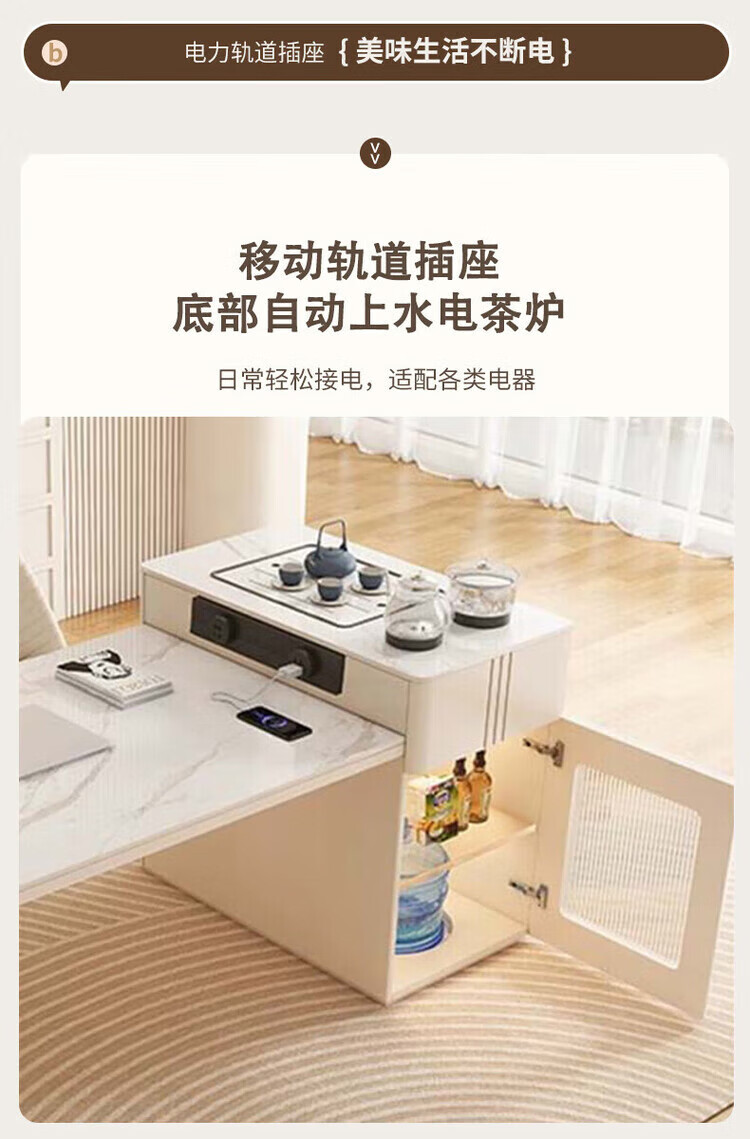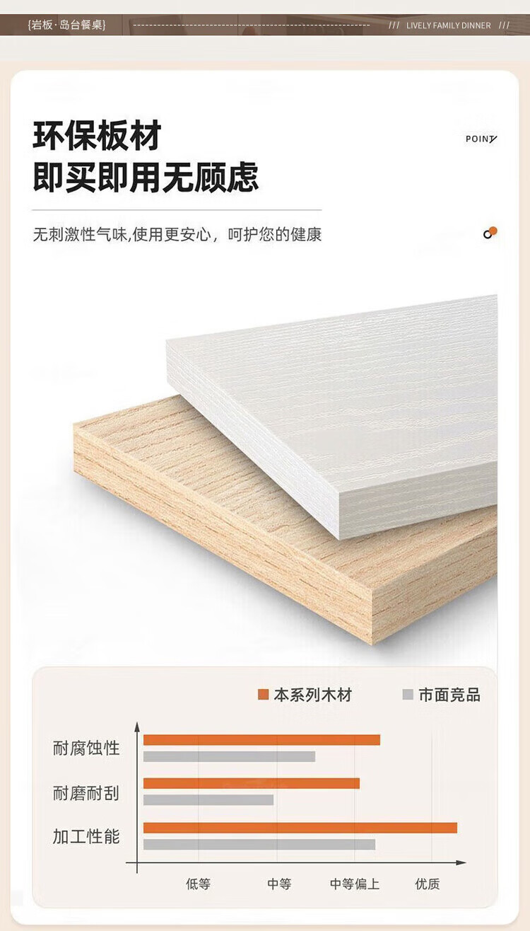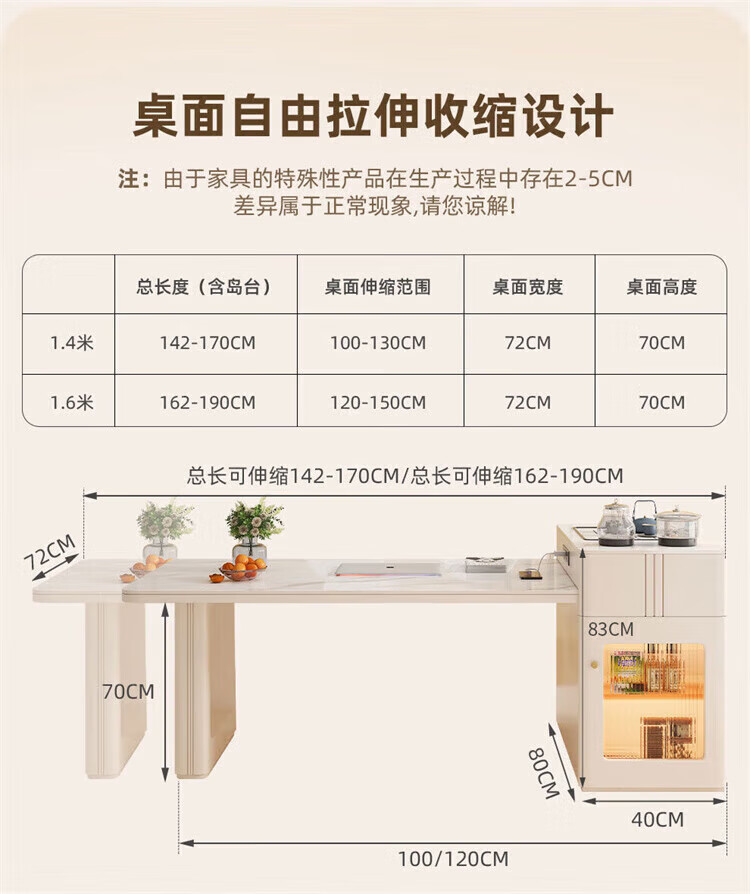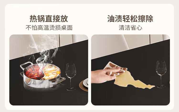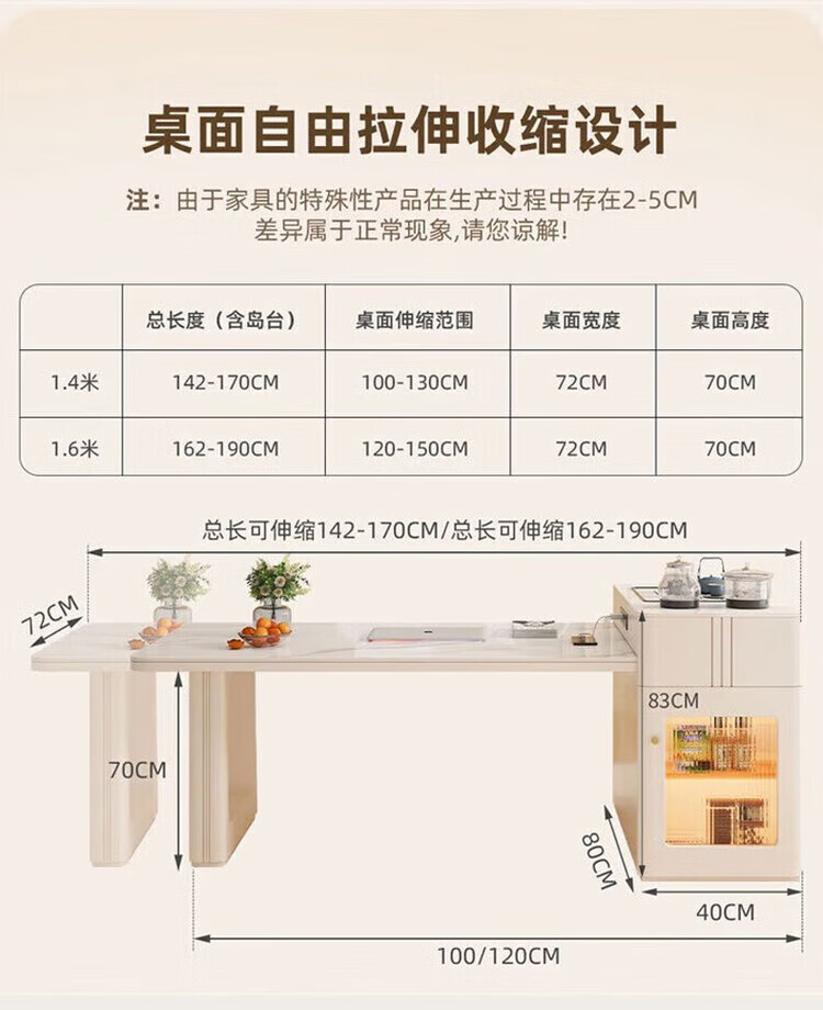 Lunzhuo Cream Style Slate Island Table Dining Table Tea Table Integrated Retractable Small Household Light Luxurious Modern Simple Dining Table Wear-resistant 12mm Slate Orbital Socket Straight Side Tea Stove 1.6 Meters 1 Table 6 Furry Chairs