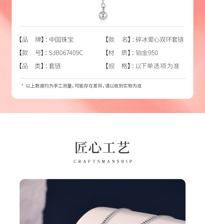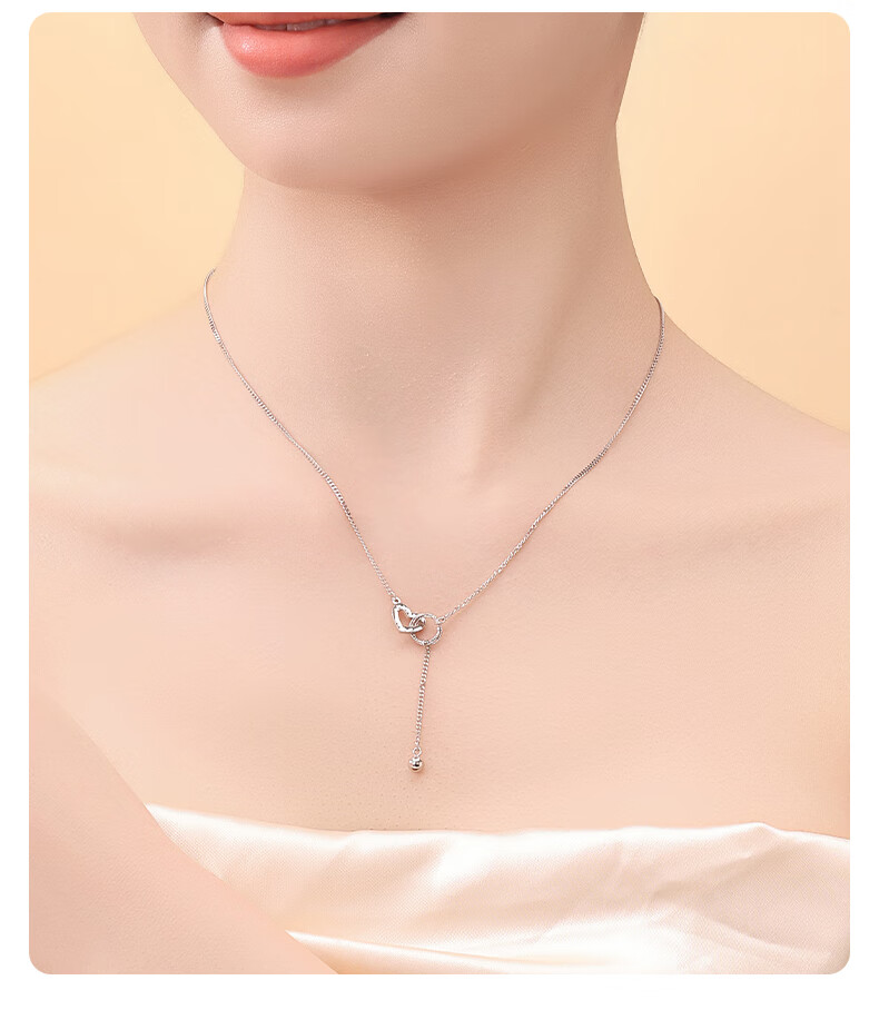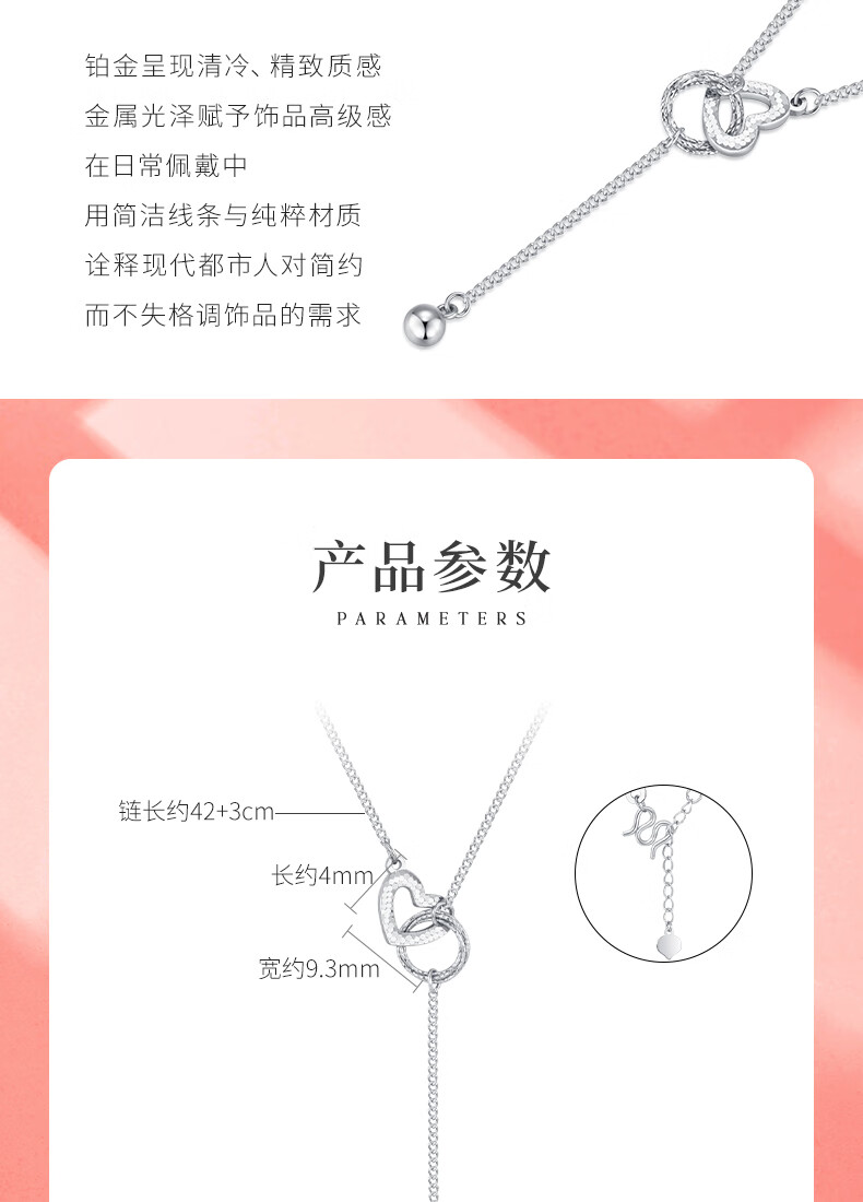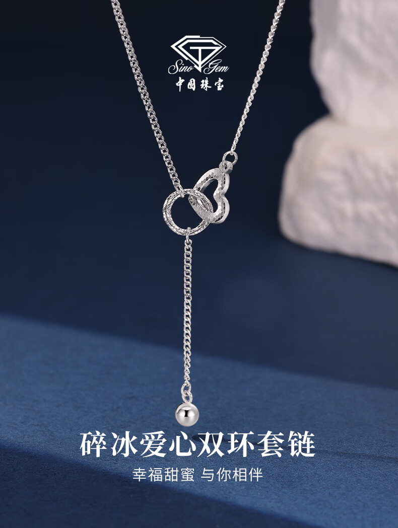 Chinese jewelry pt950 love platinum necklace plain chain versatile clavicle chain birthday gift for girlfriend broken ice love chain weight about 4.7g