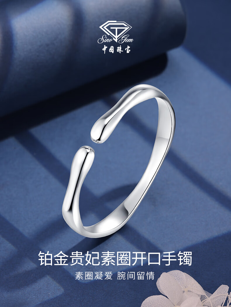 China Jewelry PT950 Imperial Concubine Ring Open Platinum Bracelet Fashionable Solid Bracelet Versatile Chinese Valentine's Day Birthday Gift for Girlfriend Imperial Concubine Ring Open Bracelet Gold Weight Approximately 30g
