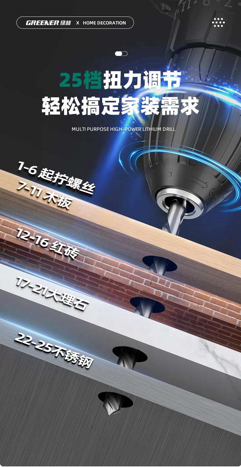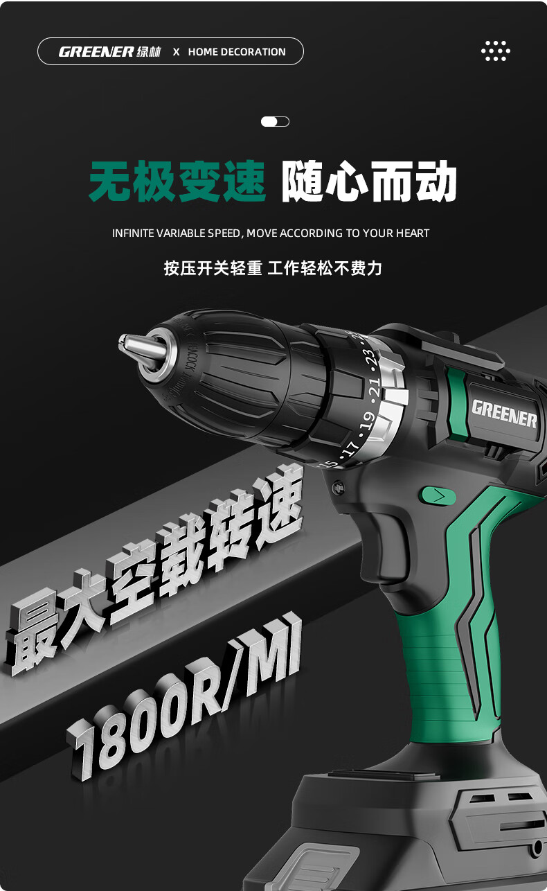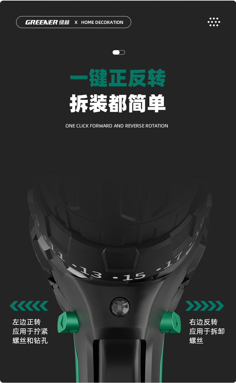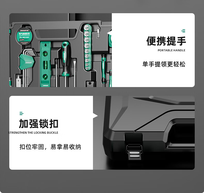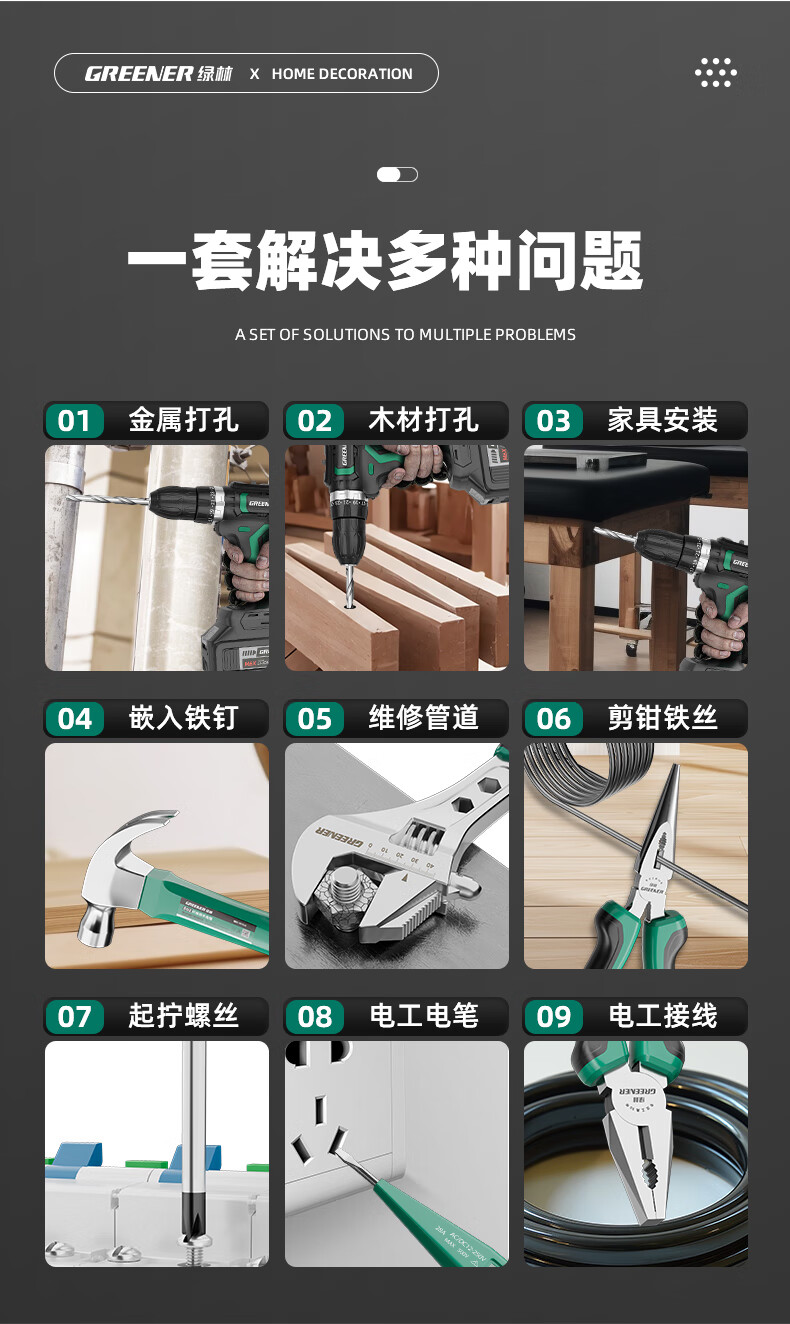 Green Forest Hardware Tool Set Household Toolbox Repair Complete Set Multifunctional Home Electrician Woodworking Electric Drill 12V Double Speed Lithium Electric Drill-34 Piece Set