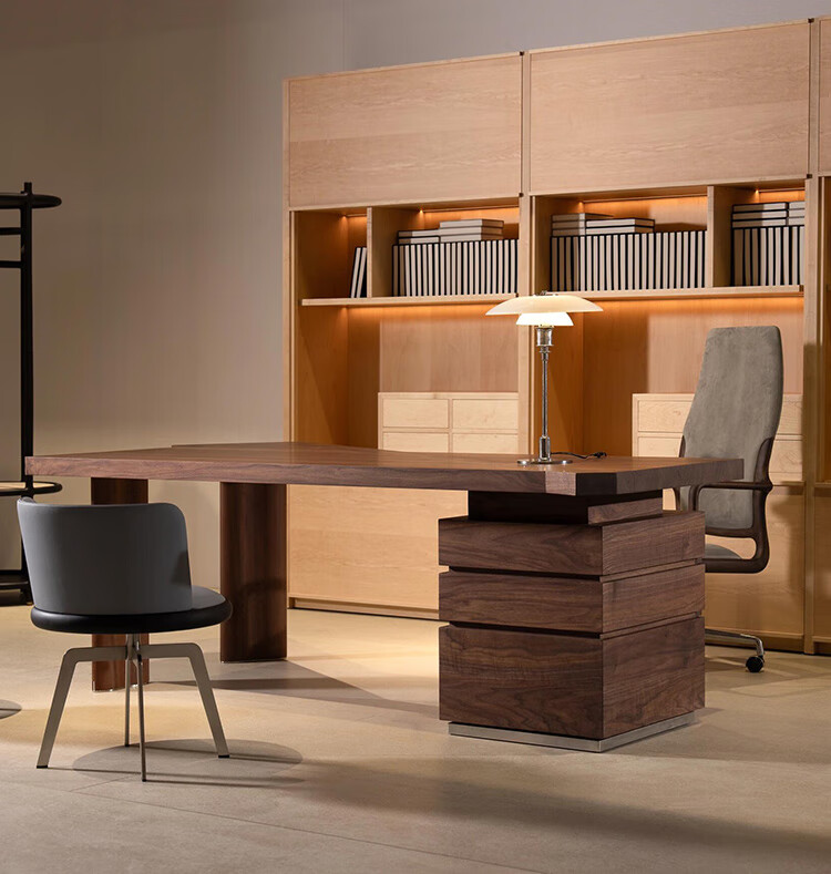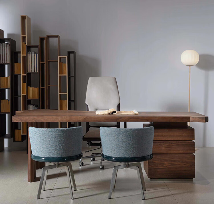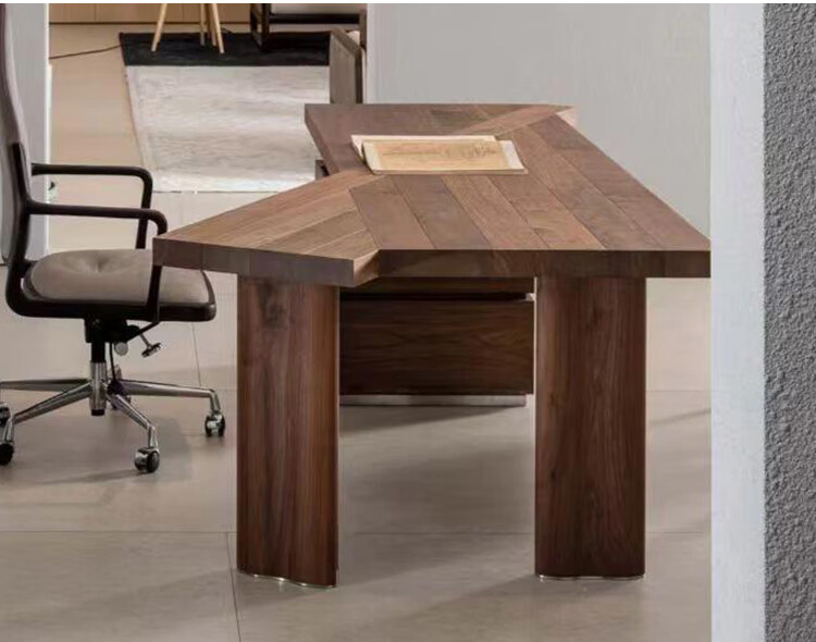 Aesthetic school new Chinese style high-end black walnut special-shaped desk Italian design office simple irregular computer desk customization contact customer service (deposit)