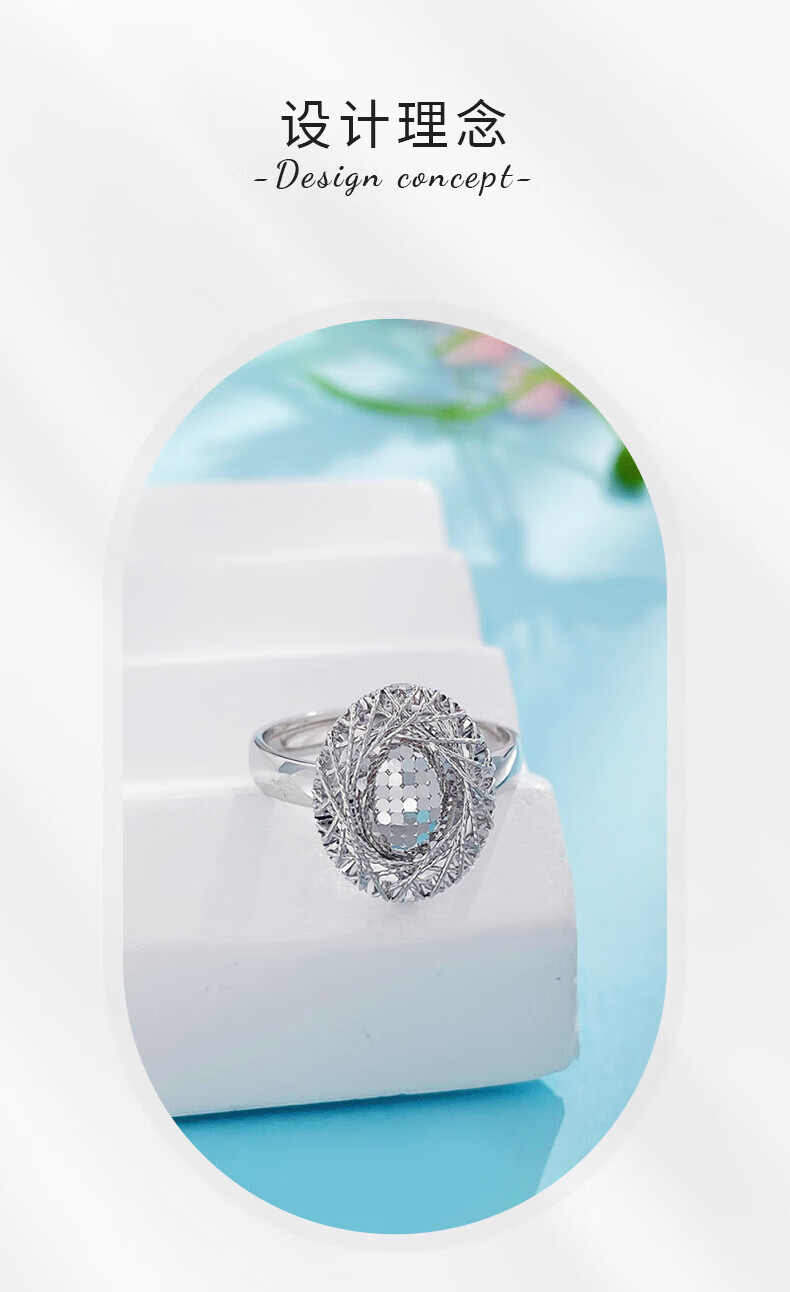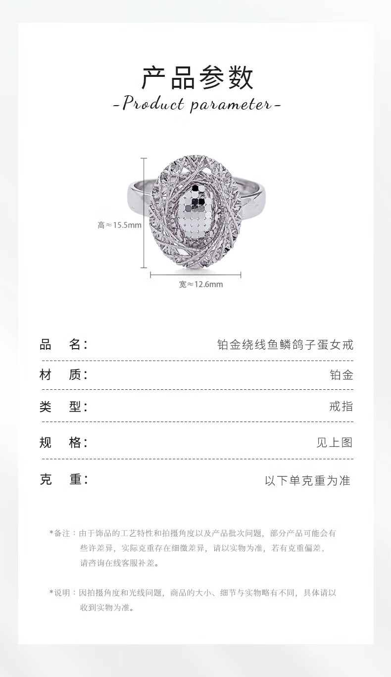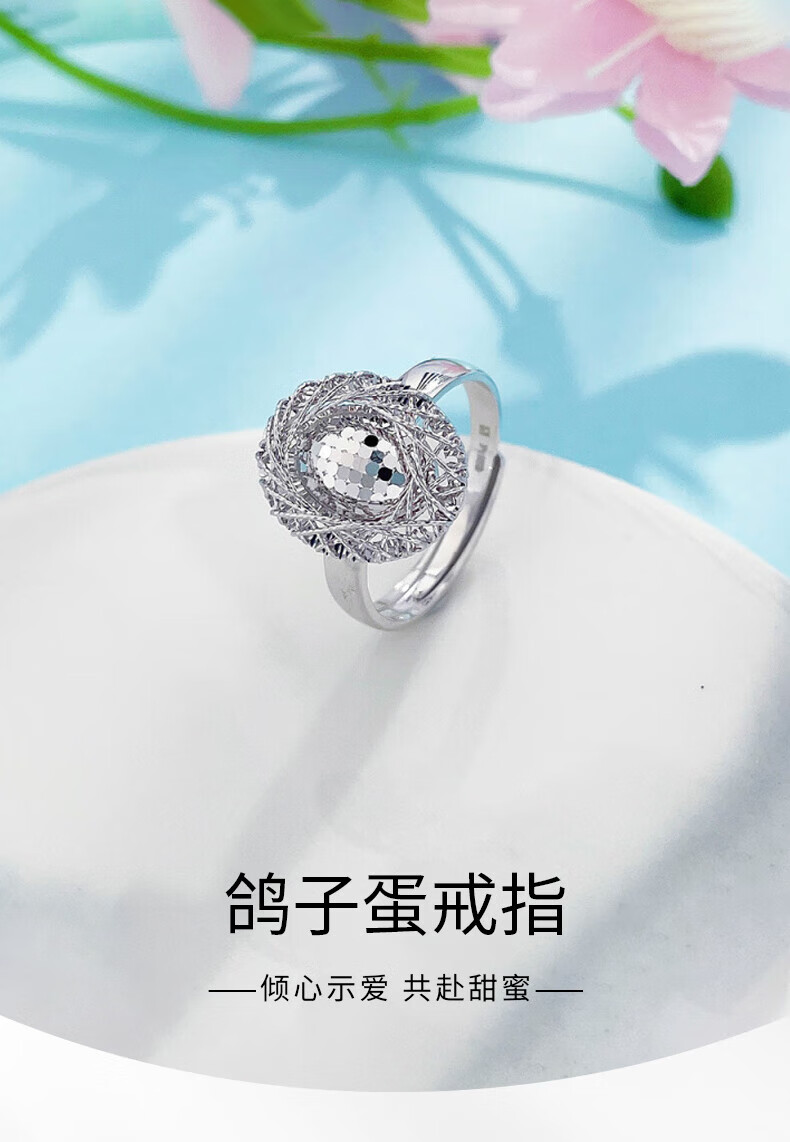 Laofu Gold Platinum Hollow Live Wire Wound Fish Scale Dove Egg Ring for Girlfriend as a Birthday Gift, About 6.43g