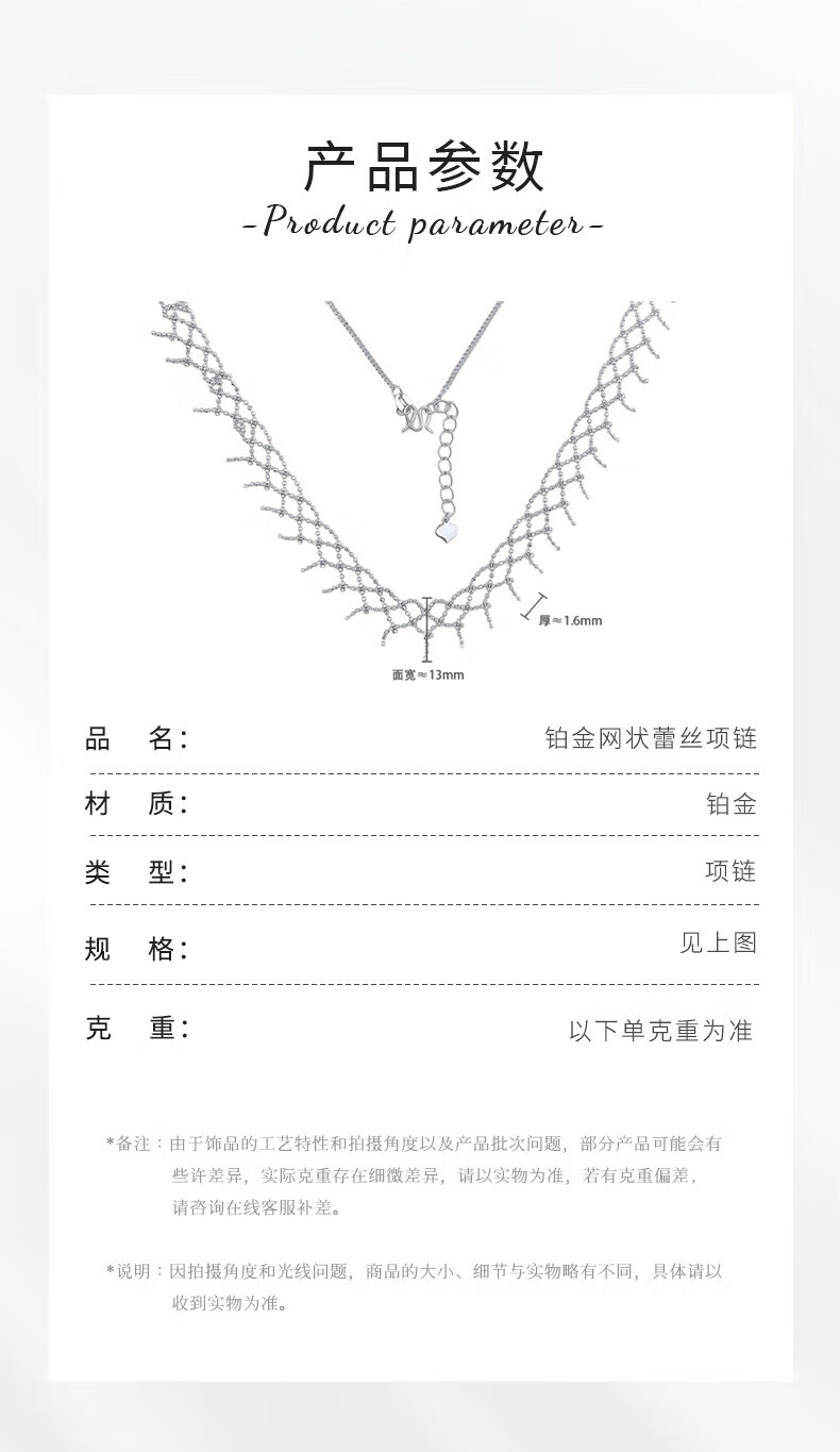 China Gold (CHINA GOLD) platinum necklace women's lace pt950 platinum set chain as a birthday gift for girlfriend, mother and wife, about 12.92g