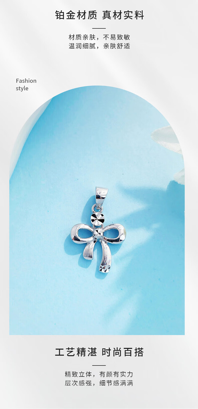 CHINA GOLD platinum pendant pt950 solid bow platinum pendant necklace girl birthday gift for girlfriend and wife about 1.76g