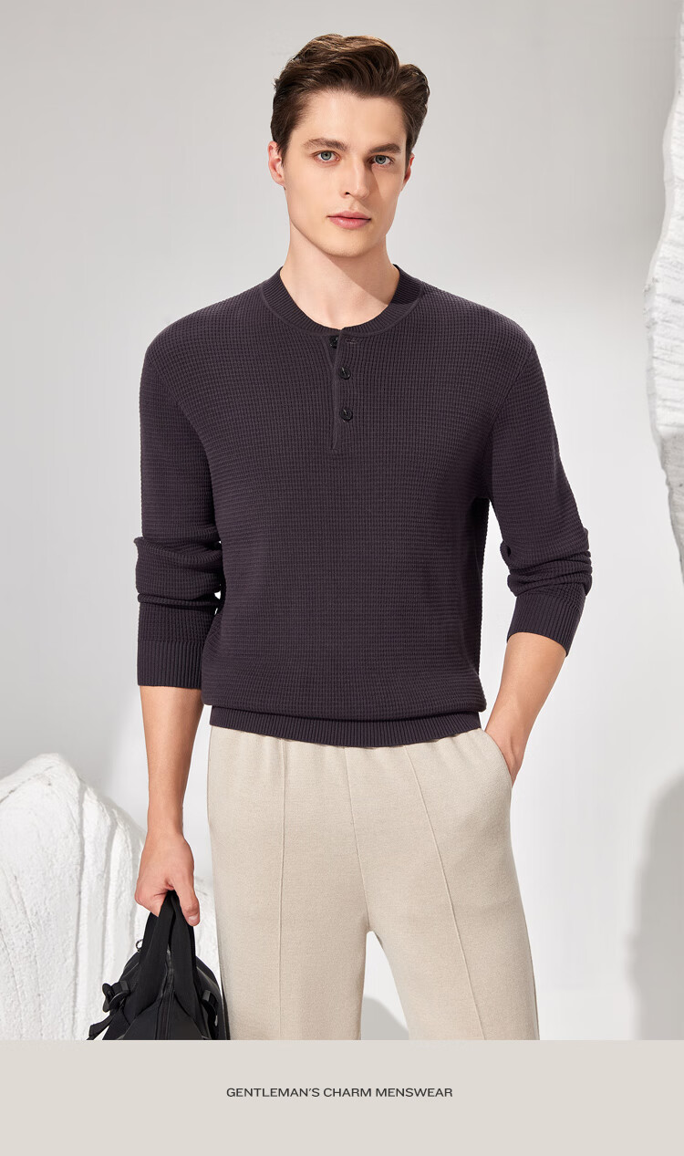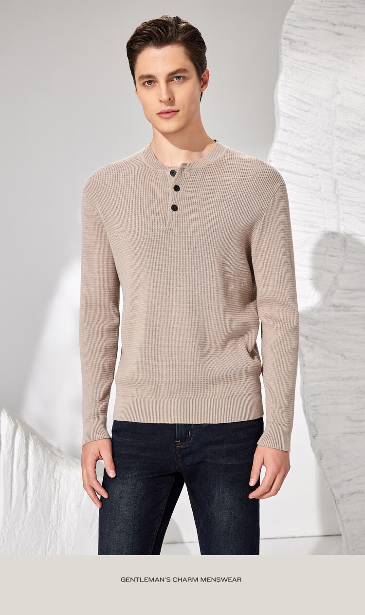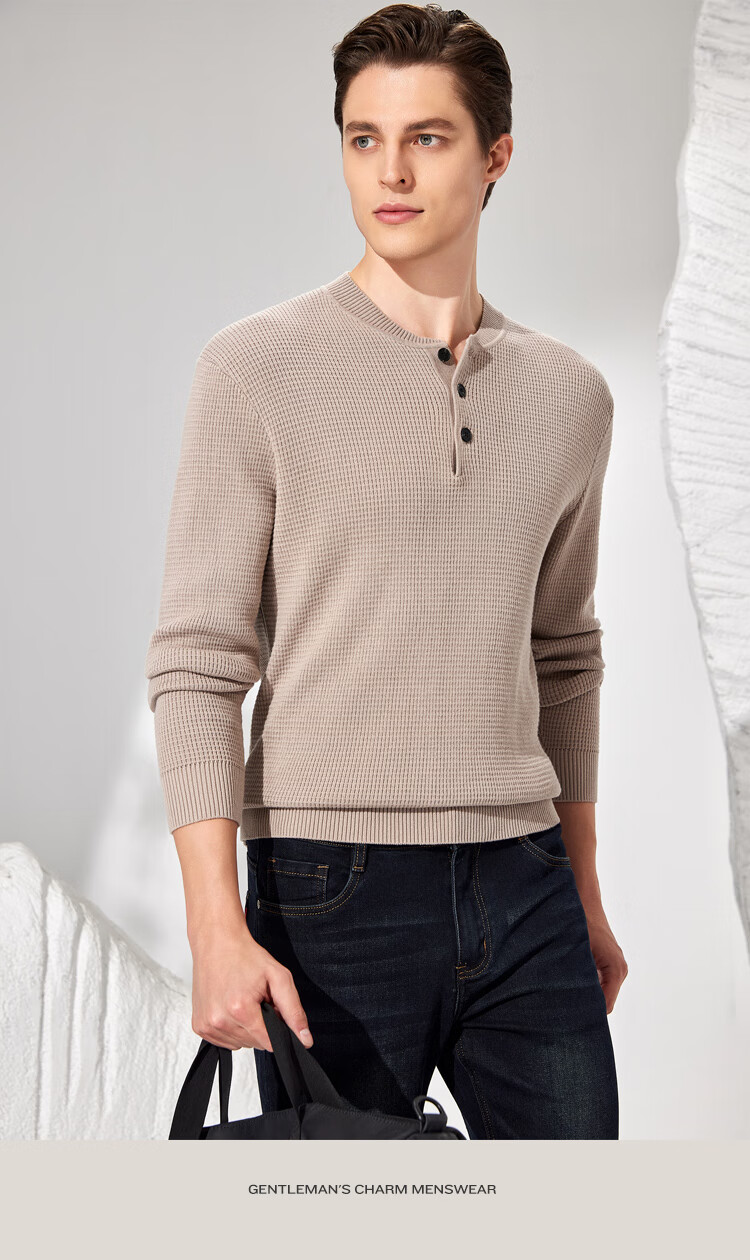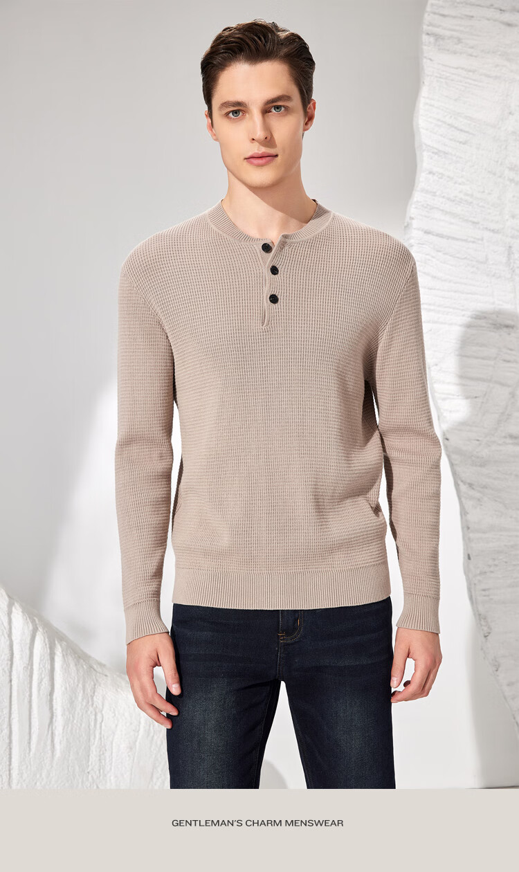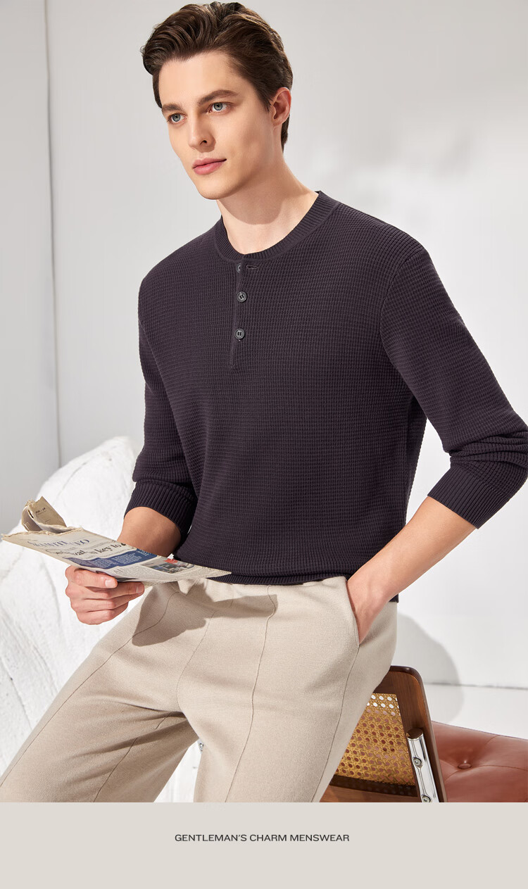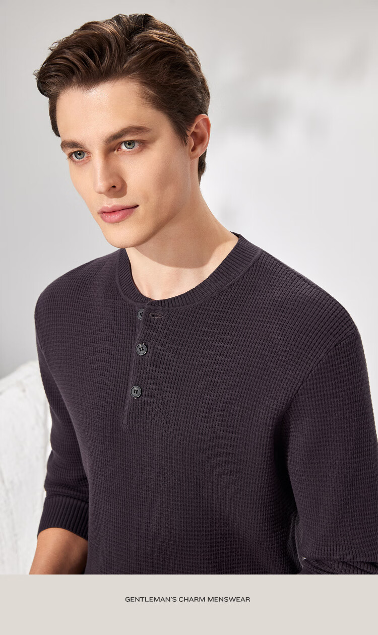 Antonio 100% long-staple cotton simple and versatile henley collar men's sweater, casual waffle texture sweater, Maxing 3XL/56(190/104A)
