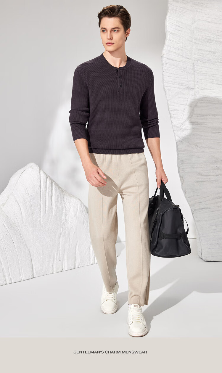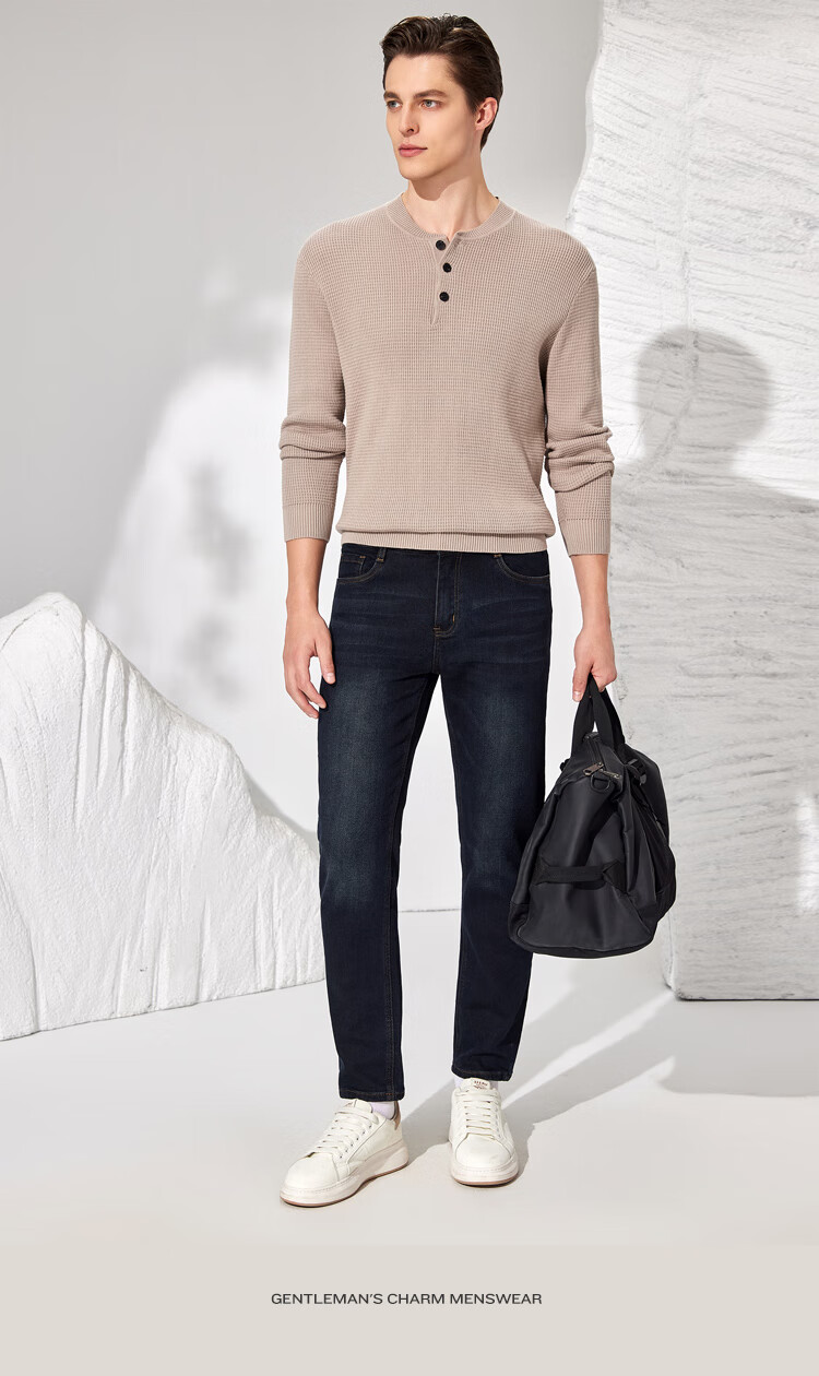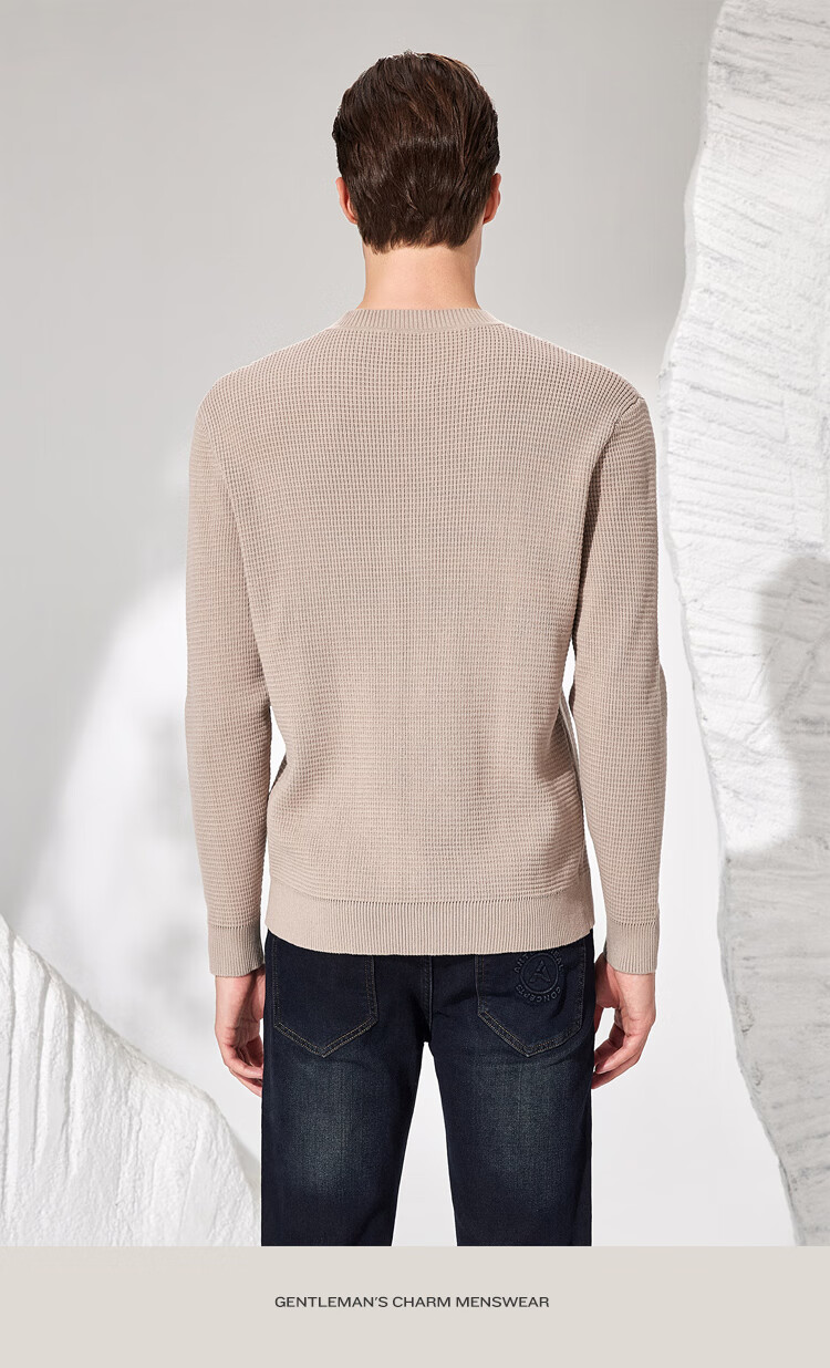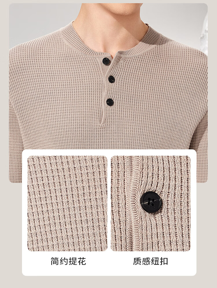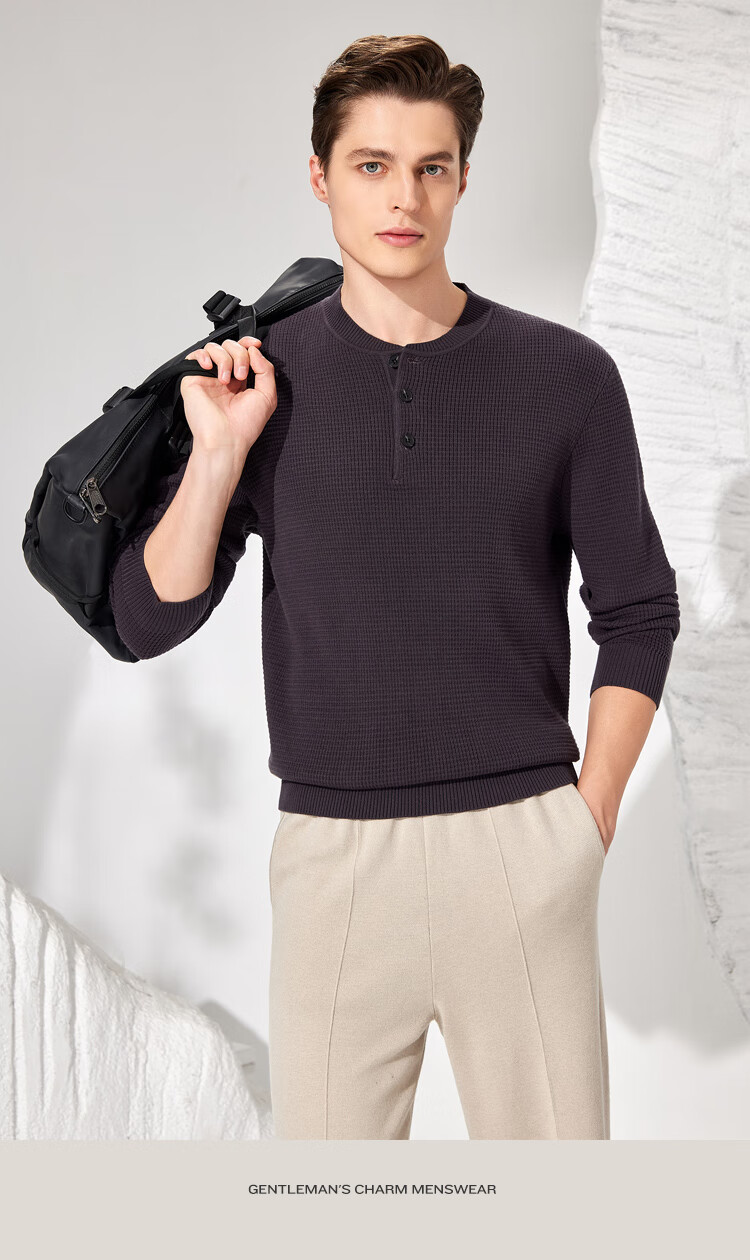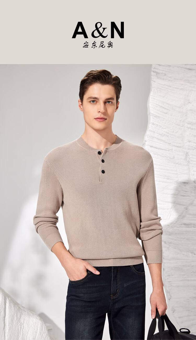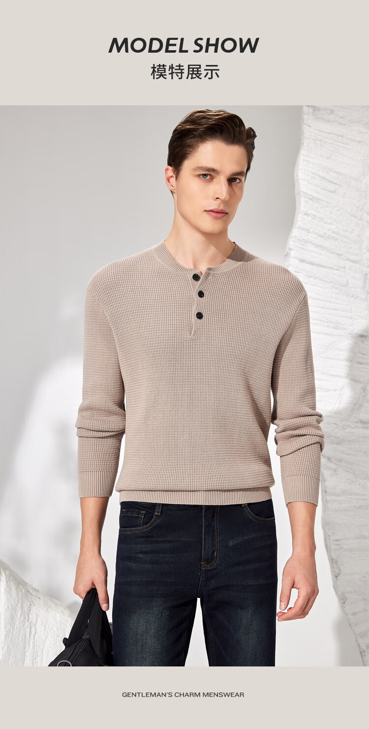 Antonio 100% long-staple cotton simple and versatile henley collar men's sweater, casual waffle texture sweater, Maxing 3XL/56(190/104A)