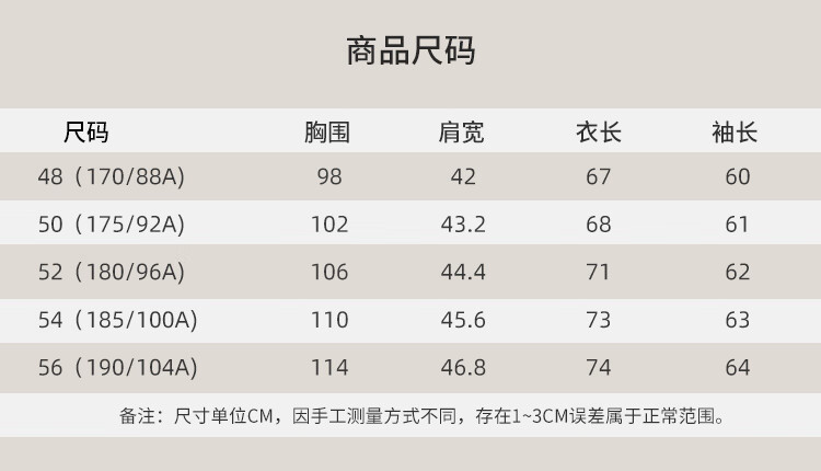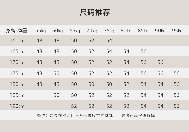 China (cm) 160-165/84-86 165-170 / 88-90 167-172 / 92-96 168-173 / 98-102 170-176 / 106-110