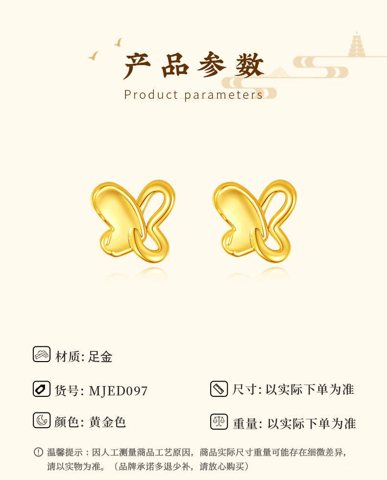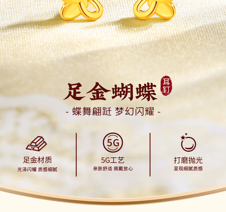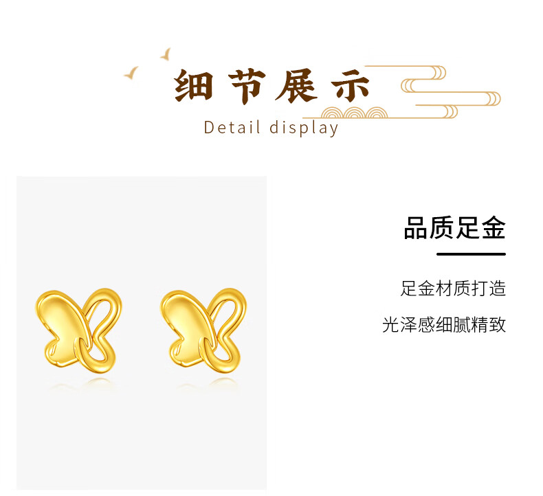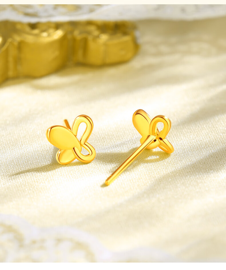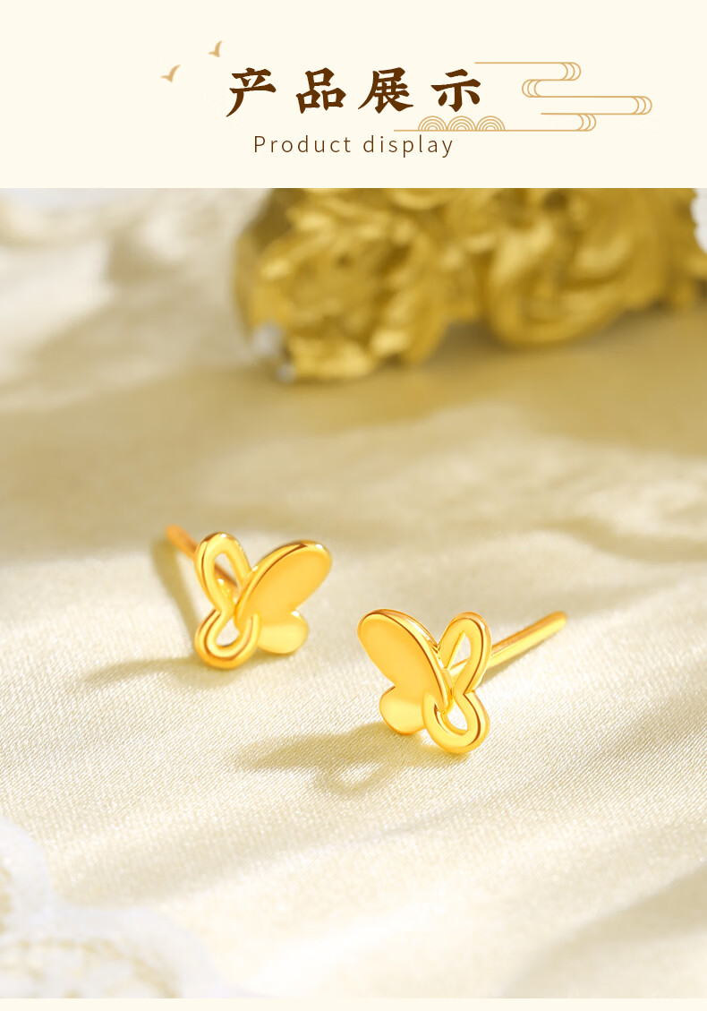 Chinese jewelry butterfly gold earrings women's pure gold earrings birthday gift for girlfriend and wife gold weight about 1g pure gold earrings