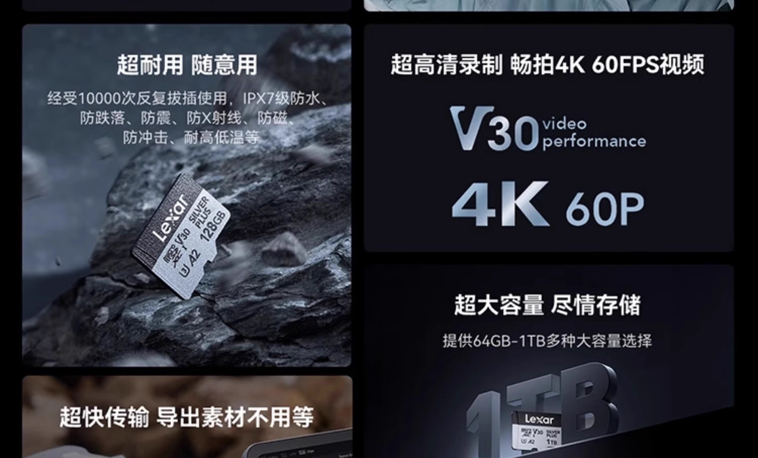 雷克沙TF卡1t内存卡512g大疆无人机运动相机/影石gopro存储卡256G 无人机 运动相机 256G 4k