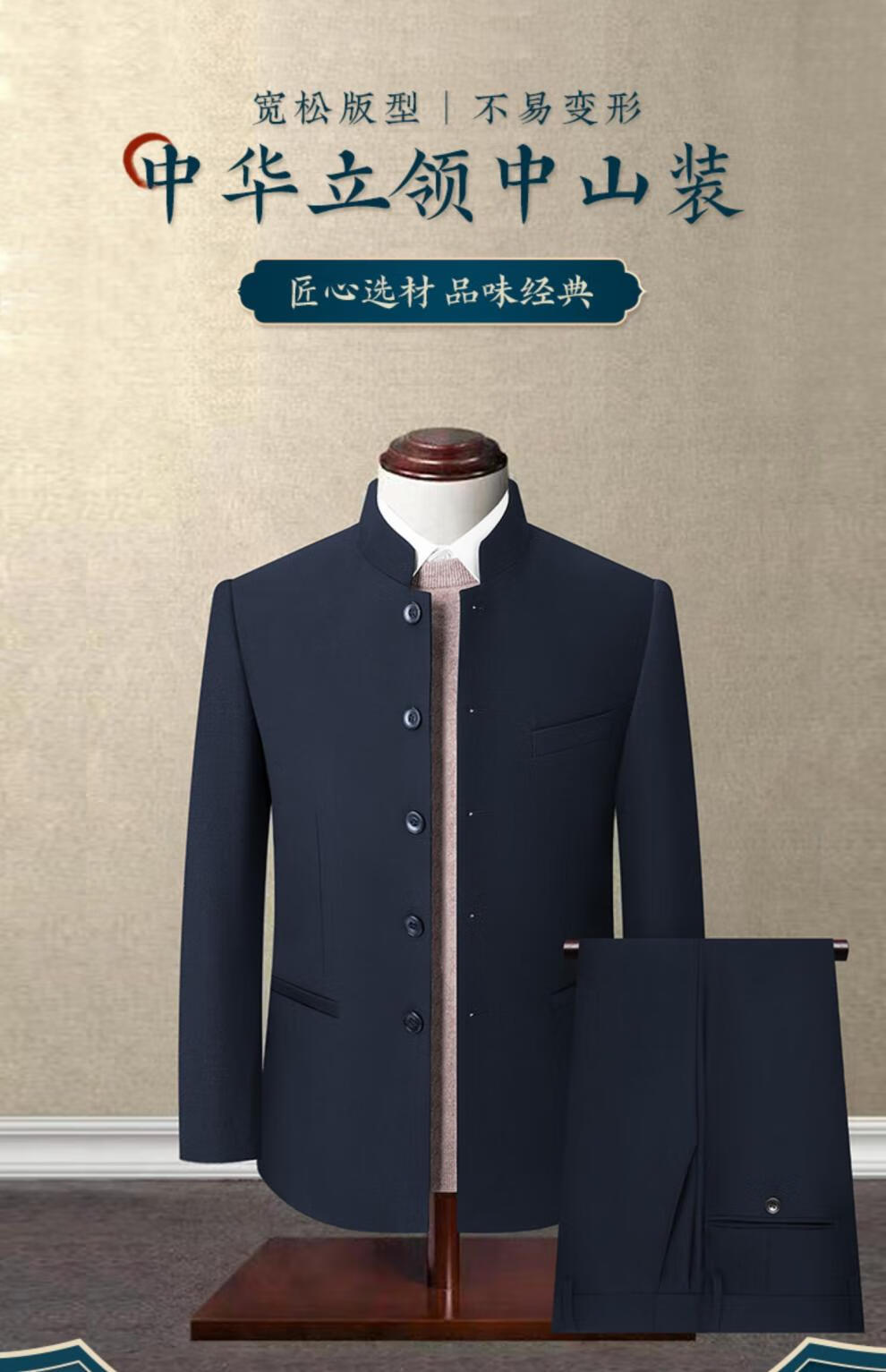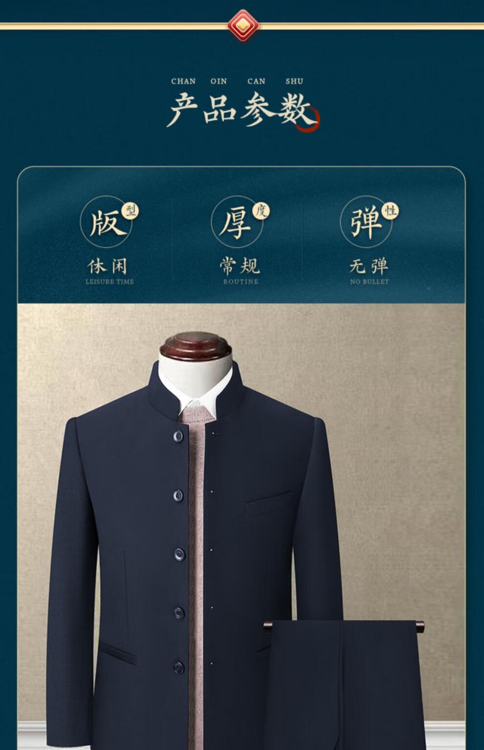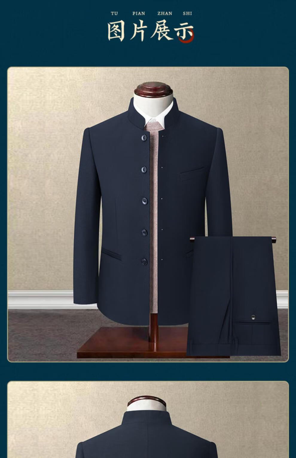 Luo Meng Spring and Autumn Chinese Style Chinese Stand Collar Suit Mao Suit Men's Middle-aged Slim Tang Suit Men's Middle-aged Dad's Suit Pure Navy Blue Style S 165A 110-126Jin Jin is equal to 0.5 kg