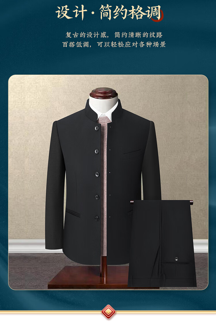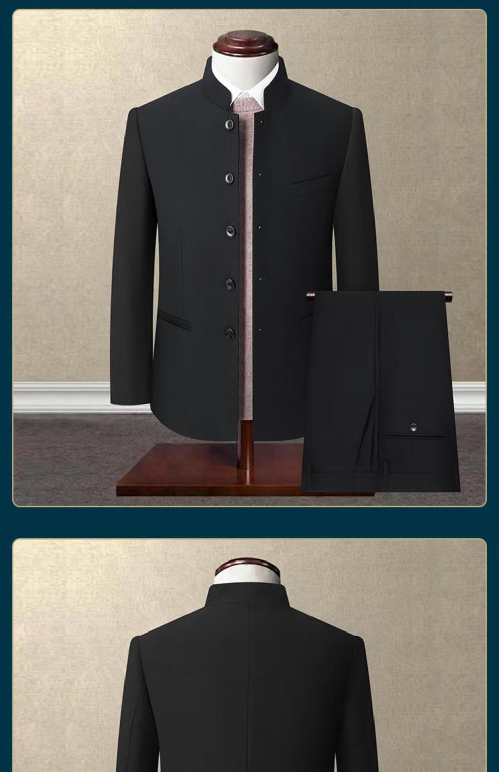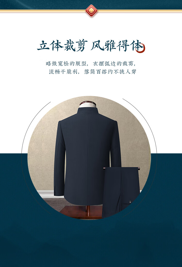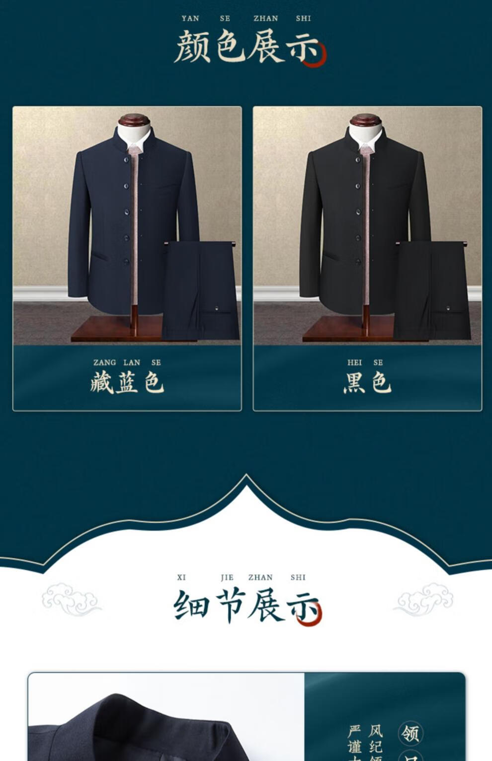 Luo Meng Spring and Autumn Chinese Style Chinese Stand Collar Suit Mao Suit Men's Middle-aged Slim Tang Suit Men's Middle-aged Dad's Suit Pure Navy Blue Style S 165A 110-126Jin Jin is equal to 0.5 kg