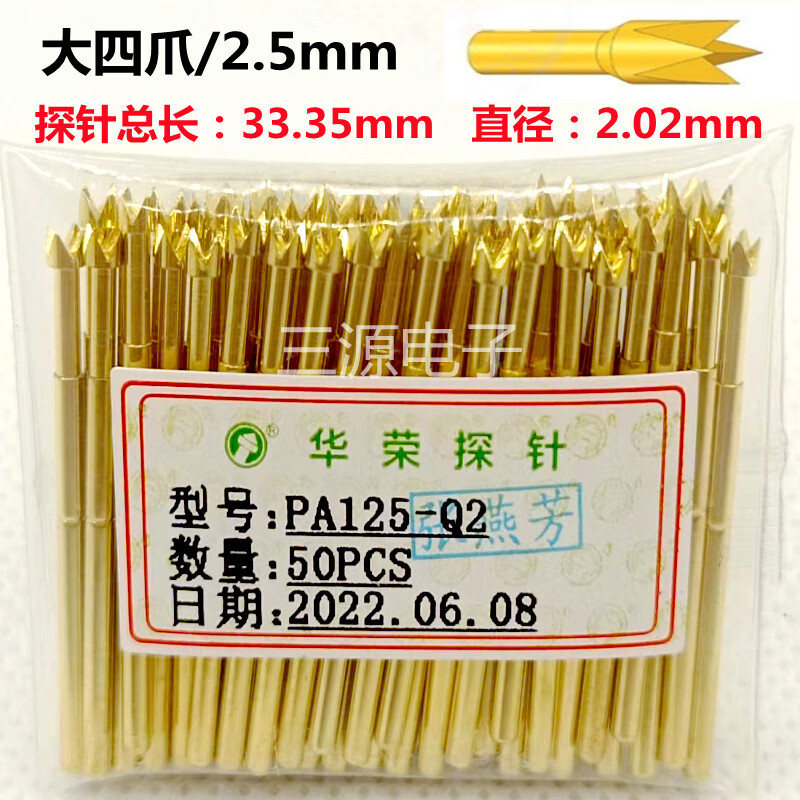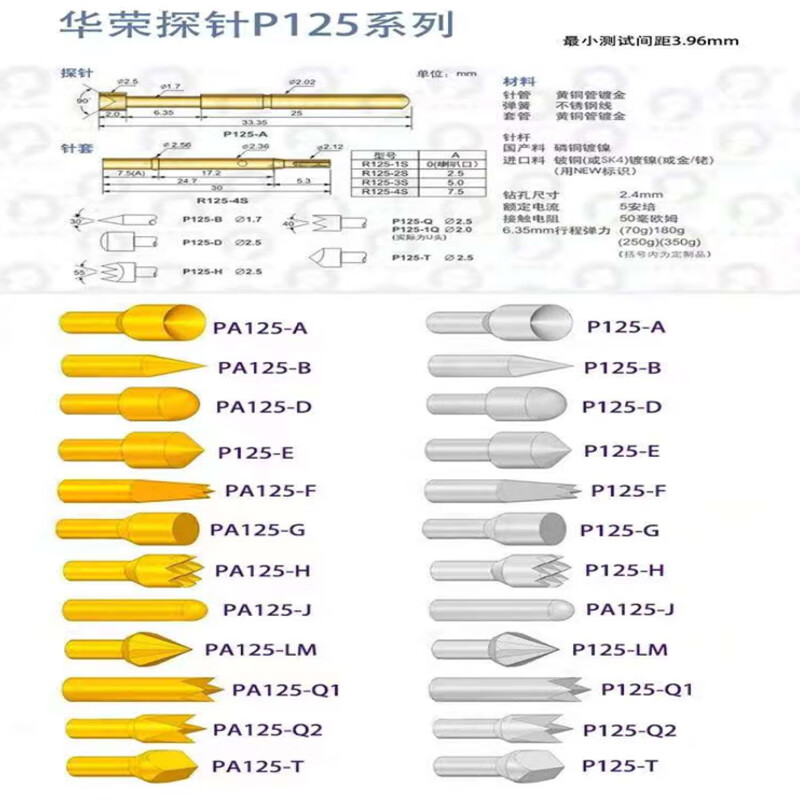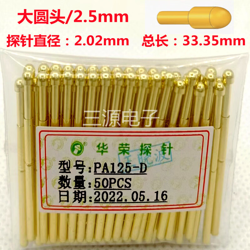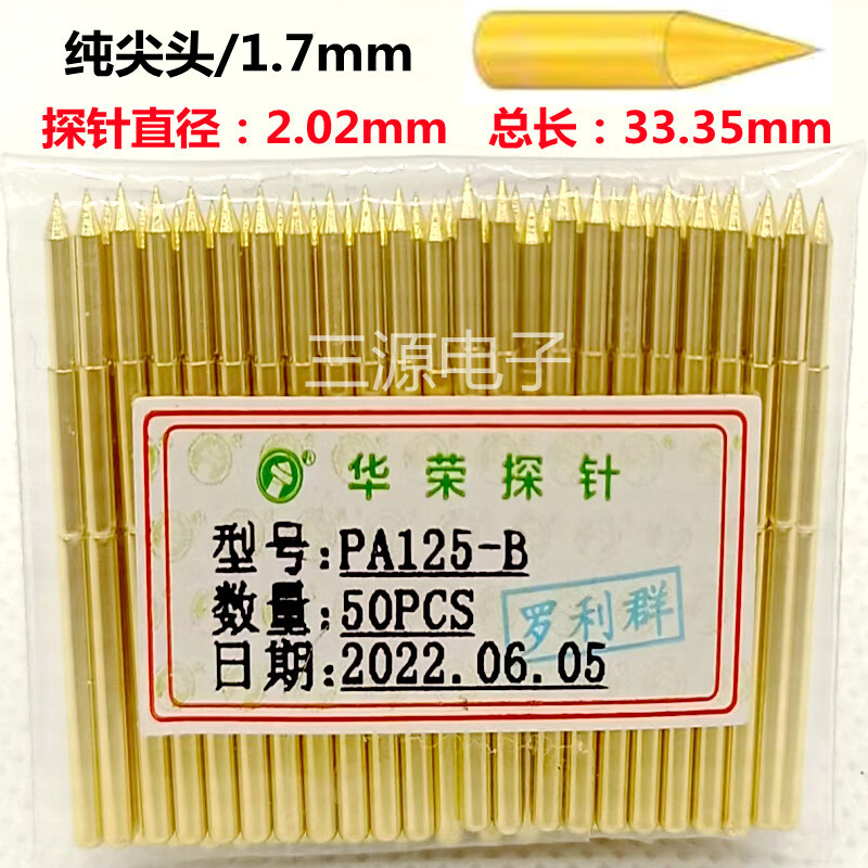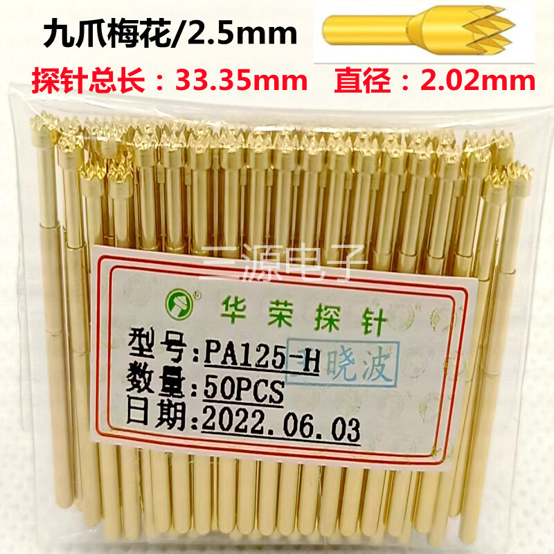 Huarong probe PA125 A B H J Q2 plum blossom head diameter 2.02mm spring PCB thimble PA125-B straight tip head 1.7mm 50 pieces