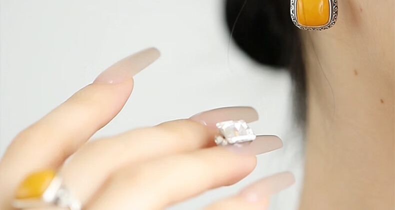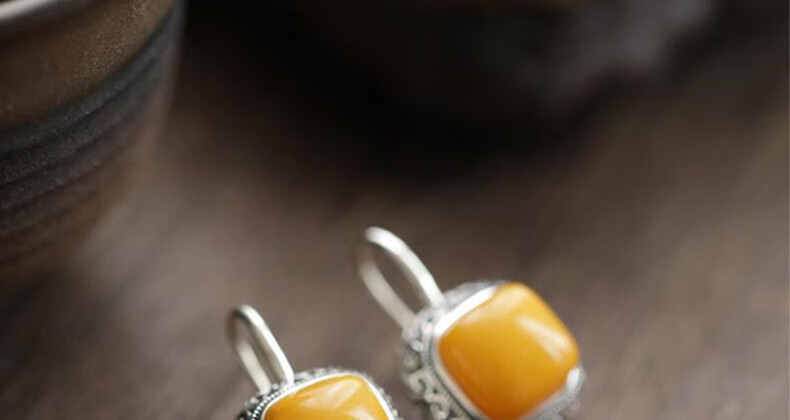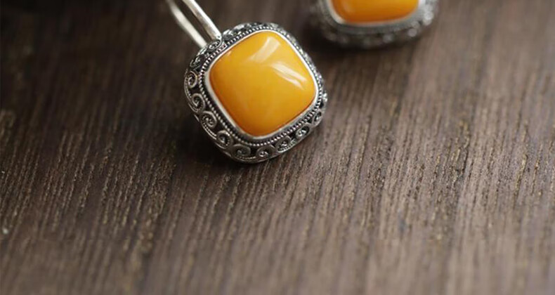 Fat Donglai same style beeswax earrings 925 silver retro new Chinese style chicken fat yellow beeswax square Chinese Valentine's Day gift sugar cube earrings