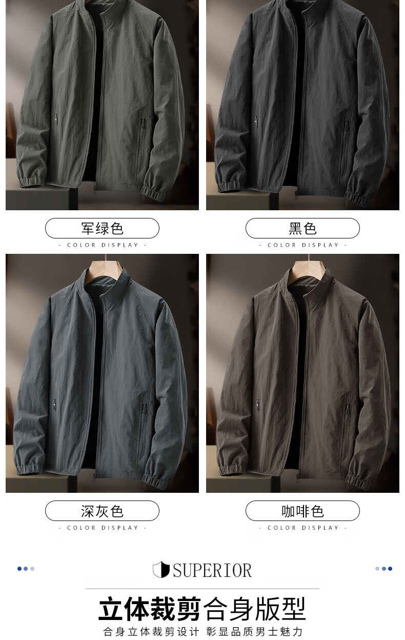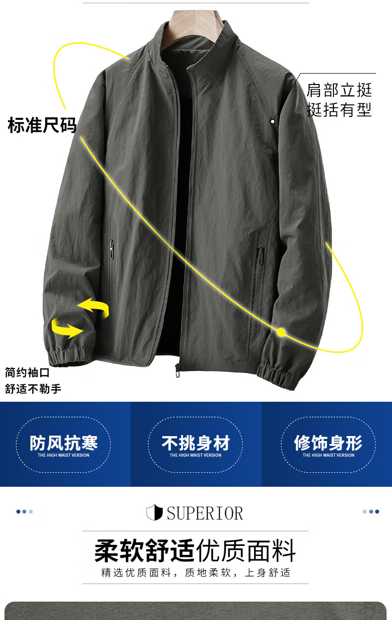 NASAOVER high-end brand jacket men's short spring and autumn thin windbreaker outdoor casual large size stretch loose sports jacket military green counter selection M 95-115Jin Jin equals 0.5 kg