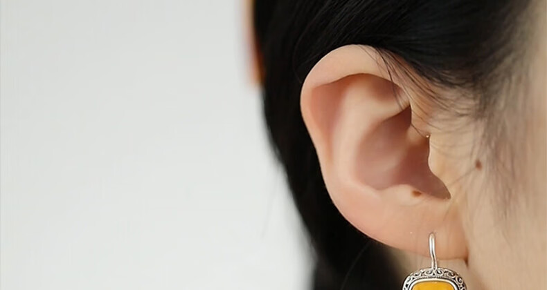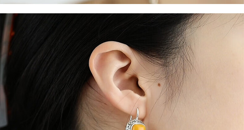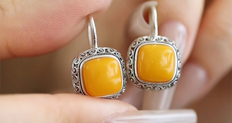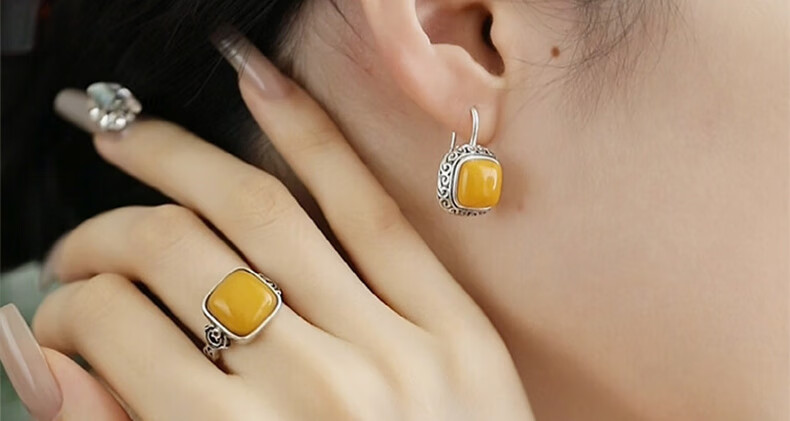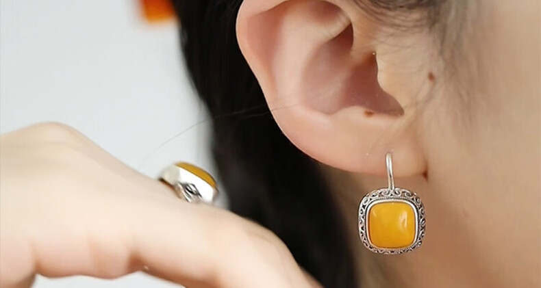 Fat Donglai same style beeswax earrings silver retro new Chinese style chicken fat yellow square sugar cube ears sugar cube earrings