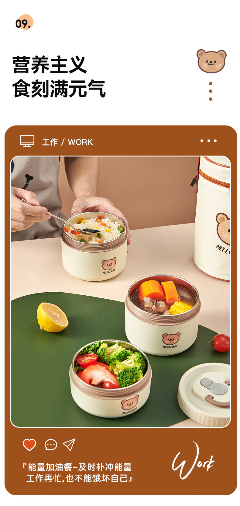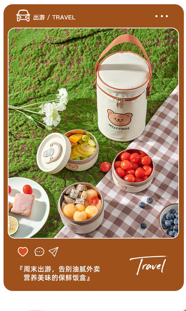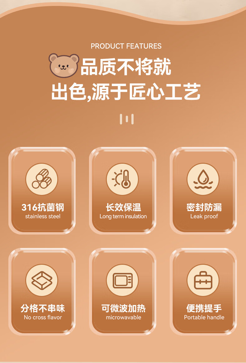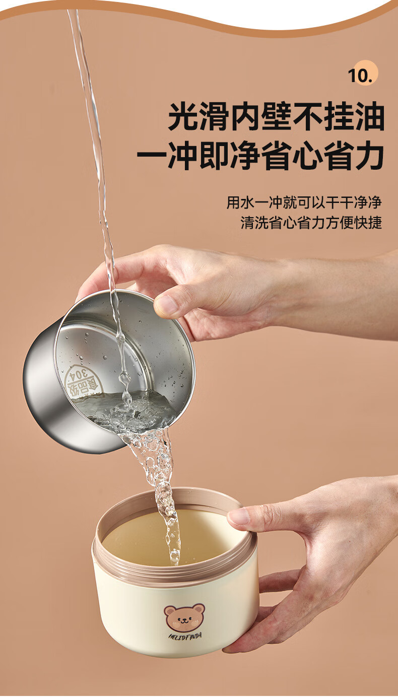 Bear Lunch Box Thermos Box for Office Workers 2024 New Microwave Heated Stainless Steel Lunch Box with Hand Bag 316 Rice White Large Size 600ml--