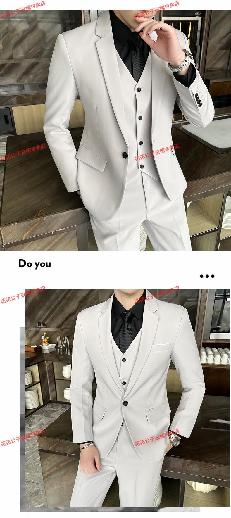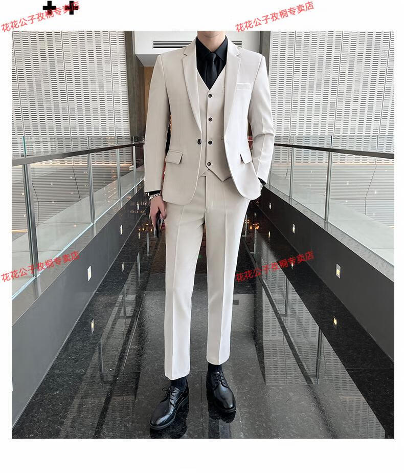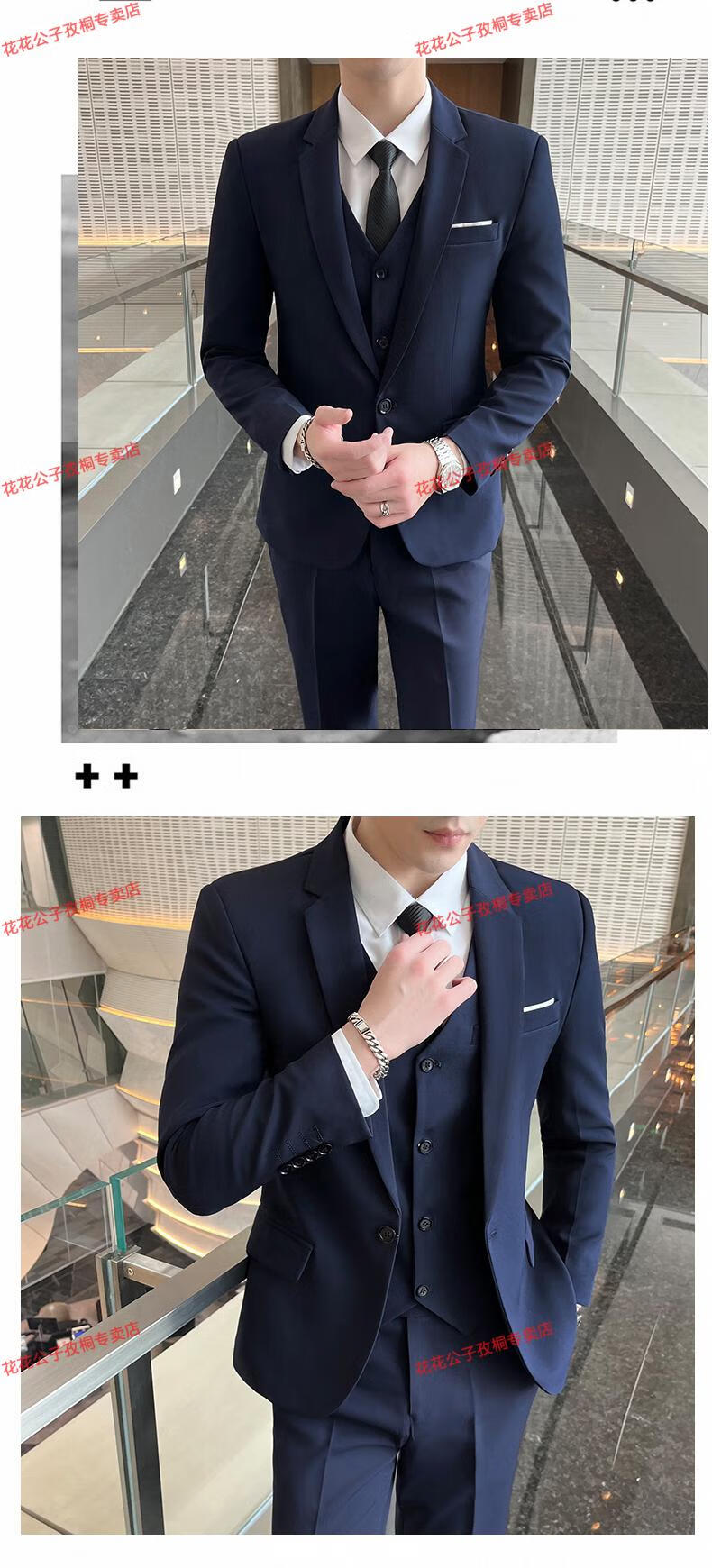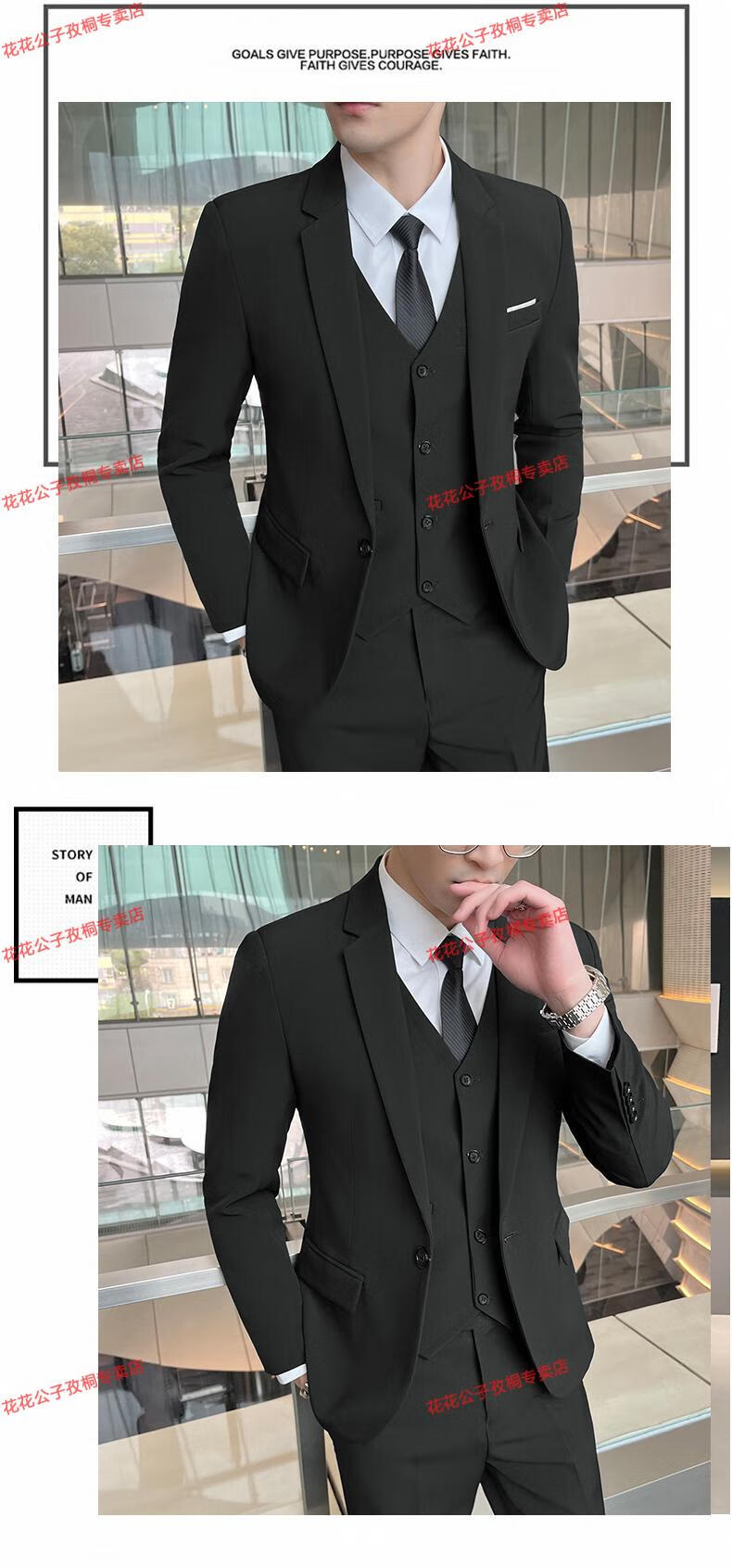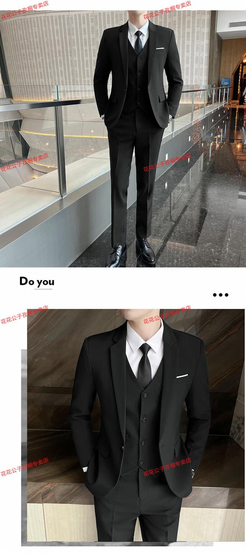 Playboy Men's Suit Suit Casual Business Professional Formal Wear Korean Style Groom Wedding Suit Jacket Slim Groomsman Dress Two-button Black Suit + Vest + Pants + Shirt Free 2XL (135~150Jin Jin is equal to 0.5kg)