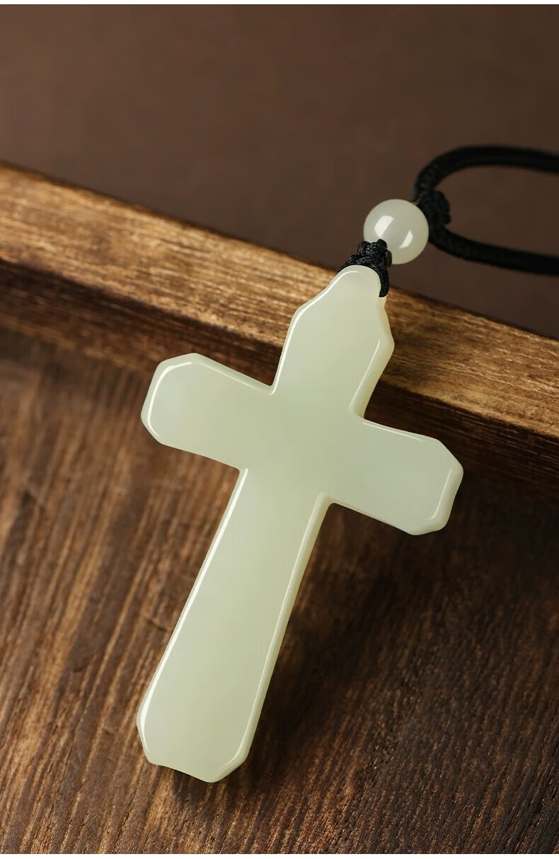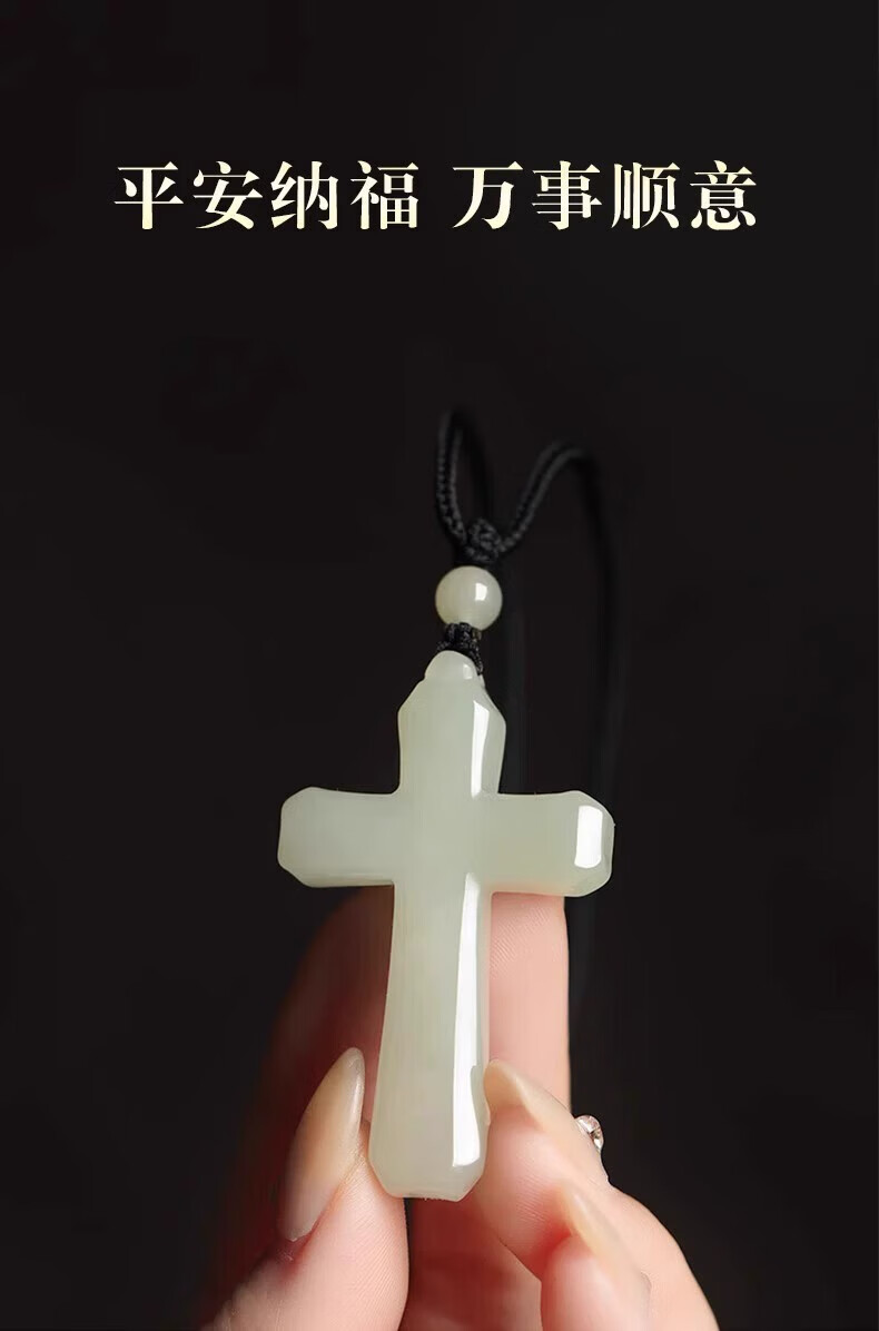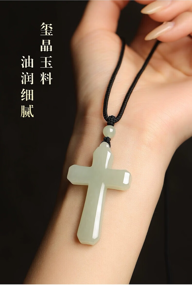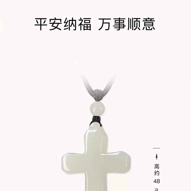 Jingjian Hotan jade cross pendant for men and women, safe jade pendant, jade pendant, white jade pendant necklace with certificate, cross pendant (black rope) 58*40*8MM