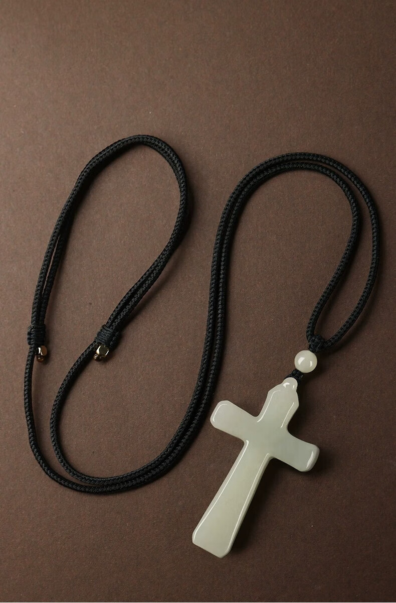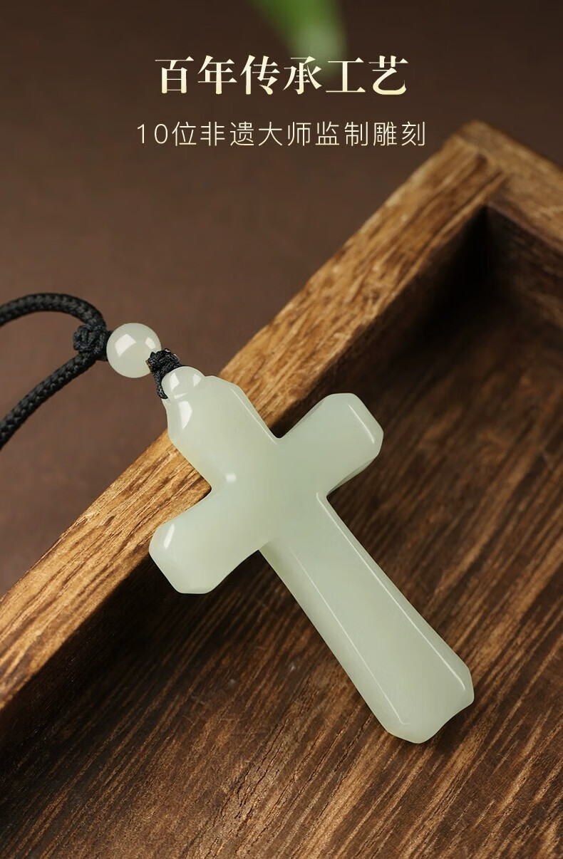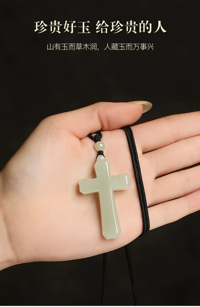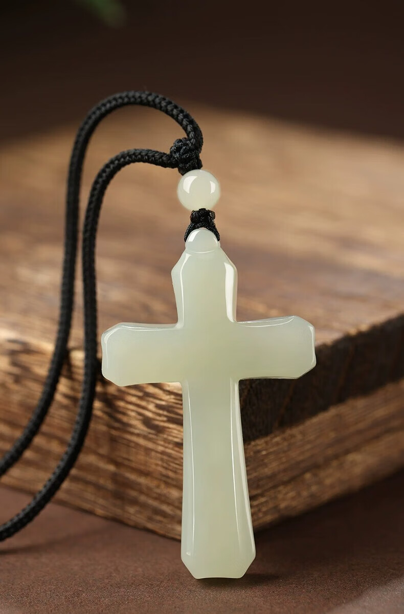 Jingjian Hotan jade cross pendant for men and women, safe jade pendant, jade pendant, white jade pendant necklace with certificate, cross pendant (black rope) 58*40*8MM