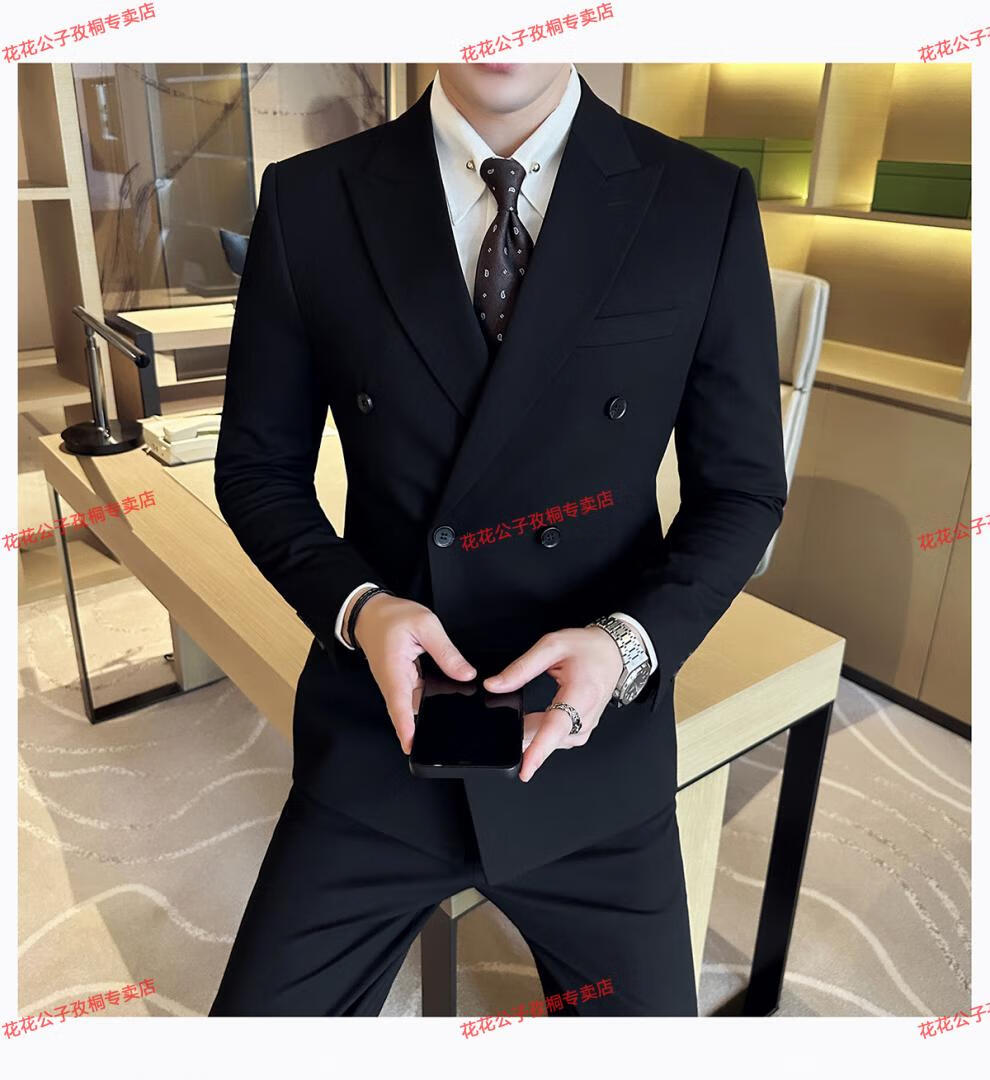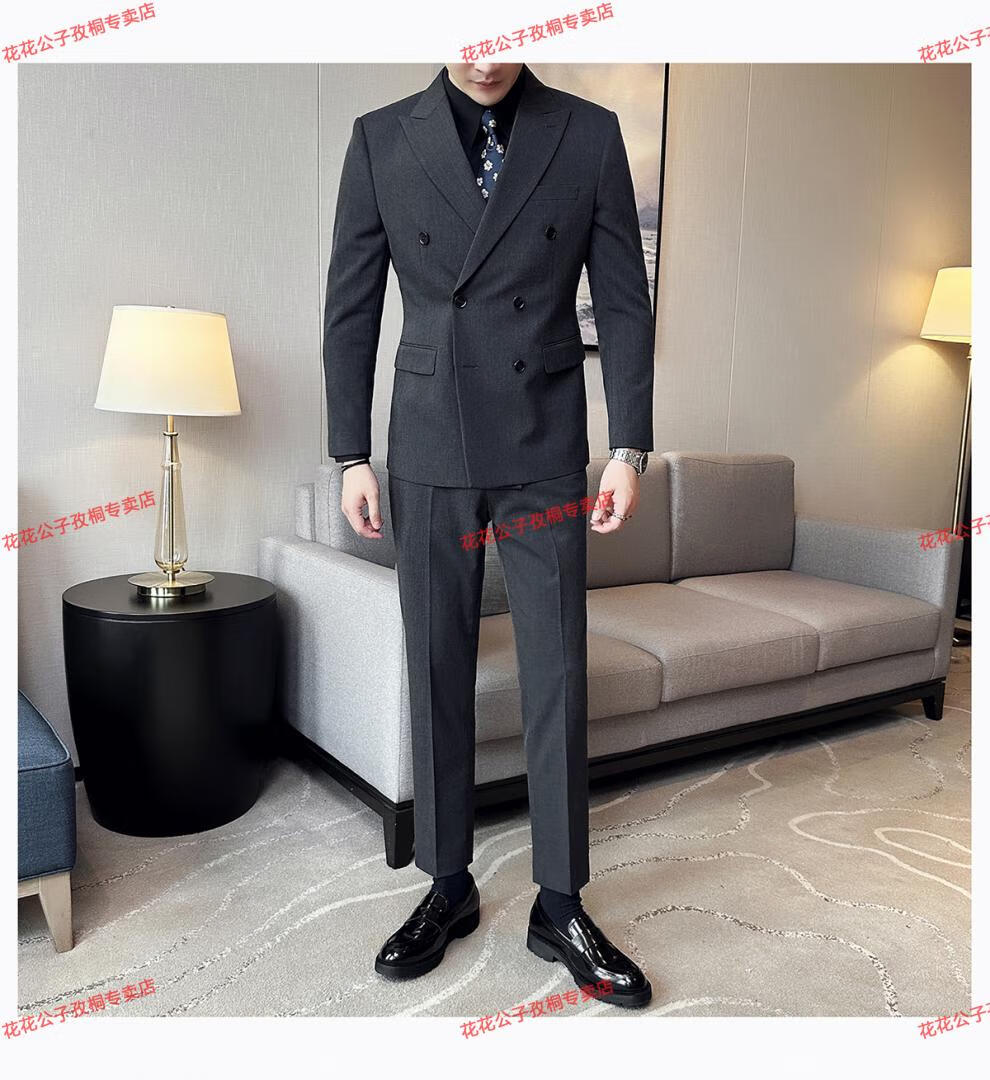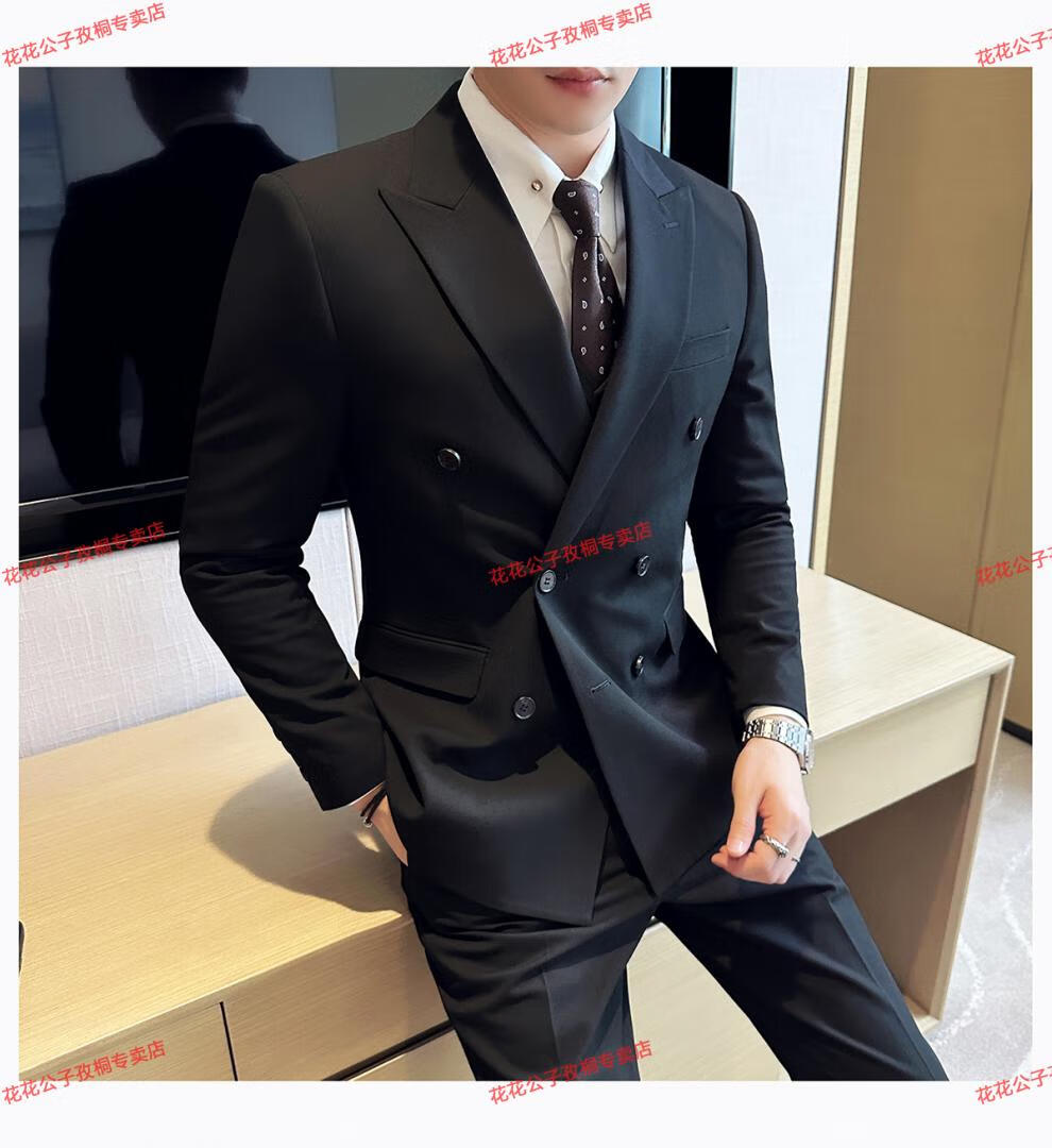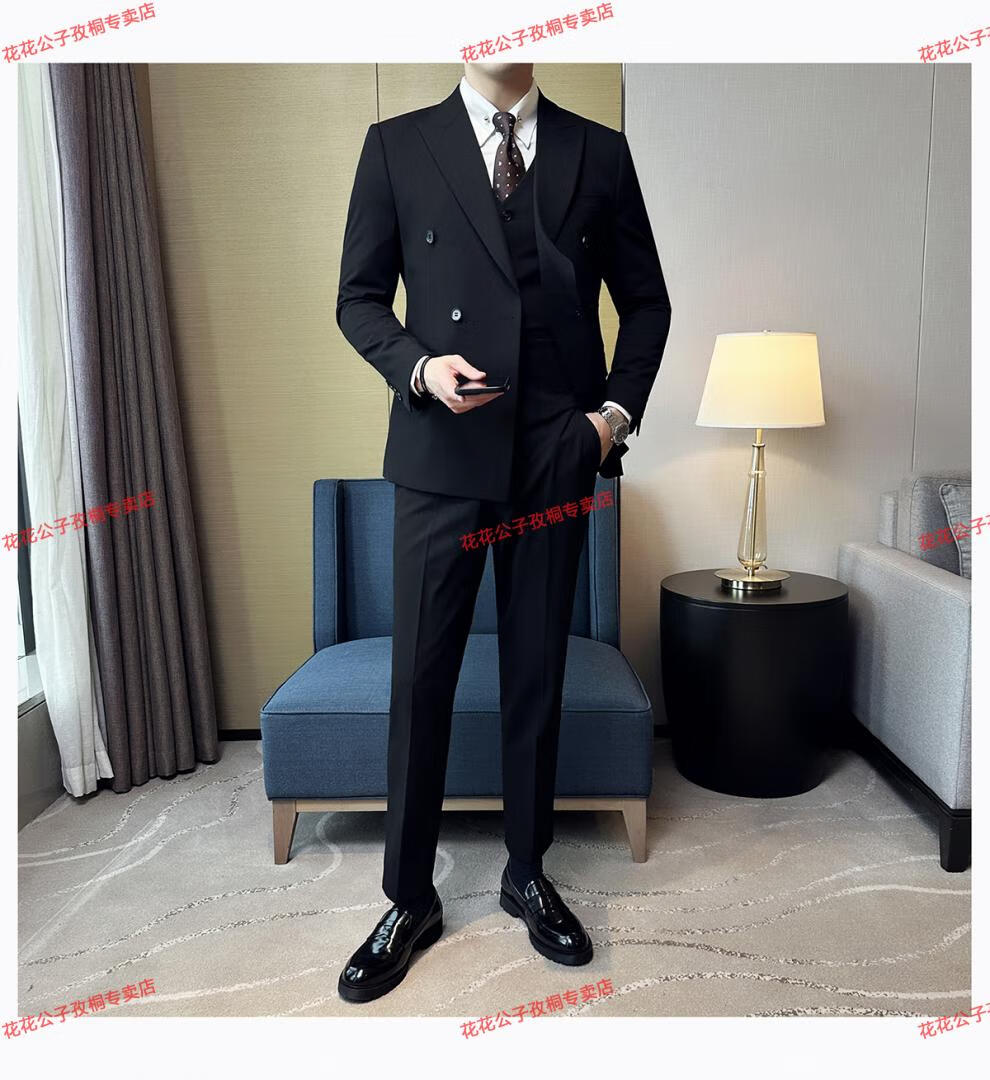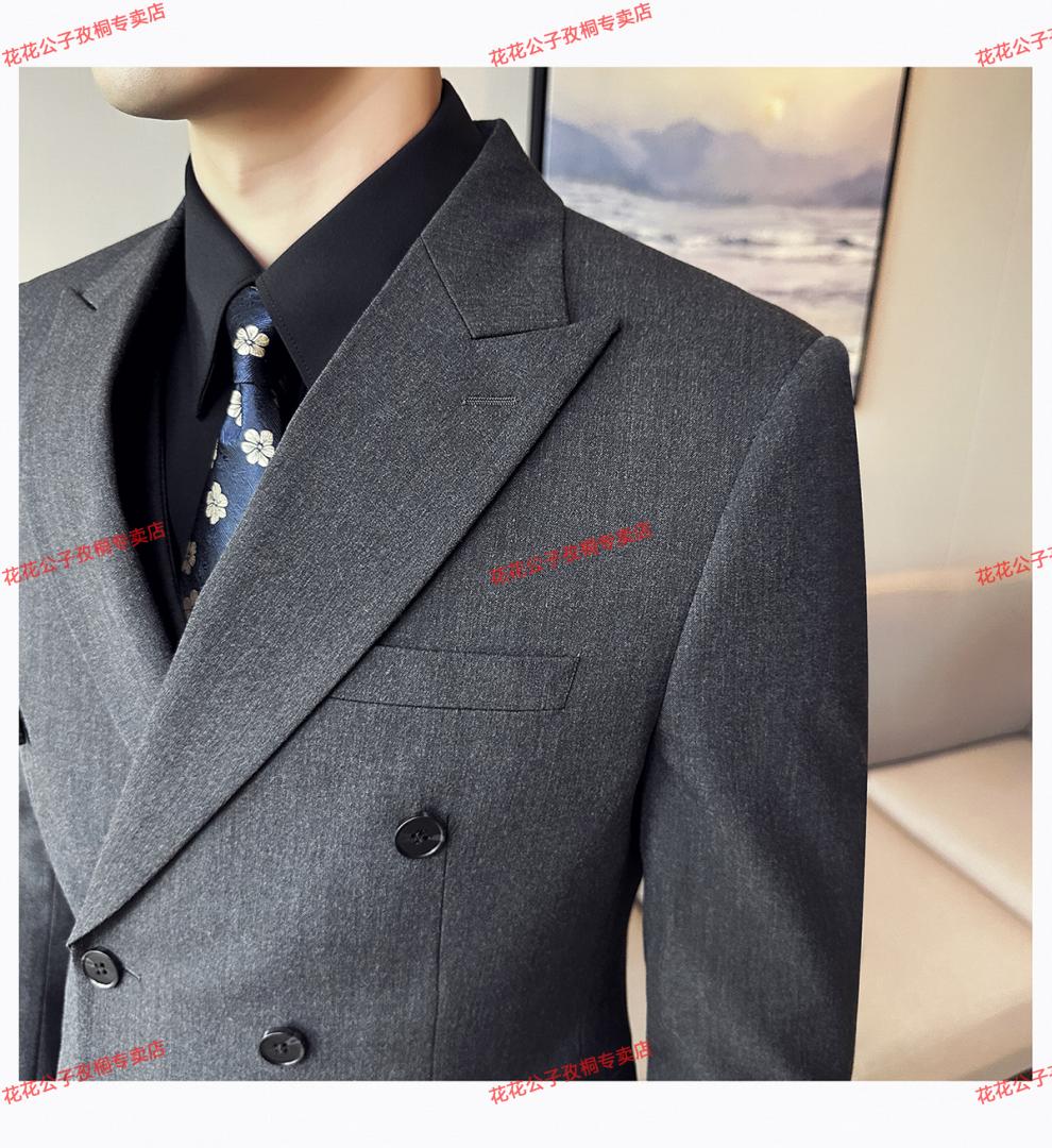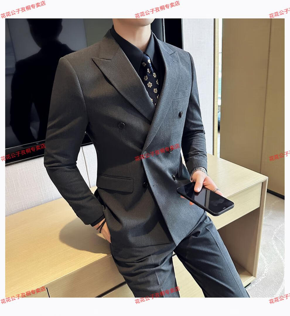 Playboy British Style Double Breasted Suit Men's Suit Business Casual Formal Groom Wedding Dress High-End Suit Three-piece Gray Suit+Trousers+Vest XL (125-140Jin Jin equals 0.5 kg)