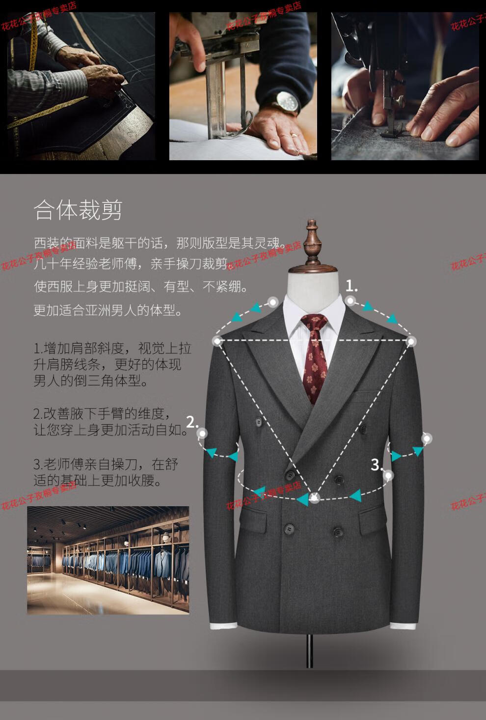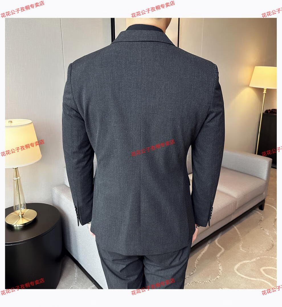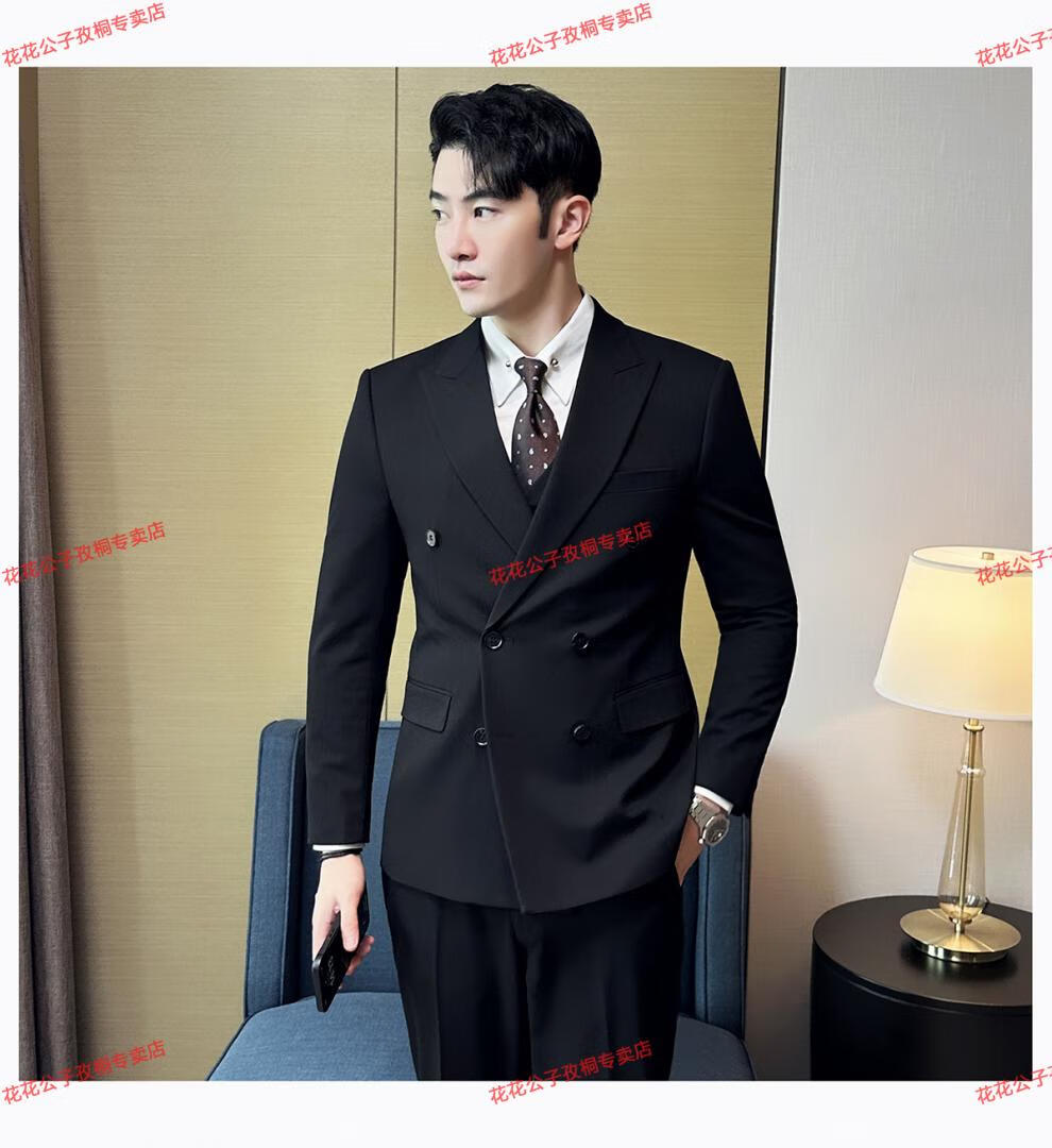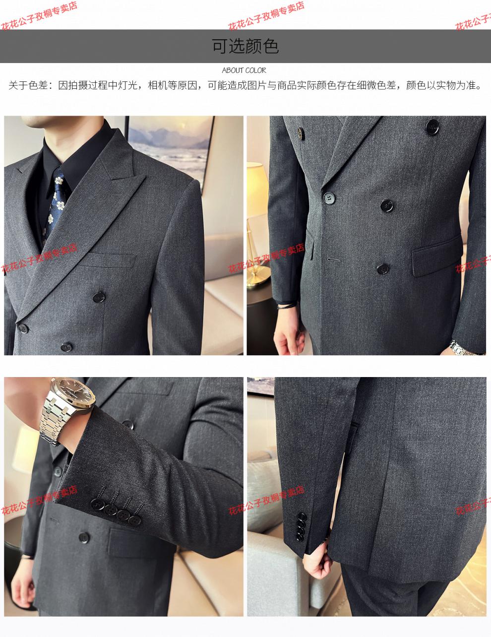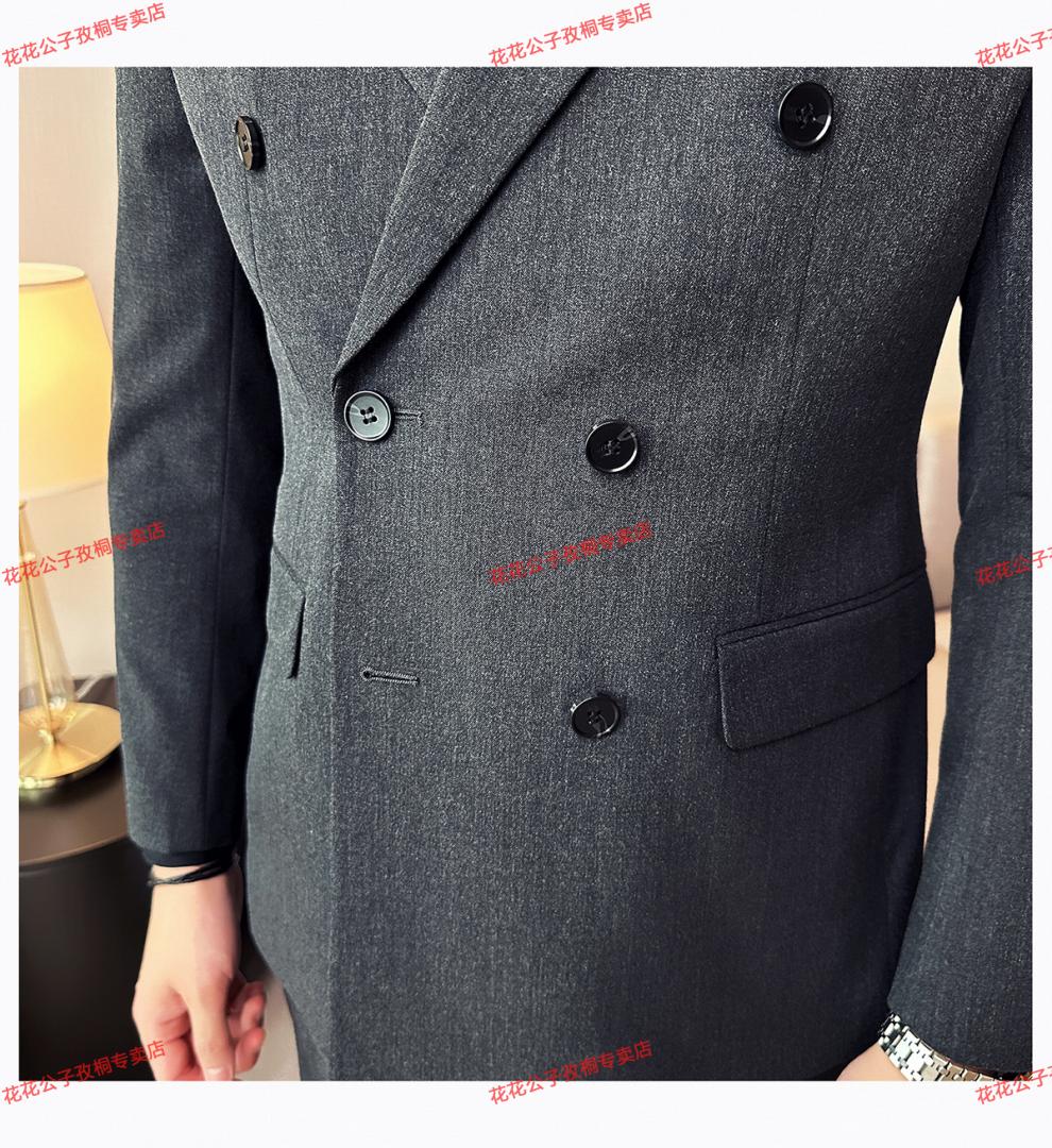 Playboy British Style Double Breasted Suit Men's Suit Business Casual Formal Groom Wedding Dress High-End Suit Three-piece Gray Suit+Trousers+Vest XL (125-140Jin Jin equals 0.5 kg)