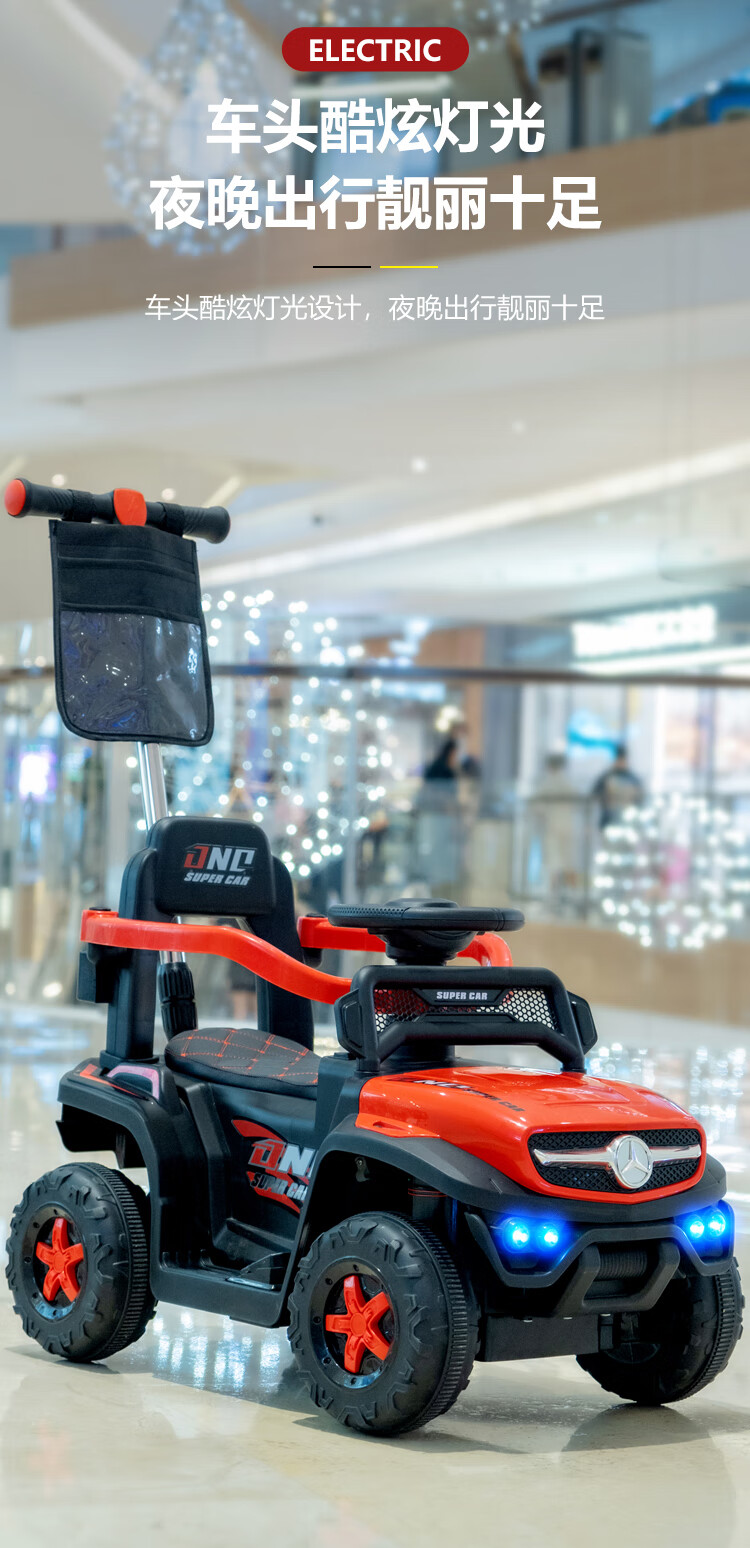 Children's electric car four-wheel remote control car ATV can push children's toy car 1-4 years old male and female babies can sit on Soft wheel supreme red + push rod remote control + leather seat carport