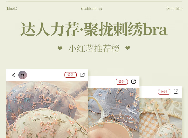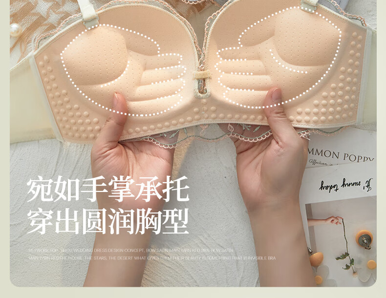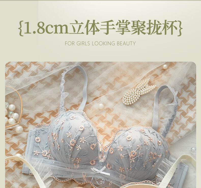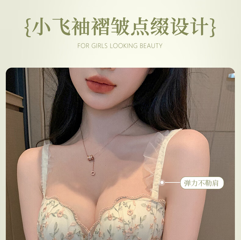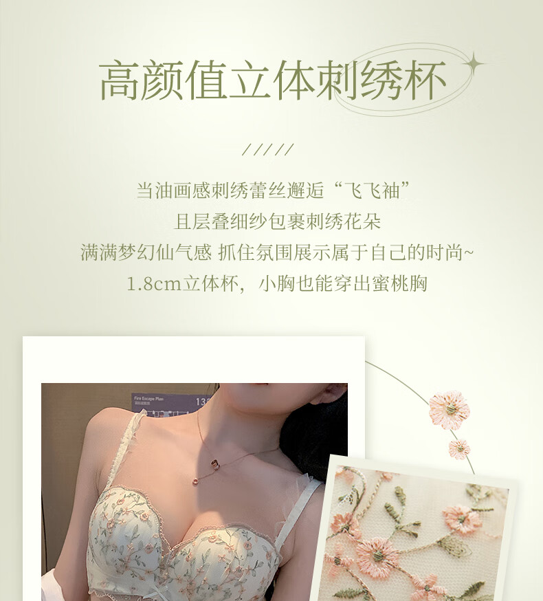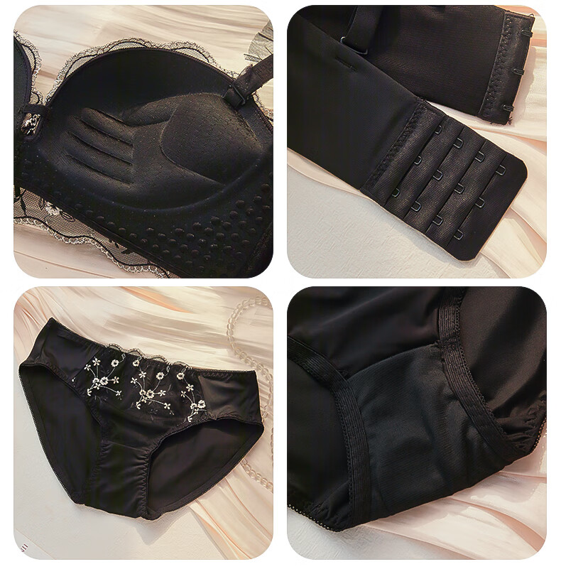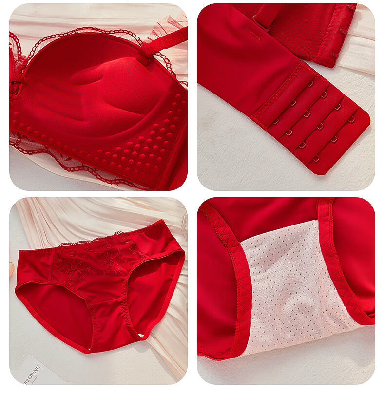 Ji Ye Luna Small Breast Push Up Palm Cup Underwear Women's Wireless Lace Embroidery Bra Set Red Set L 36/80 AB Cup Thin Top and Thick Bottom