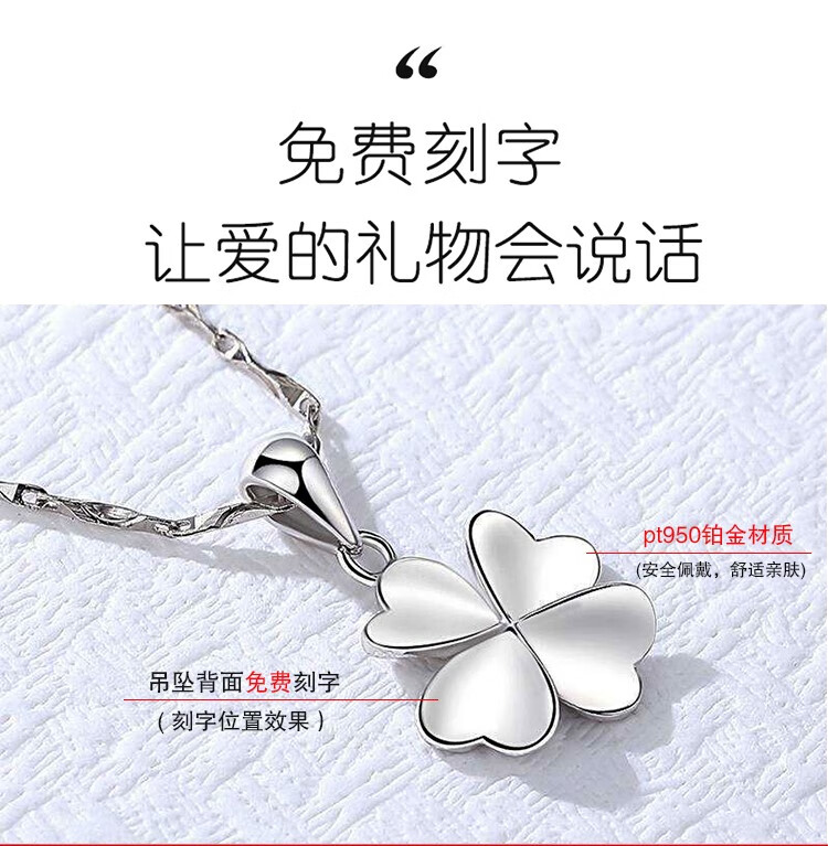 Chow Tai Fook Four Leaf Clover PT950 Platinum Necklace Women's Clavicle Chain 18 Platinum Chinese Valentine's Day Gift Valentine's Day Gift Valentine's Day Gift