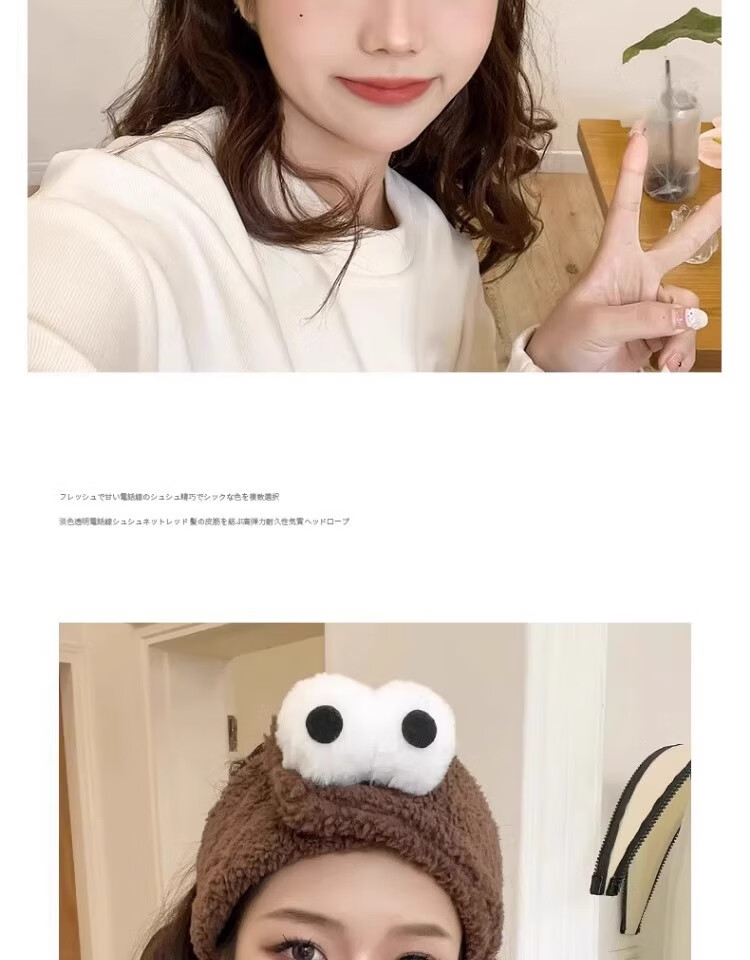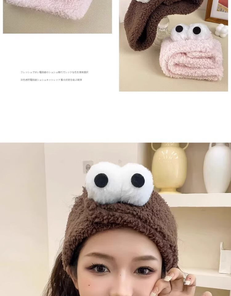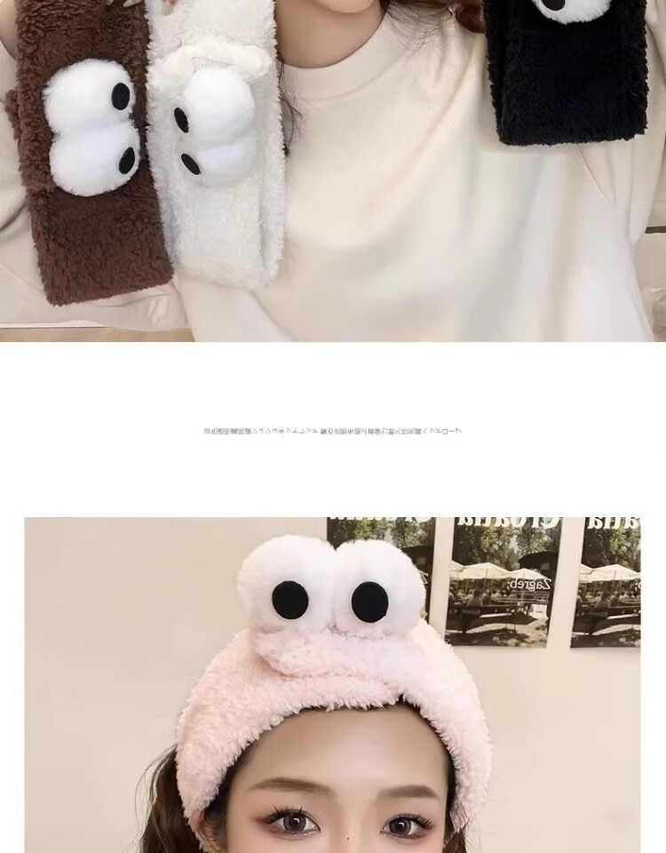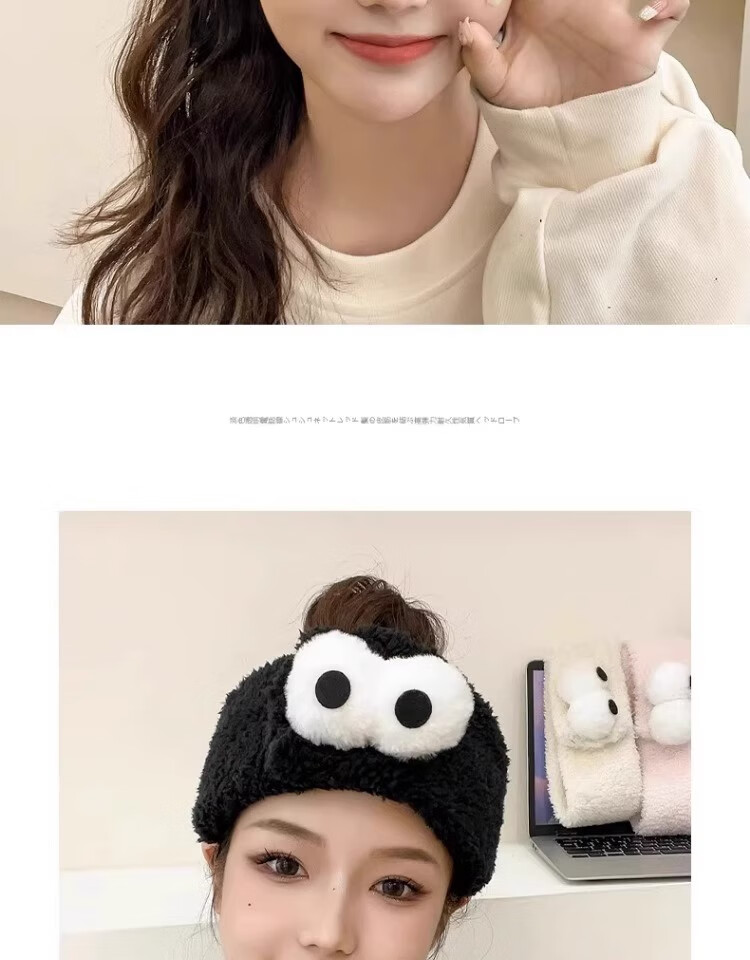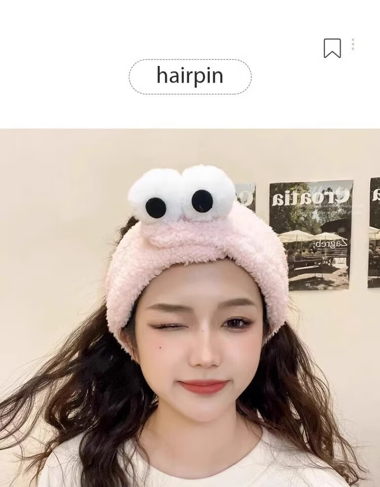 Jingyouyu headband for women to wash their face, apply makeup and apply facial mask, non-slip, non-marking, non-pressing bangs, daily hairband, Velcro, cute big eyes headband, pink, seamless and adjustable