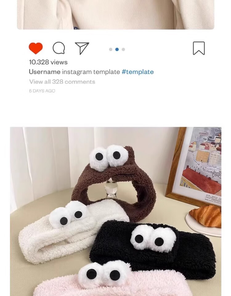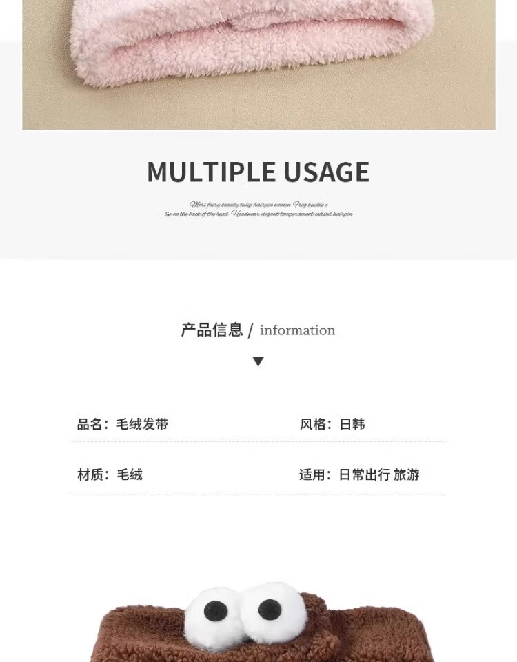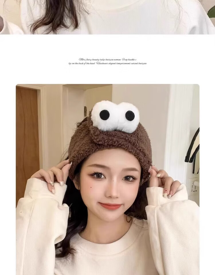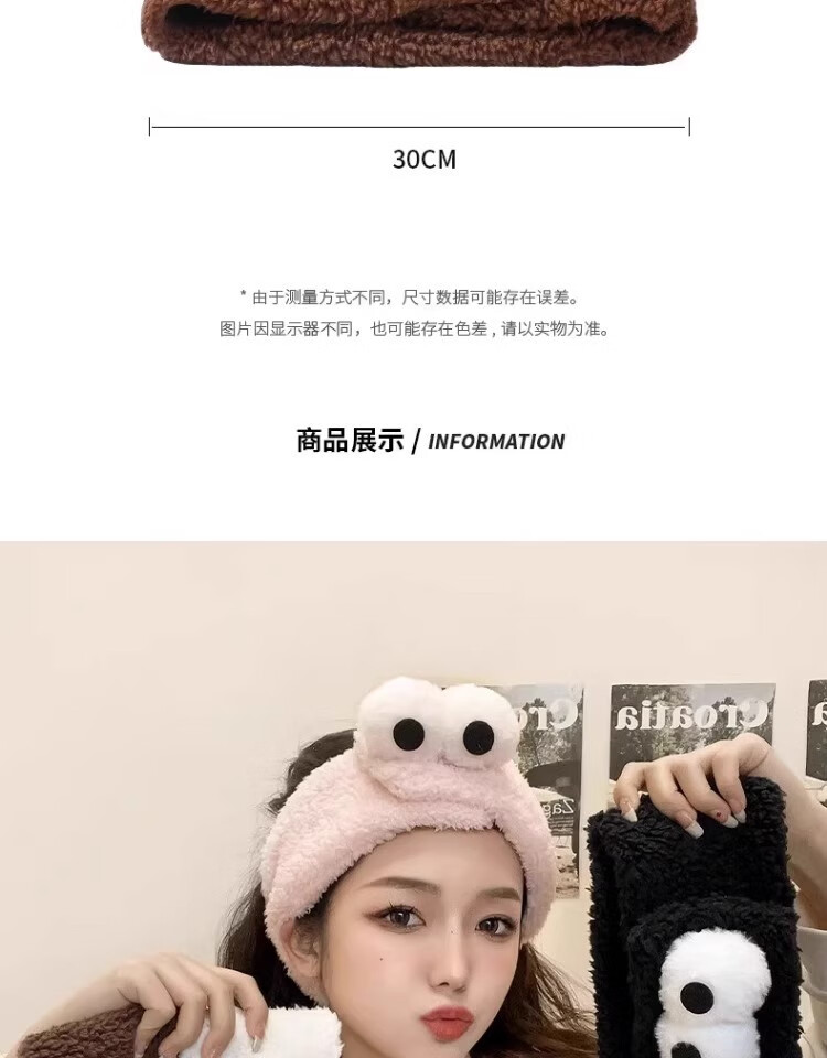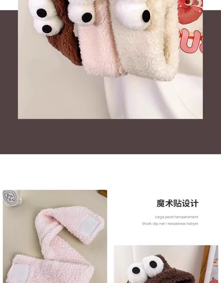 Jingyouyu headband for women to wash their face, apply makeup and apply facial mask, non-slip, non-marking, non-pressing bangs, daily hairband, Velcro, cute big eyes headband, pink, seamless and adjustable