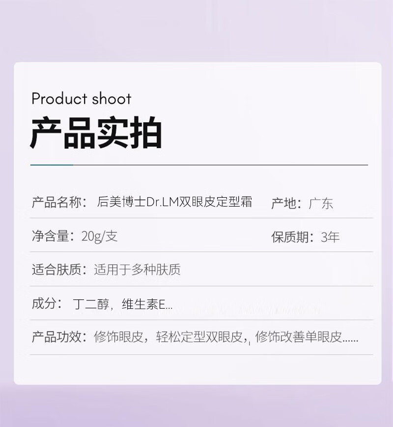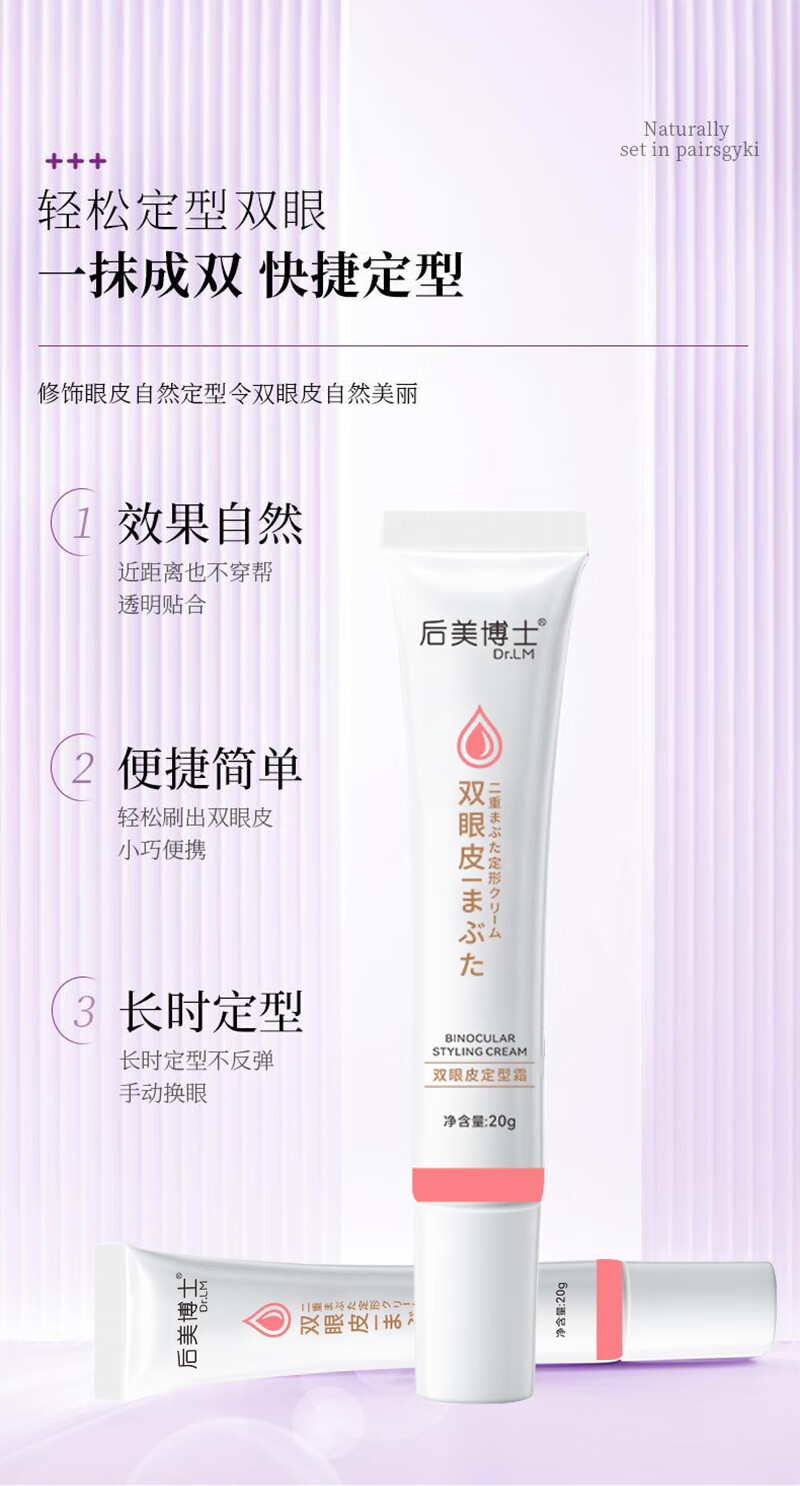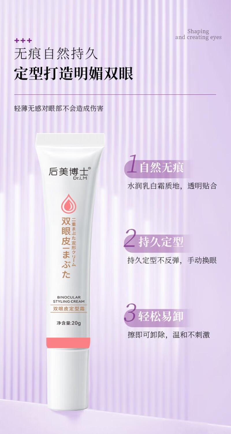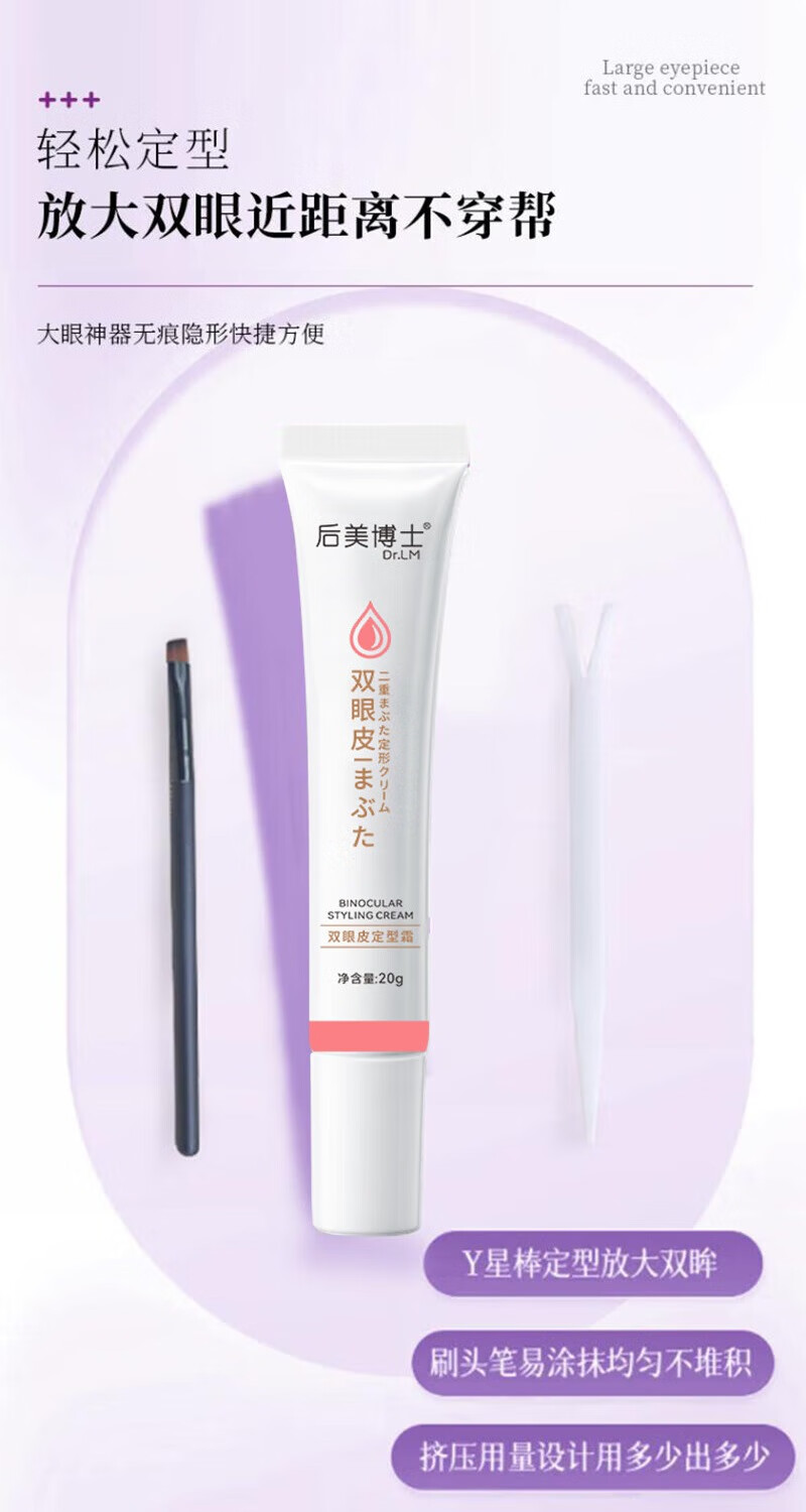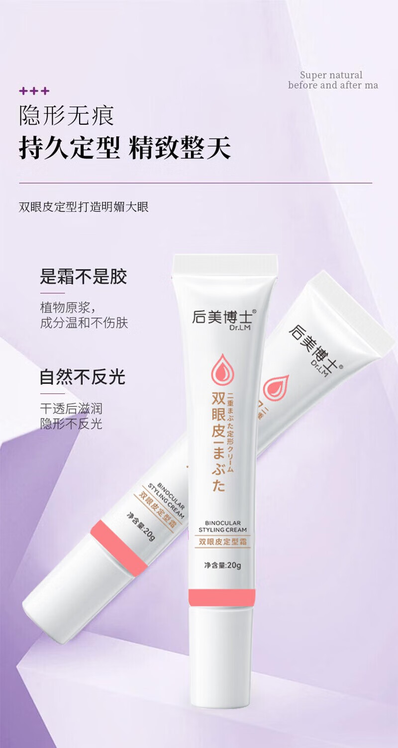 Dr. Houmei's double eyelid invisible patch, natural and traceless, suitable for droopy and swollen eyelids, strong support for men and women, glue styling cream, double eyelid styling cream 20g 1 piece, Qiao Zheng artifact