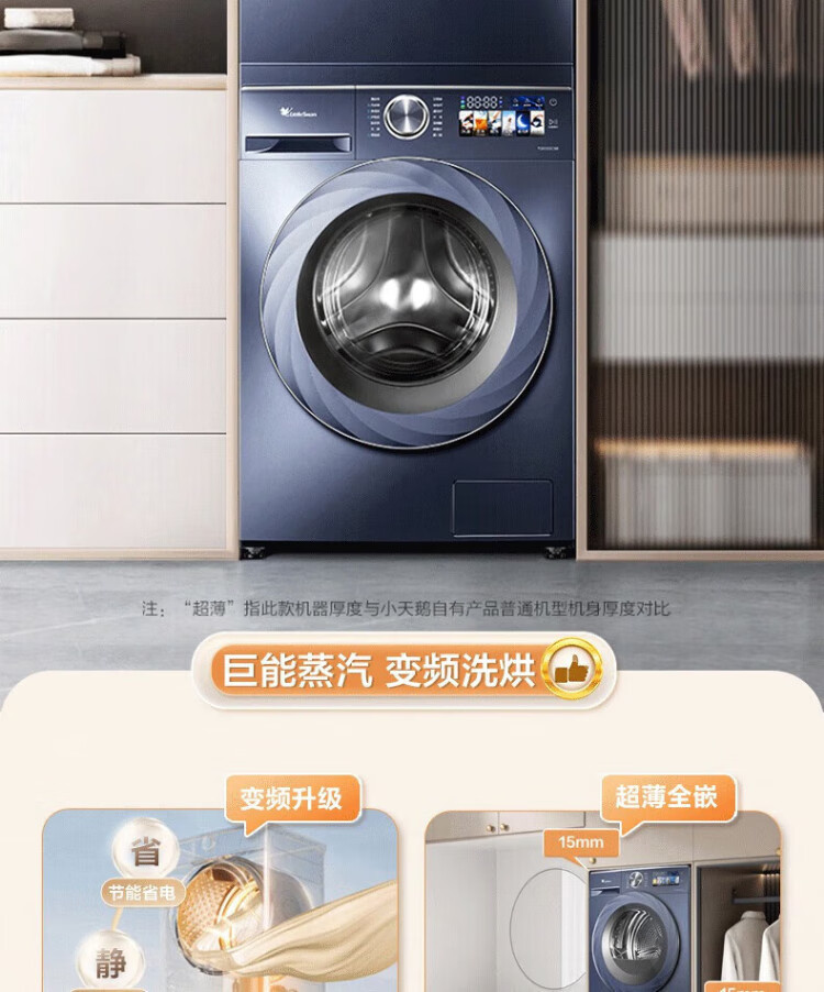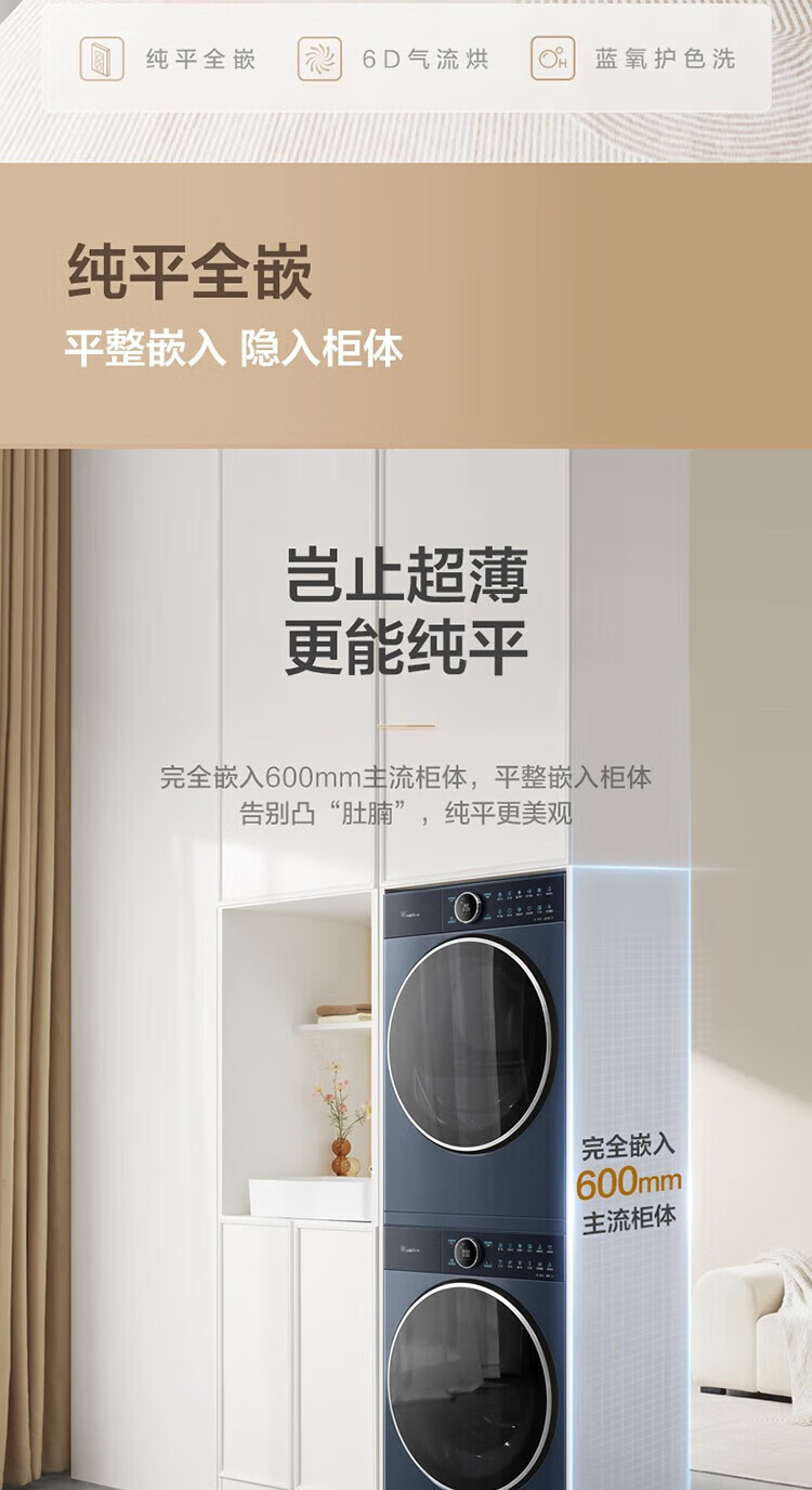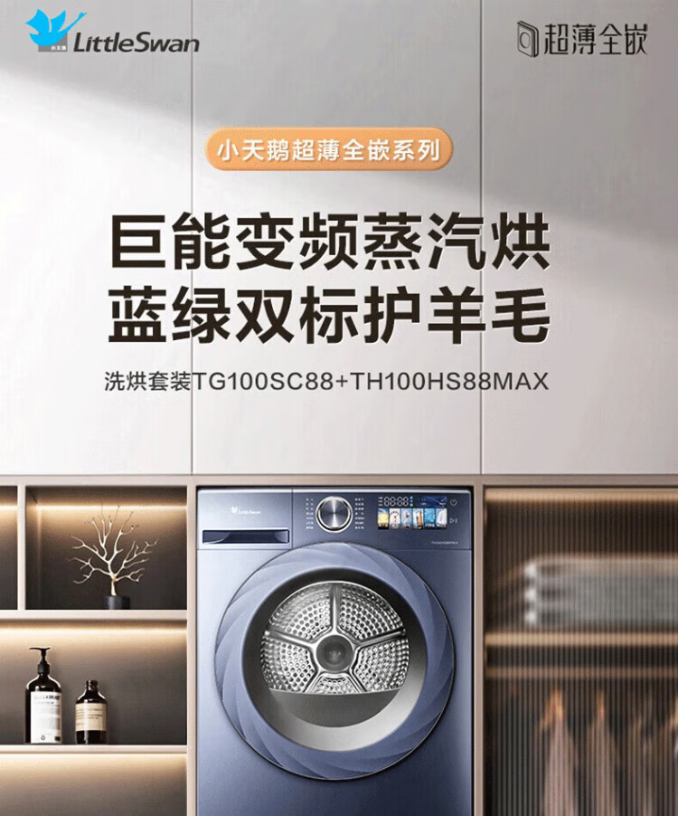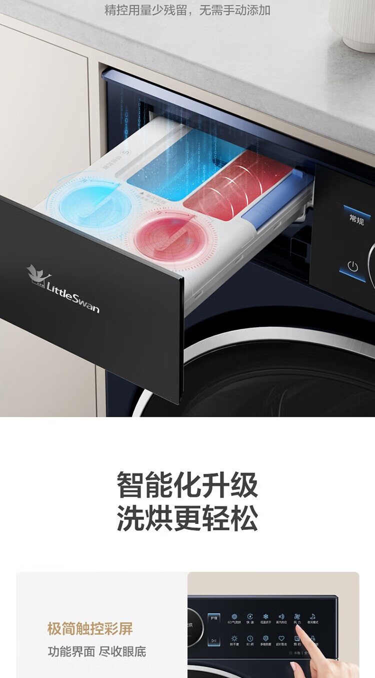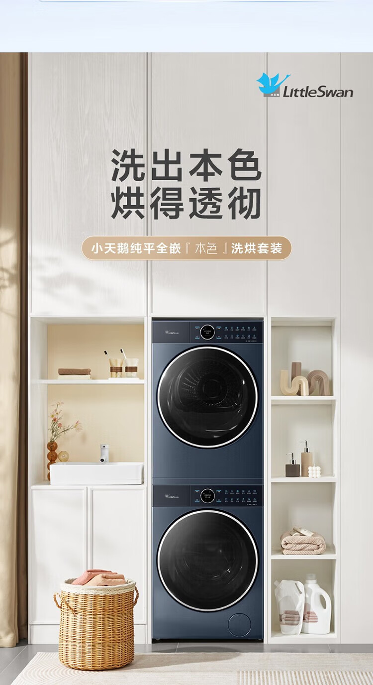LittleSwan washing and drying set Xiaowumei 3.0/2.0 10KG drum washing machine fully automatic + variable frequency heat pump dryer Water Cube ultra-thin fully embedded trade-in national subsidy Jinyu Blue 97 blue oxygen washing and drying set flat fully embedded + 6D air flow drying