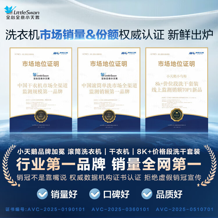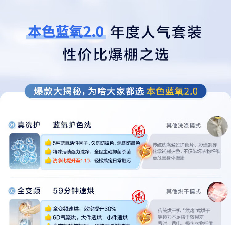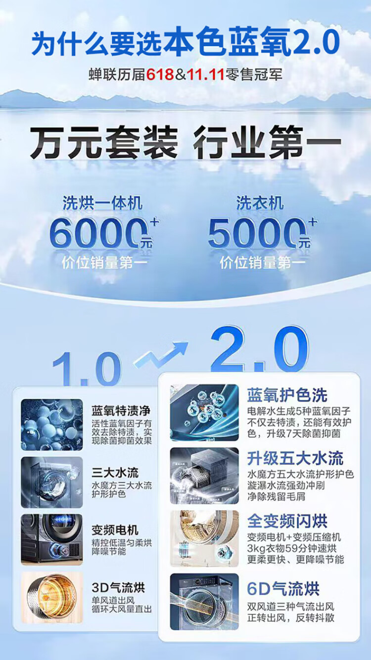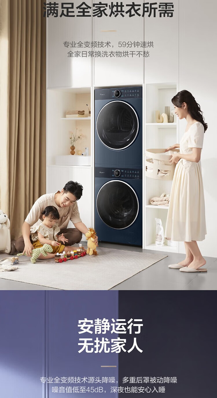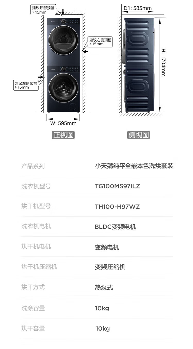 LittleSwan washing and drying set Xiaowumei 3.0/2.0 10KG drum washing machine fully automatic + variable frequency heat pump dryer Water Cube ultra-thin fully embedded trade-in national subsidy Jinyu Blue 97 blue oxygen washing and drying set flat fully embedded + 6D air flow drying