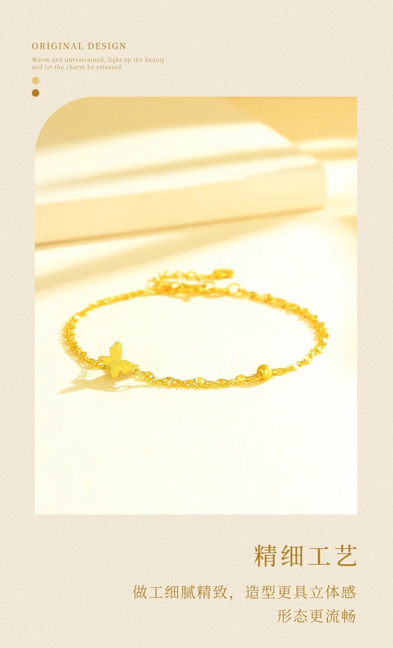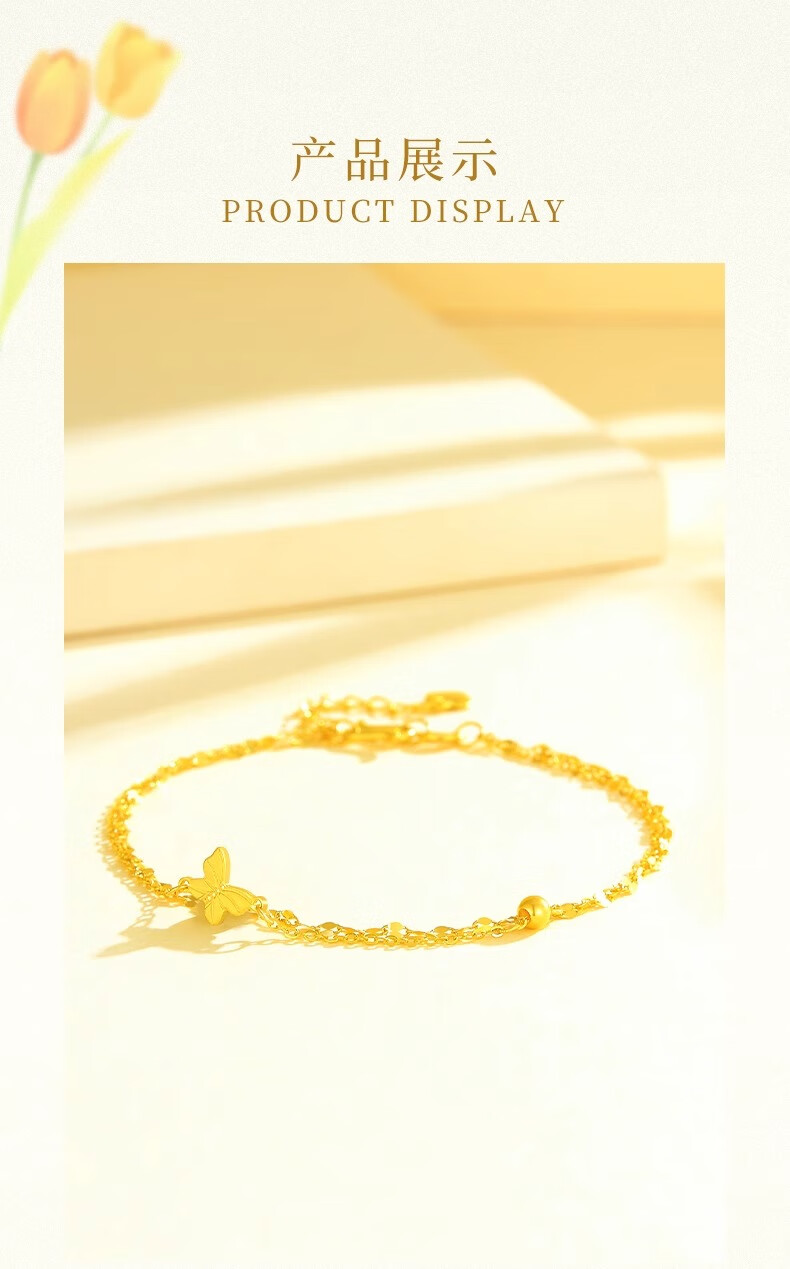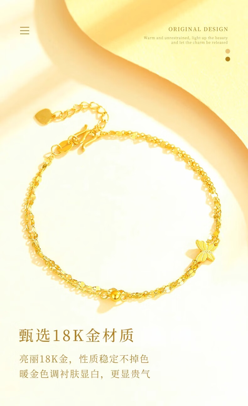 CHINA GOLD 18K gold butterfly bracelet for women 2025 new fashion light luxury Valentine's Day birthday gift for girlfriend and wife Jingsuda 18K gold butterfly bracelet about 1.1g brand gift box