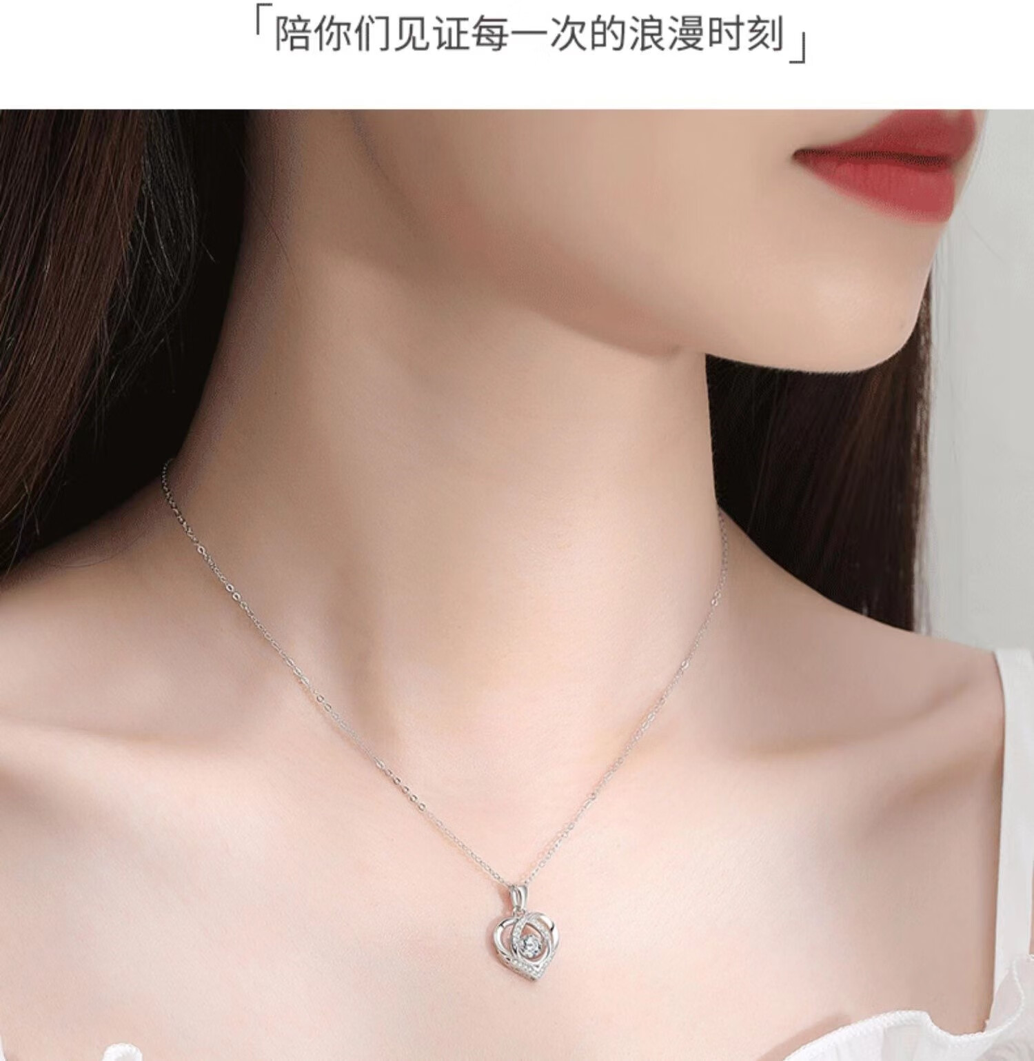 Chow Tai Fook PT950 Platinum Necklace Women's 18 Platinum Clavicle Chain Beating Heart Light Luxury Birthday Valentine's Day Confession of Love + Rose Gift Box